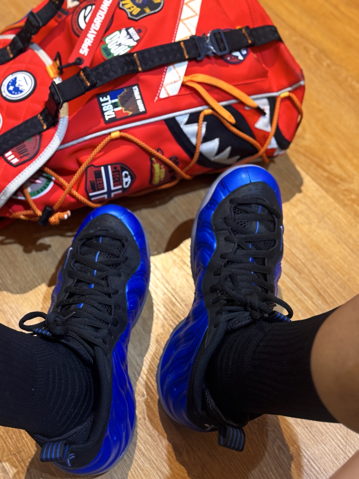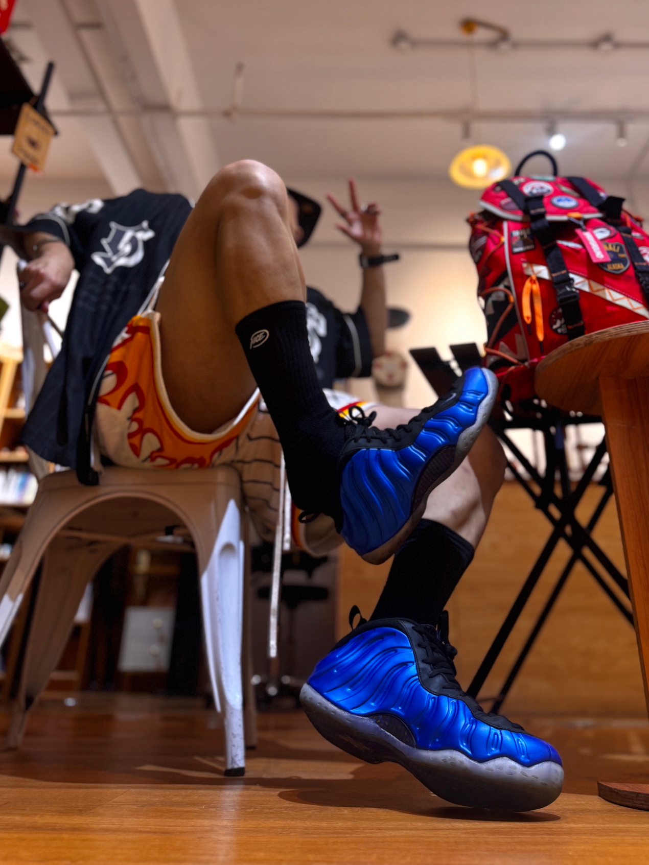 蓝喷➕红色背包形成超强视觉冲击力 这么穿出街真的是多巴胺显眼包的存在~ 蓝喷其实还挺不日常的 但和红色单品一碰撞就显得和谐了很多 买了蓝喷的兄弟可以尝试一下撞色的思路 会有别样的惊喜😼 #潮鞋捕手计划 #蓝喷 #不潮包不出 #喷泡的季节 #今天聊球鞋