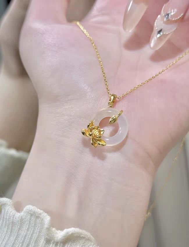 礼物还在愁送啥? 通透的莲花平安扣,寓意着“好运和平安” ,搭配精致的金色链条,颜值爆表。 整体风格温温柔柔,优雅又大方。不得不说设计师太懂了!把这份美好寓意和美丽颜值,一起送给亲爱的妈妈吧~ 图源网络侵删