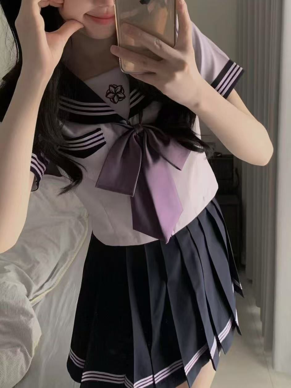 宝子们!!全网蹲爆的日系紫色水手服套装重磅登场!!低饱和雾霭紫自带清冷高级感,穿上直接化身漫画里的温柔学姐,校园氛围感直接拉满✨ 💜 校供级精致细节 - 立体收腰版型:3D剪裁勾勒沙漏曲线,显瘦藏肉一绝,举手投足都是优雅气质 - 正统水手领设计:挺括襟线+刺绣校徽,经典三本线还原日漫校服质感 - 质感长袖面料:透气抗皱的tr混纺,春夏穿不闷热,久坐不起褶超省心 🌷 氛围感拉满的...