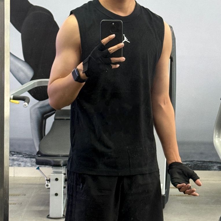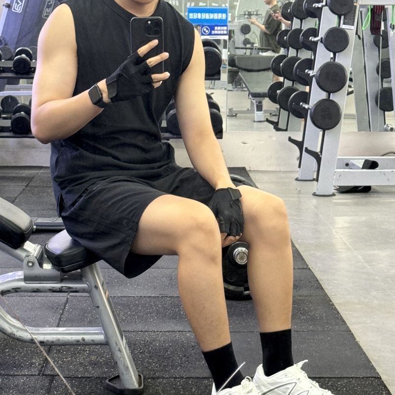 无袖坎肩上身清爽🍀又好看! 宽松设计面料宽松有质感! logo设计简约时尚好看! 裤子选择一条黑色🖤运动短裤! 修饰腿型 显高显腿长! 简单的all black有效不费力 我一般懒得搭配衣服时就这么穿 坎肩背心也更适合运动男生夏日🍀出街 松弛感拉满 今天还是特别简单的OOTD (图源网络侵删)