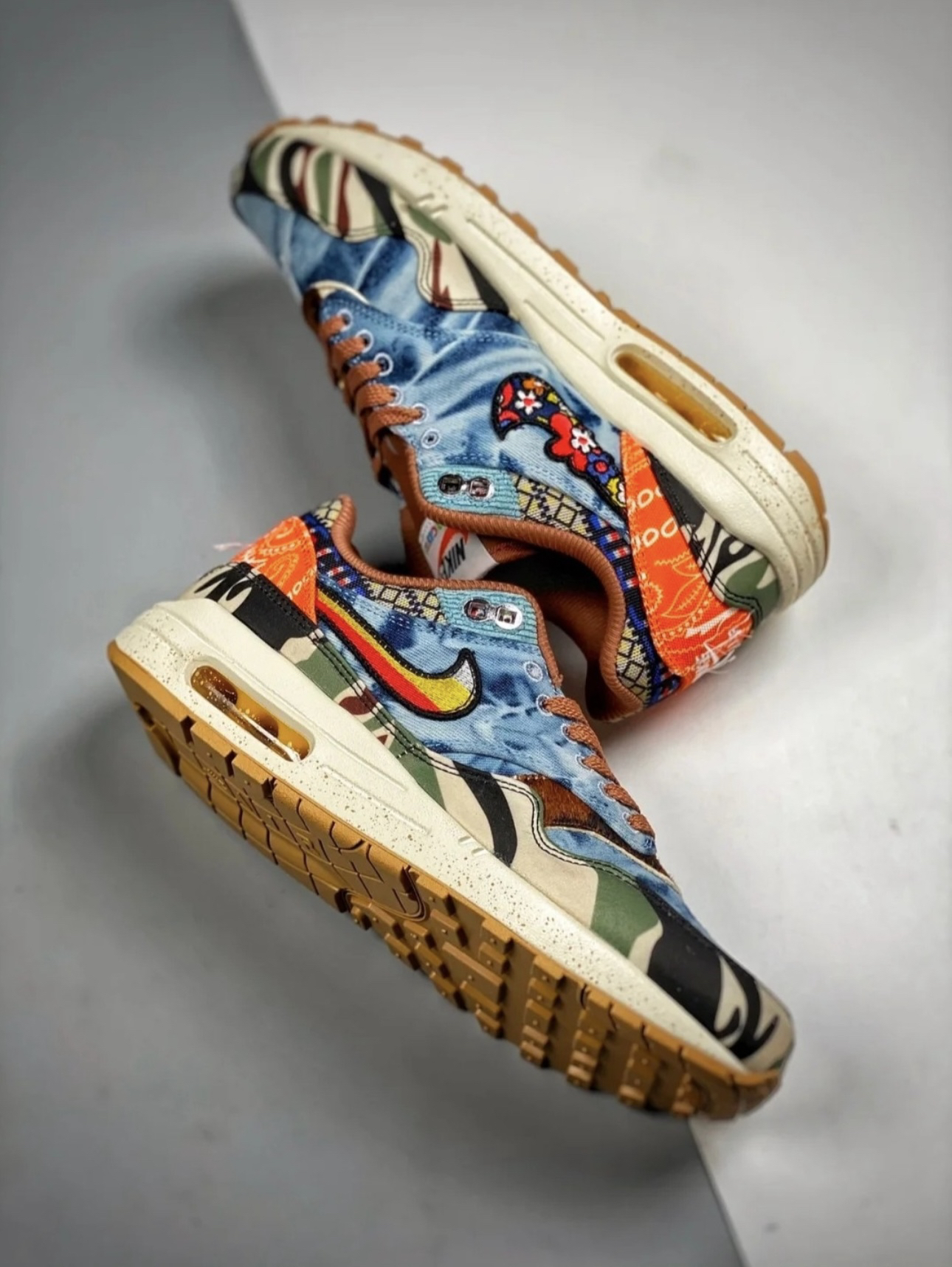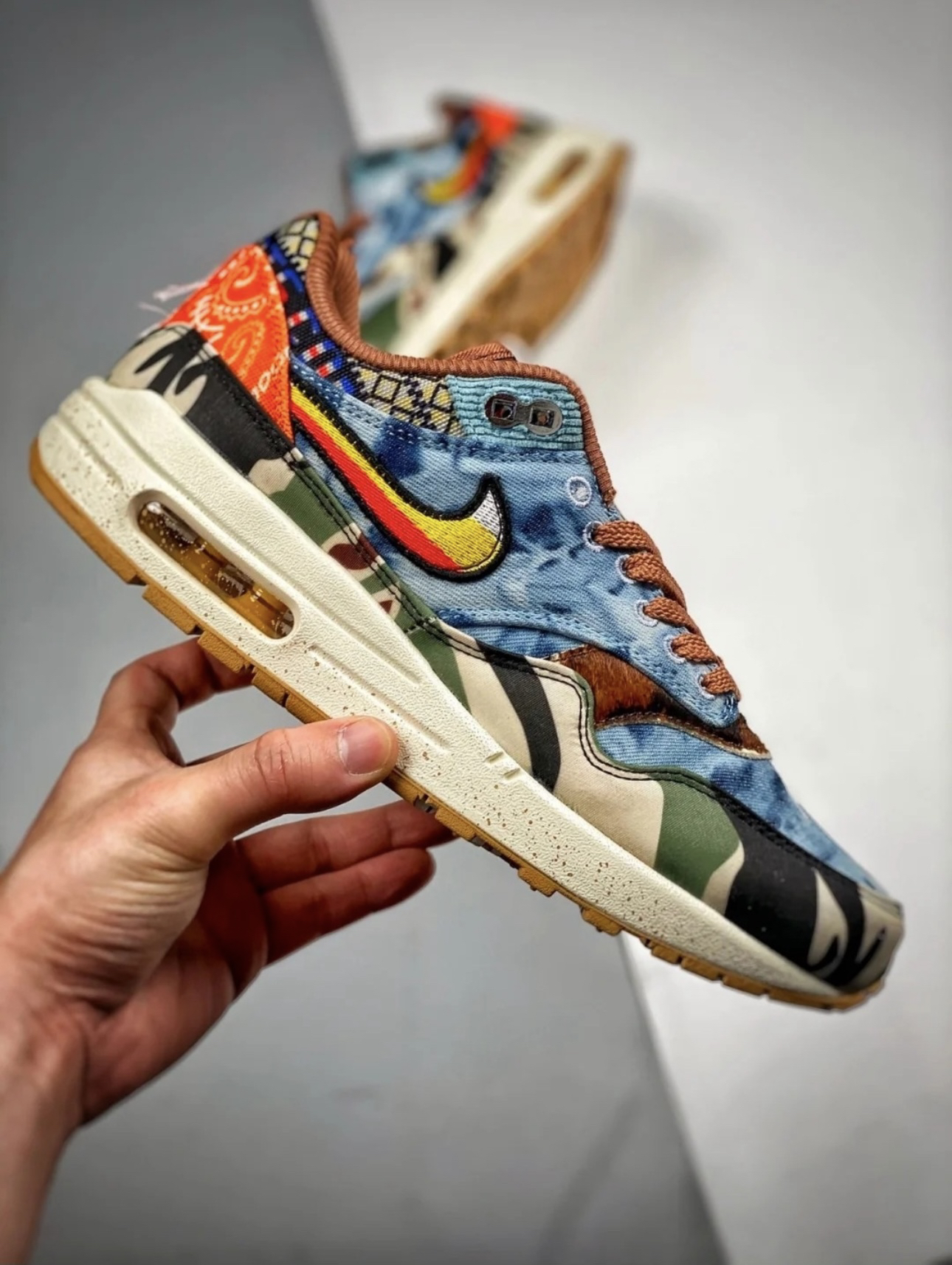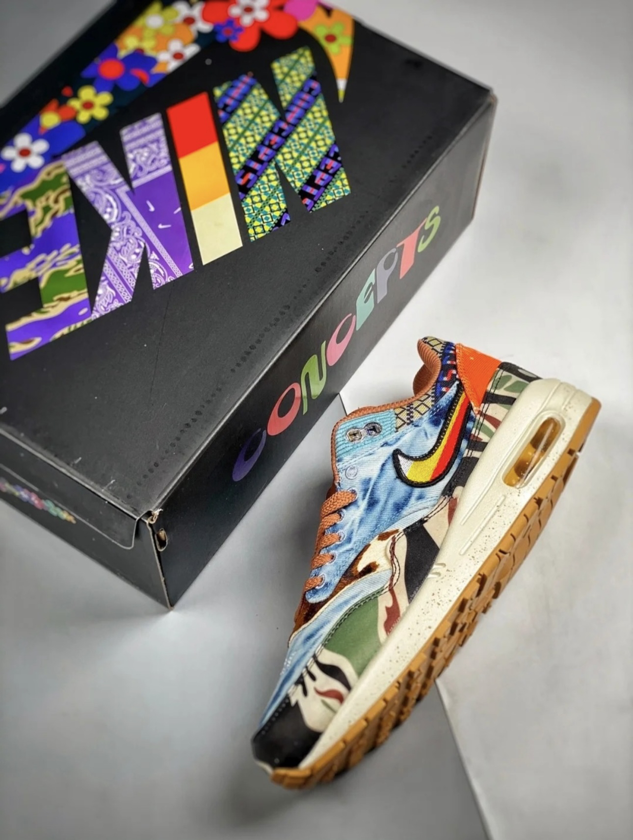 鞋身整体采用牛仔布、军装布料、天鹅绒与灯芯绒等材质打造,每一处都颇具辨识度。鞋面有多种颜色,牛仔鞋面配上不拘一格的方格印花,象征年轻人显勇于创新,追求真我的精神。! ·中底融入泼墨印花,设计灵感源自当时的音乐节;此外,花卉风格的 Nike Swoosh搭配梭织 Concepts 标志和专属定制的吉他拨片吊牌,缔造迷人复古外观。 ·个人觉得配色充满立体度,非常清新耐看,而且很百搭,适合日常穿搭以及户...