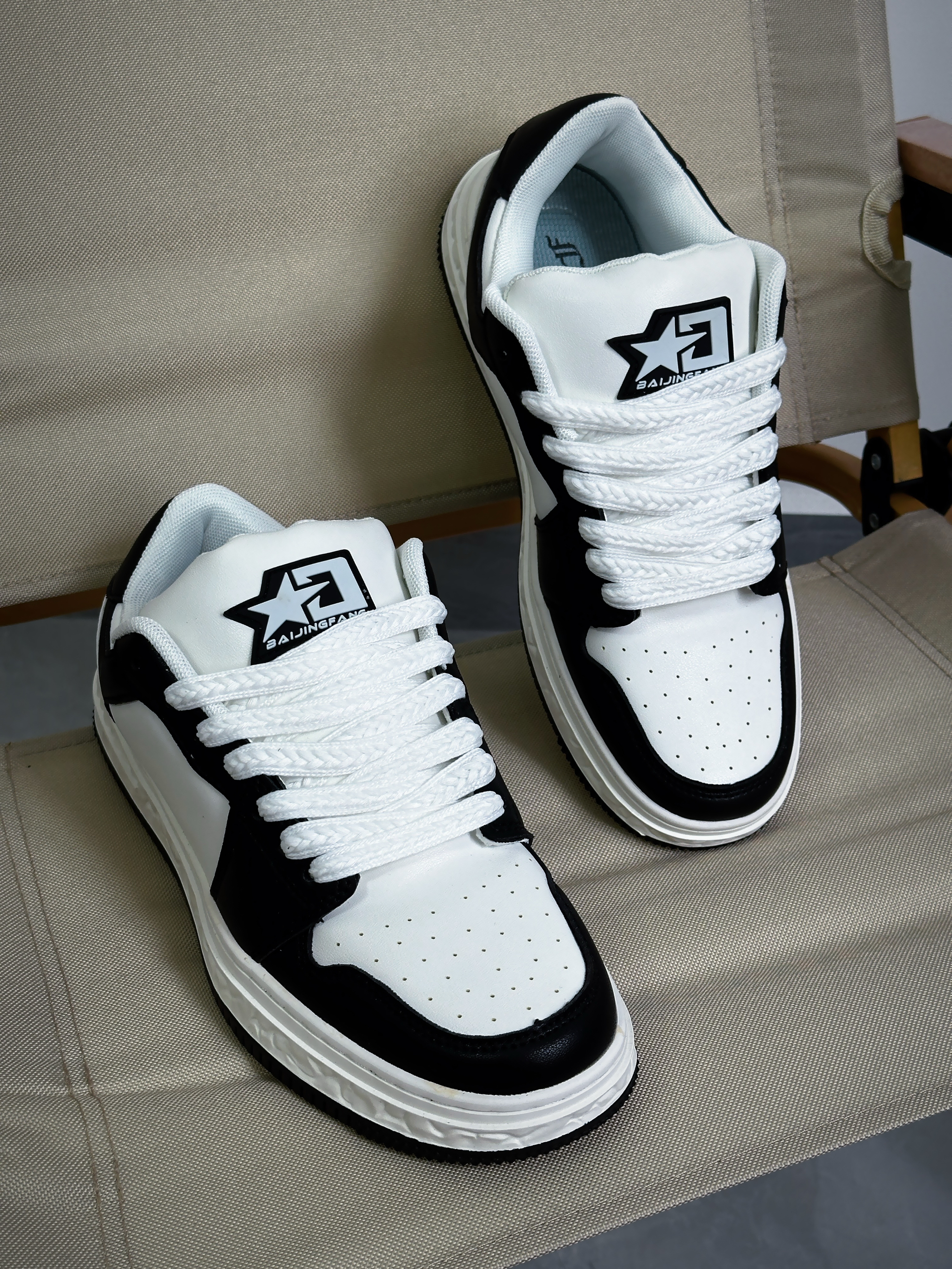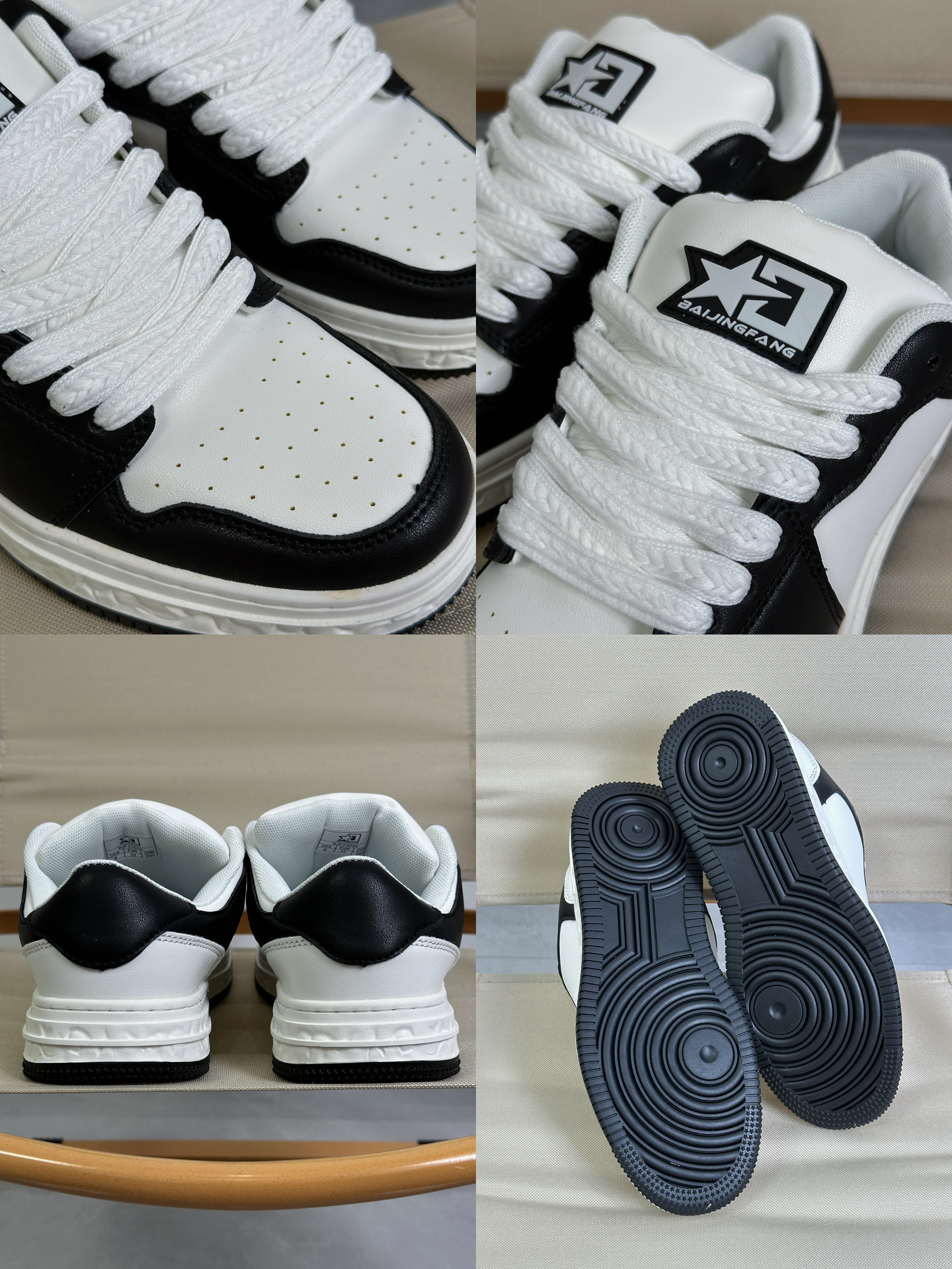 📮今天给大家分享 百井坊 这双休闲板鞋 ---- 🎨鞋子采用了黑白两色的拼色设计好看百搭,中底的纹理设计很好地提升了整体层次感🔝 ---- 🔍超纤皮鞋面细腻有质感,内里填充物比较足,鞋口很软绵,我穿着时包裹感很好,脚感轻便舒适,透气不闷脚,深纹路的橡胶大底防滑耐磨✔️ ---- 💥这双板鞋颜值和脚感都在线,日常休闲或通勤都可以上脚穿搭,一起来看看这双鞋子吧👀