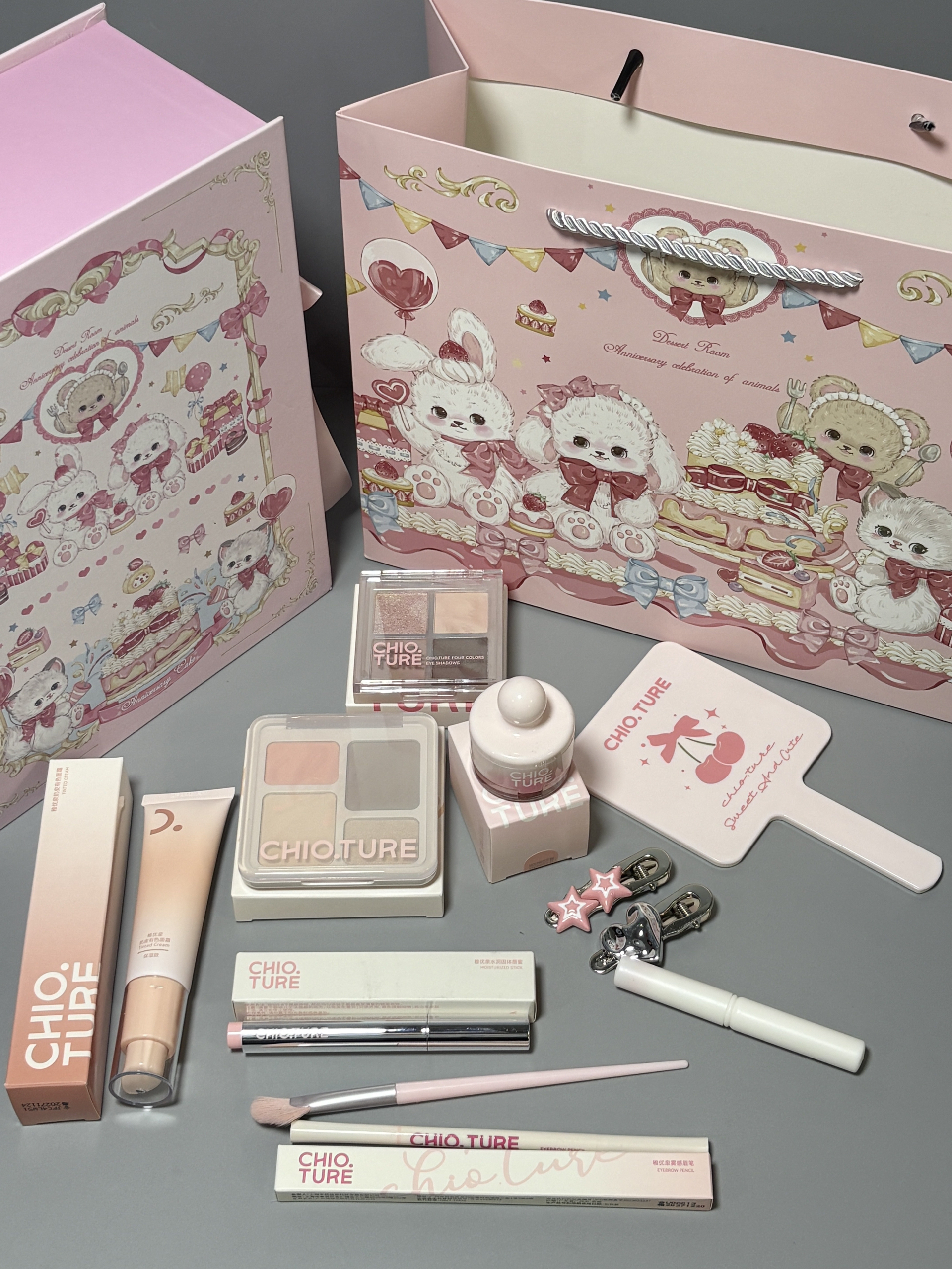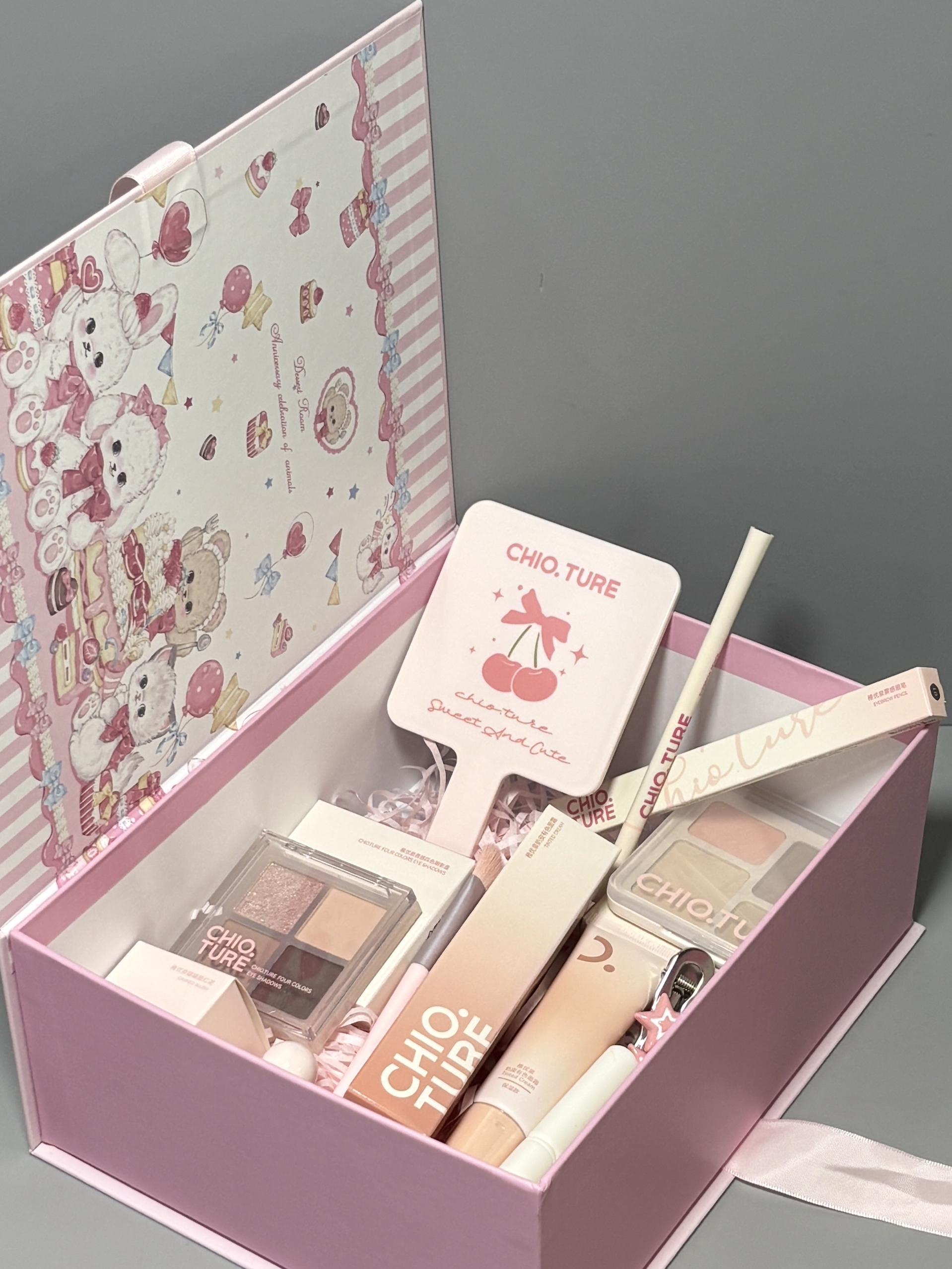 是稚优泉的浪漫满屋礼盒耶 粉嫩嫩的太懂我们的少女心啦 里面有唇蜜、眉笔、腮红、眼影盘、综合盘、有色面霜、发夹、手持镜、腮红刷、遮瑕刷…好多东西诶,都蛮实用的 我试用了一下,颜色蛮显白的,日常用完全ok 我觉得女孩汁收到这样的礼物真滴会开心耶