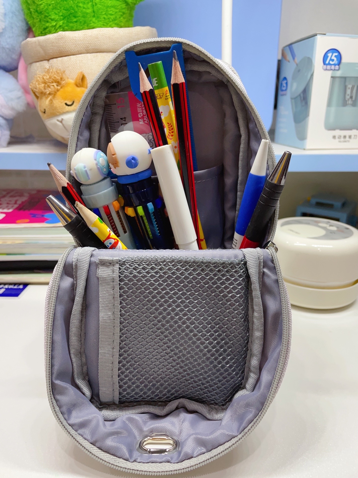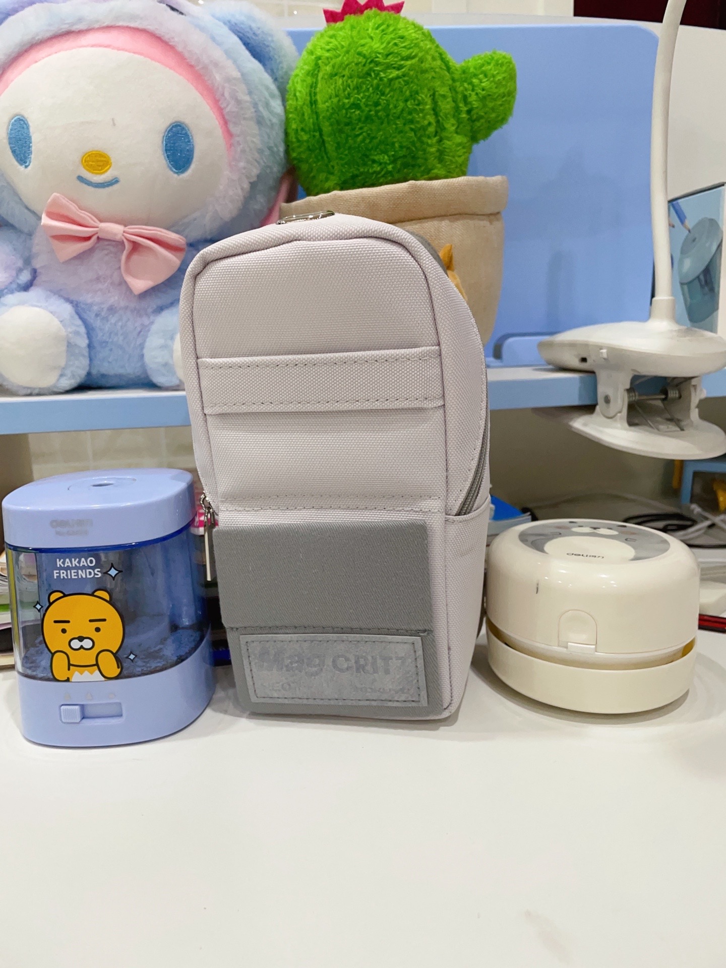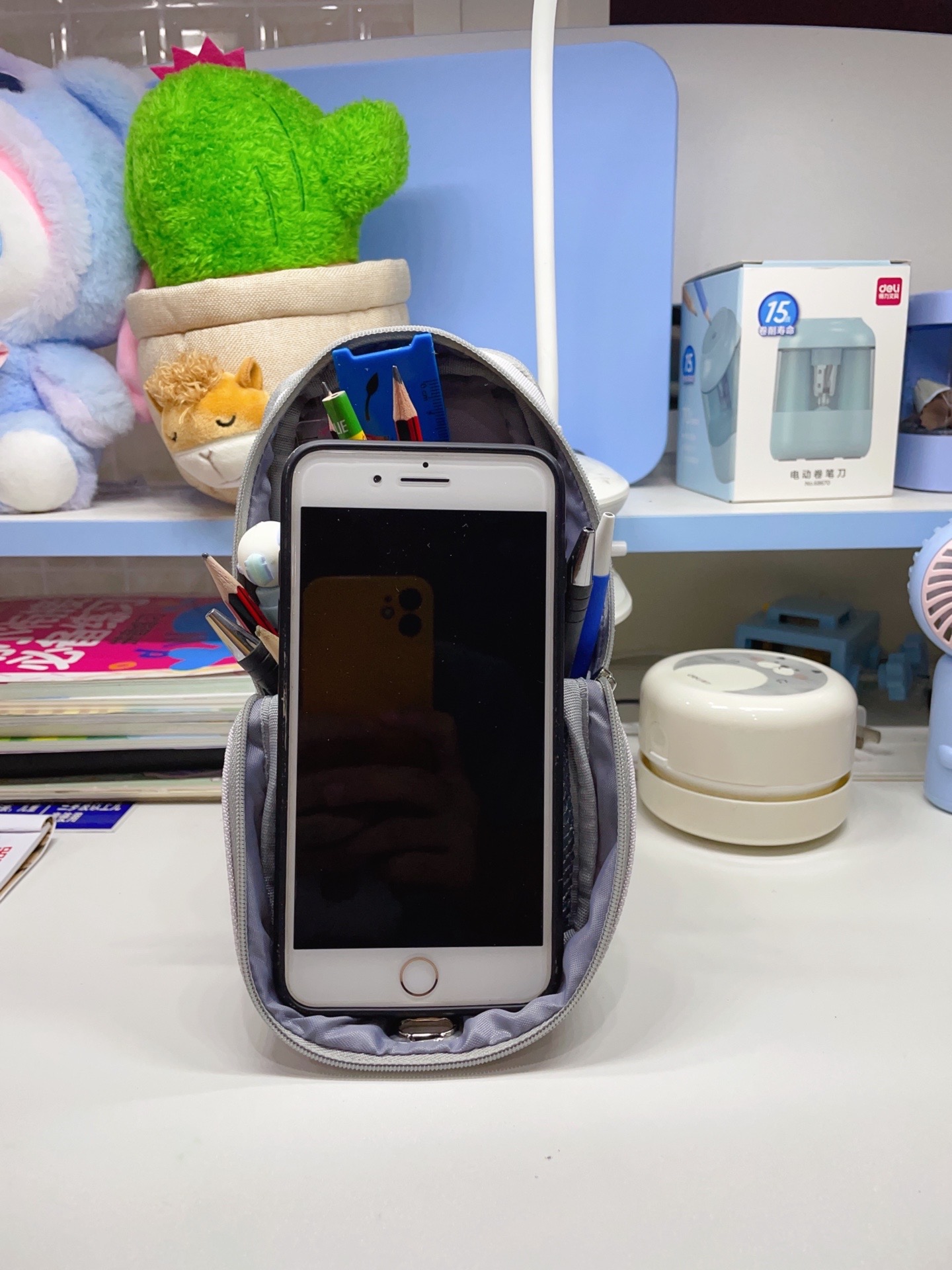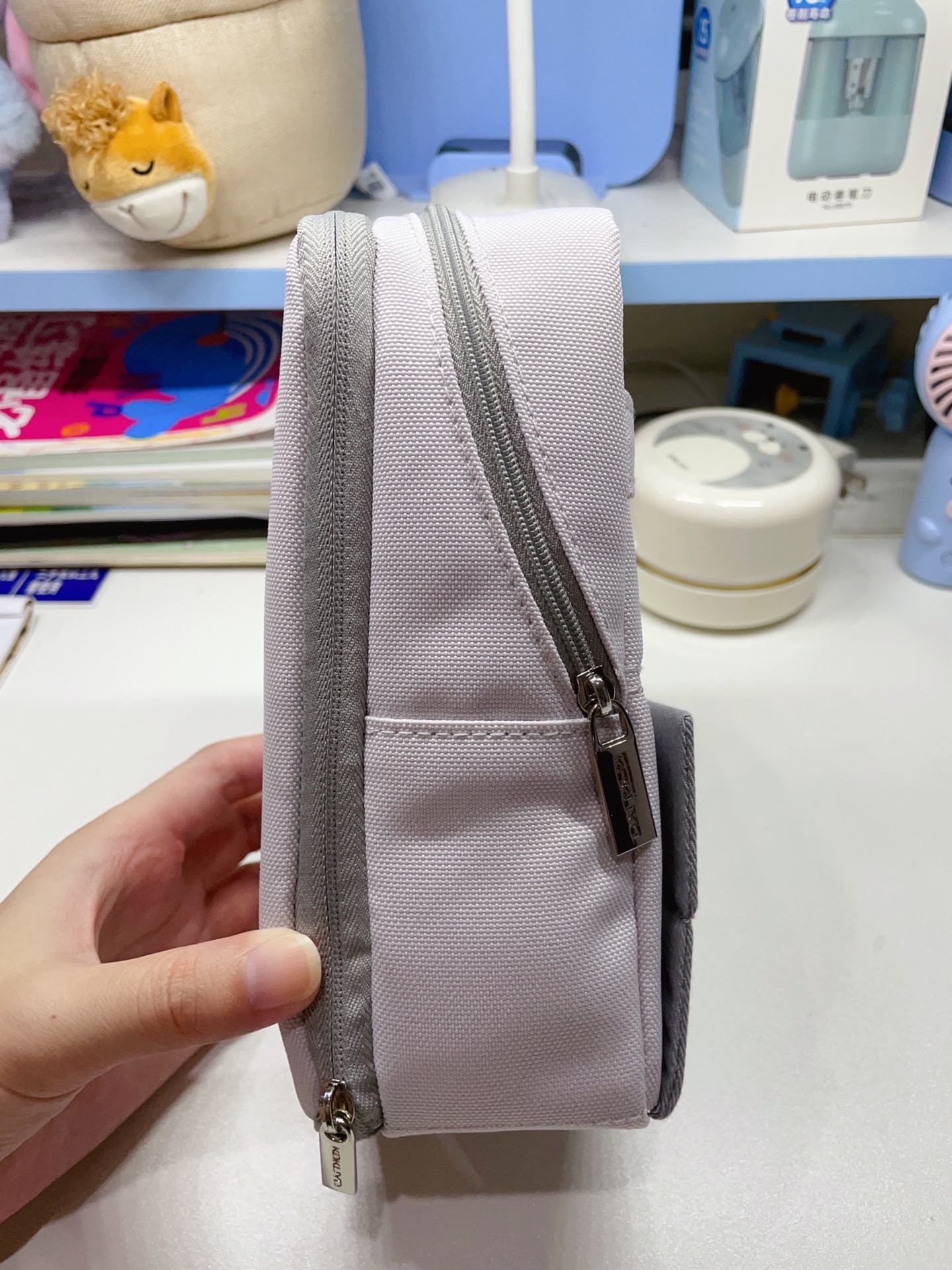 国誉笔袋,一眼相中 款式简单容量大有分层 帆布面料结实耐用 放个尺子大三角完全没问题 关键能躺能立 还能当手机支架 高颜值