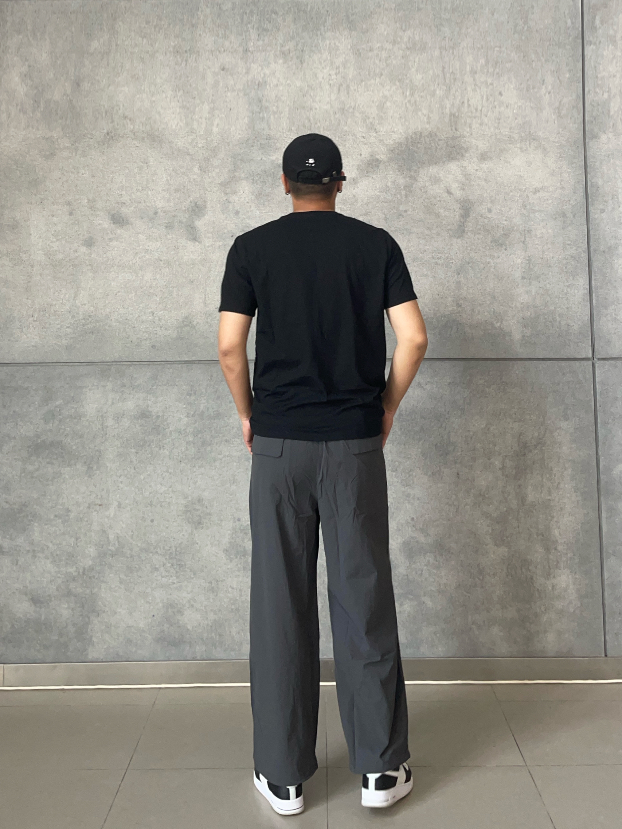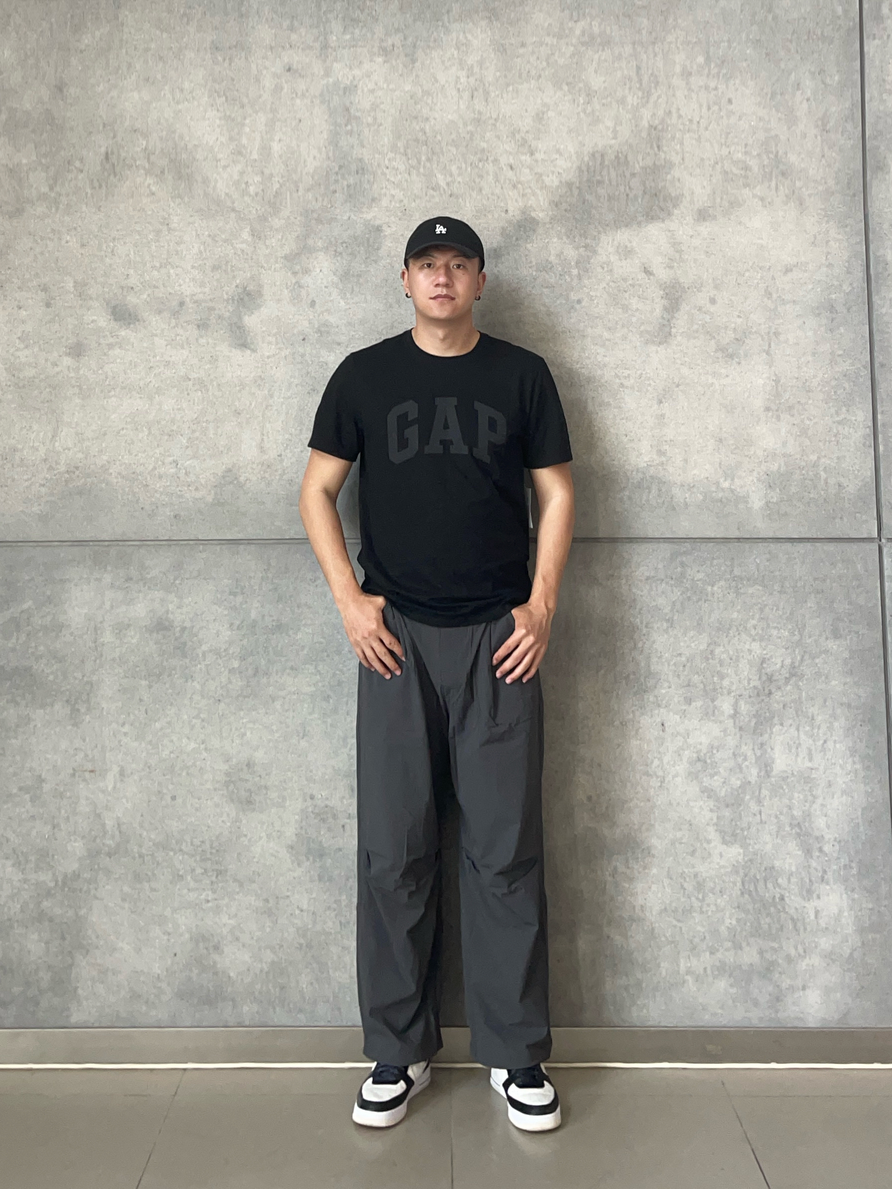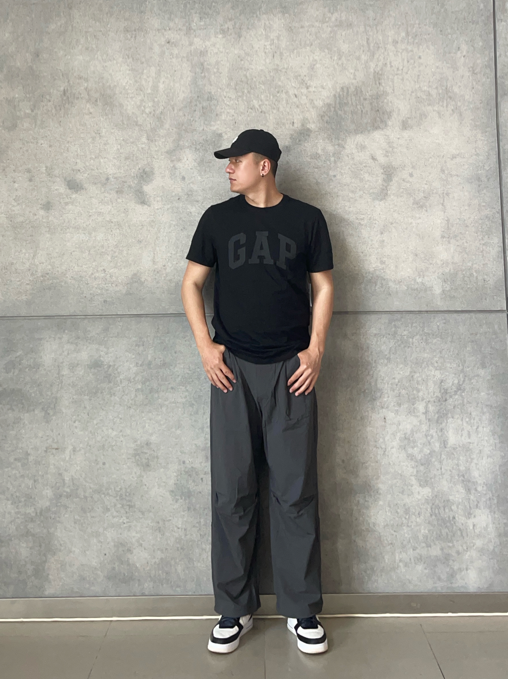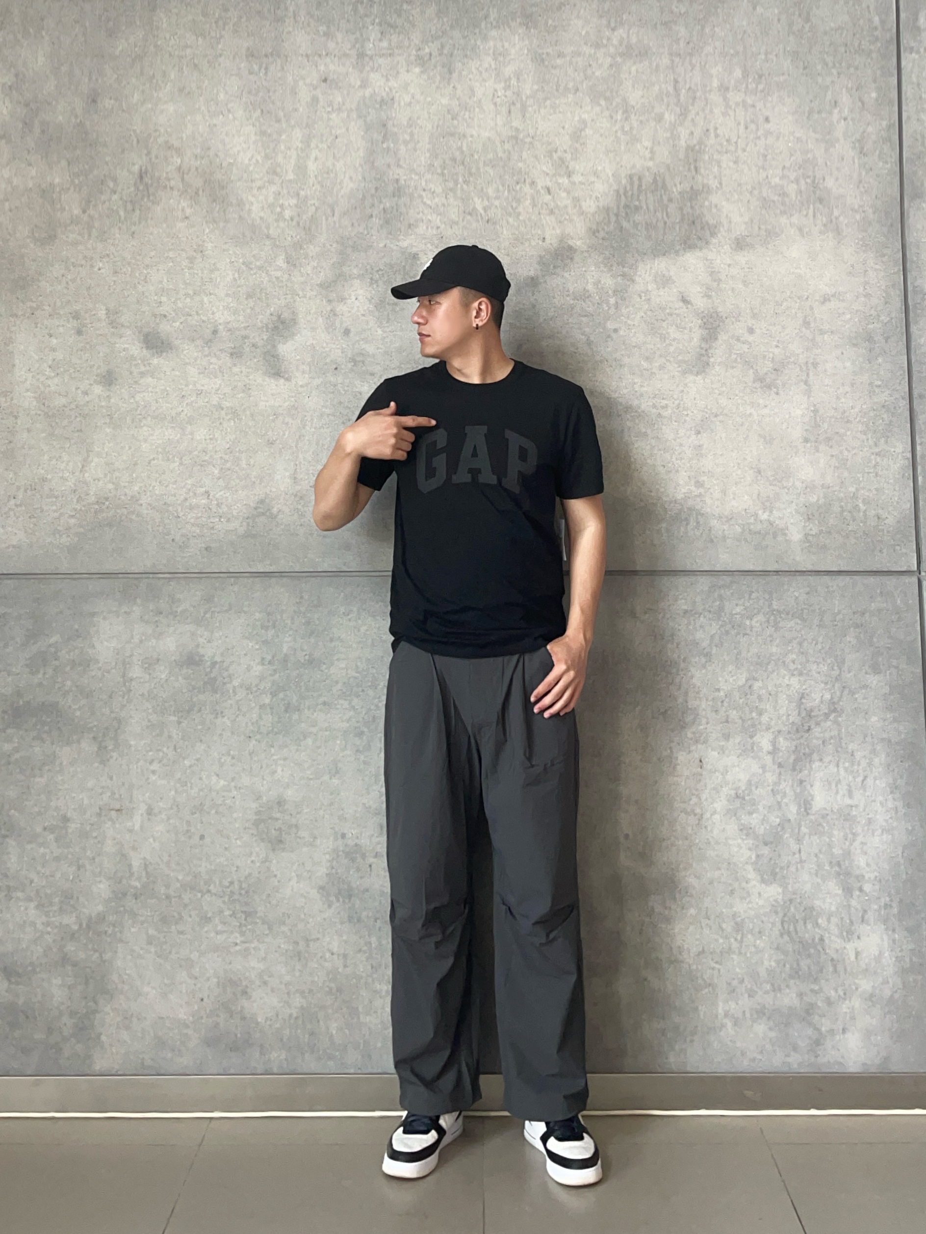 . 👕|GAP黑T直接焊在身上💯 剪标手速💨快过闪电⚡的「本命打底」 微弹面料➕字母印花 单穿叠搭稳赢✨ . 👖|灰雾阔腿裤藏肉显瘦👖 慵懒垂感🌀配空军鞋头👟超帅 . 💡懒人胶囊公式: 3分钟抄作业⏱️黑白灰三色叠buff🎨 基础款靠版型💥衣柜钉子户➕1🔒 👦🏻:188 | 85 👕:XL 👖:XXL