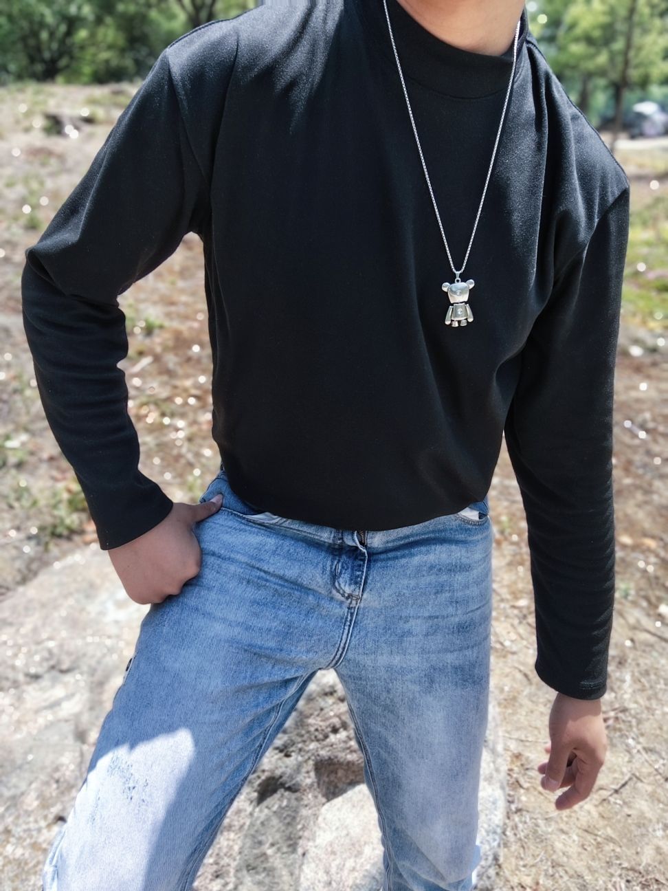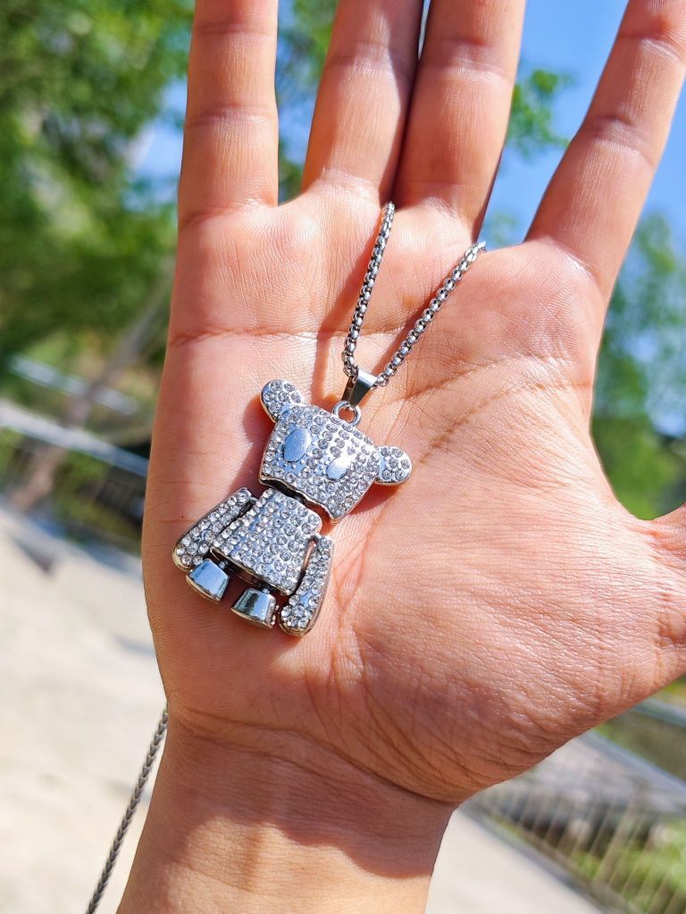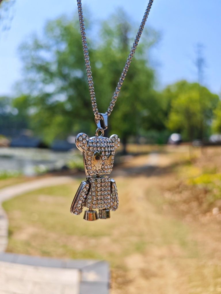 👋👋大家好啊!今天分享平时出门穿搭单品,精致g男生就要时时搭配精致配饰! 🆒今天穿黑色搭配小熊项链🐻。颜色很亮,半边满钻,钛钢材质,不易氧化和变黑。小熊的关节还可以转动,特别有趣!! 🆒今天上衣黑色➕牛仔裤➕小熊项链,妥妥的精致雅痞的氛围感!!💕