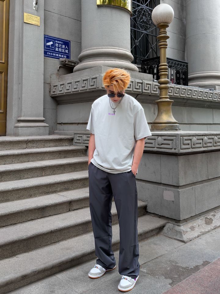 即将进入高温警告⚠️还在为黏腻汗渍尴尬?这套美式运动让我从健身房帅到街拍现场! 速干面料T恤,后背汗渍秒蒸发,遇水显色印花 运动出汗变身街头艺术品!搭配微弯刀剪裁运动裤,纯色系视觉拉长腿型,垂感面料跑跳不贴腿。灰T+炭灰裤配运动板鞋,美式运动滤镜直接拉满✔️ 记住这套公式:速干面料T+垂感裤型塑形+同色系鞋呼应=全天候清爽的美式运动风 图源网络侵删