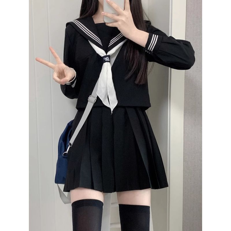 谁懂正统JK的魅力啊!这套黑三本中间水手服套装简直把日系学院风刻进DNA,穿上瞬间梦回日剧里的清冷系女主,连呼吸都是「生人勿近但我超甜」的反差感! 「黑三本」正统DNA,把校供感焊在身上! ▪️ 水手服:冷白月光本光 挺括尖领配三圈黑二本线(划重点:正统JK必看!),领口微微敞开露出锁骨,清冷中带点小温柔。版型暗藏小心机——收腰剪裁+微扩肩,直角肩少女感拉满,H型身材秒变「纸片人」,连背影...