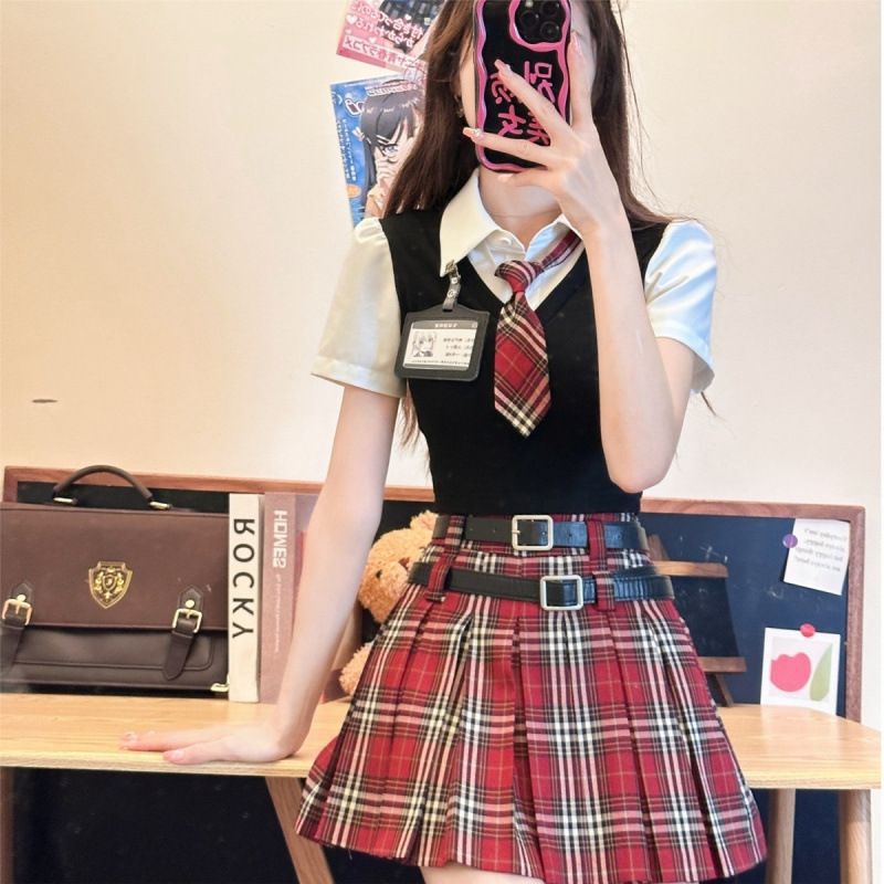 【美式甜辣妹学院风套装女夏季jk制服假两件上衣格子半身裙子】,由用户 演员阿香 分享,来自广东。这是一篇来自识货社区的真实用户分享笔记。