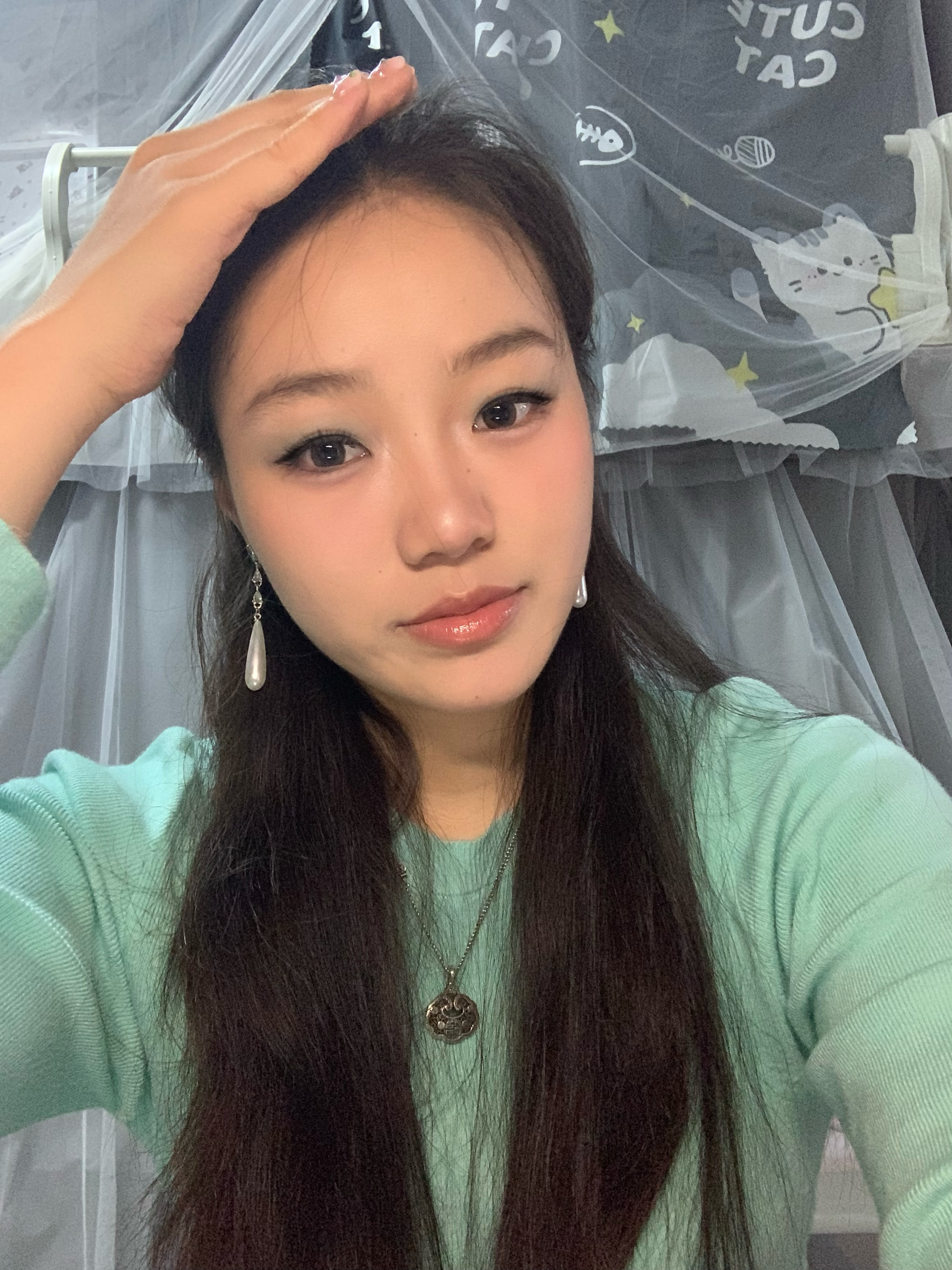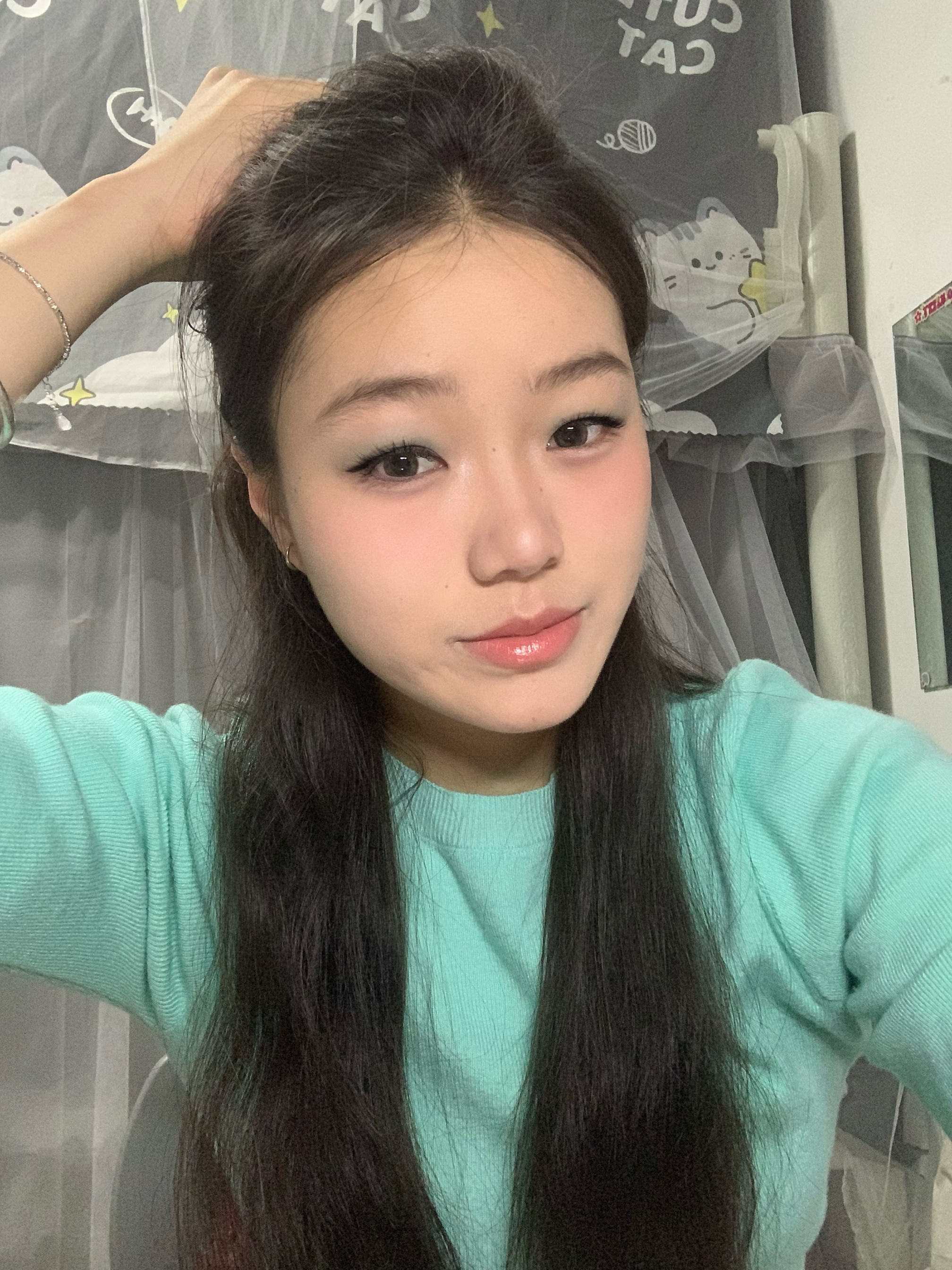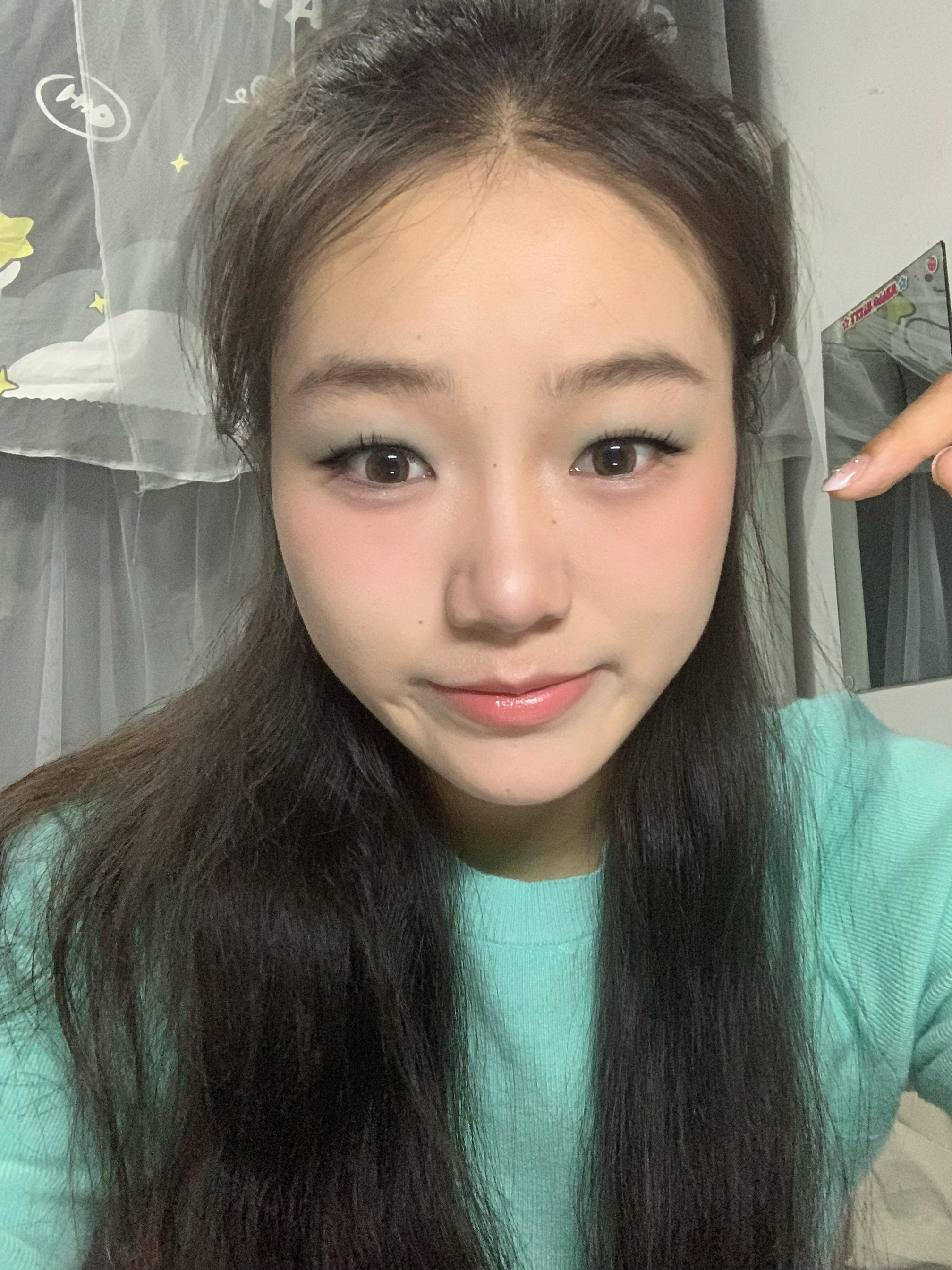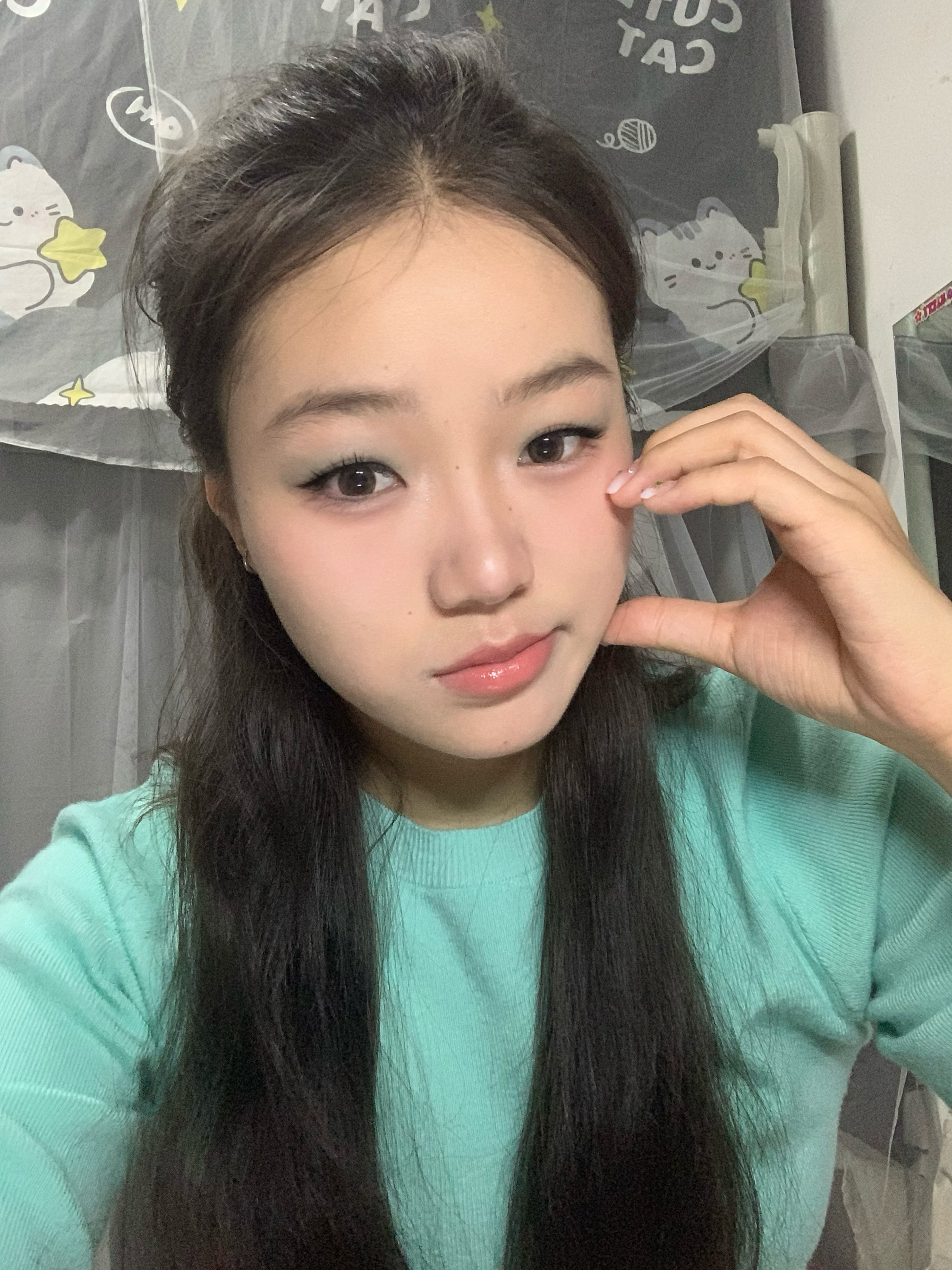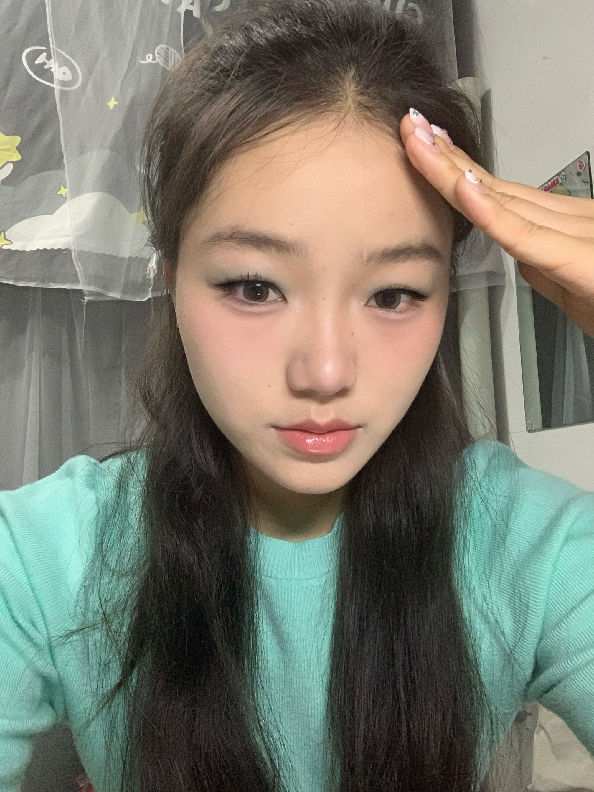 👋方脸五官扁平肉鼻子的的小宝们! 👋快来看看这个超级春日的薄荷曼波妆! 👋蒜头鼻+肿眼泡也能轻松变美 👋什不会化妆的新手小白快看过来 👋妆容重点:薄荷蓝色眼影、嫩妹色腮红 👋其次底妆一定要干净无暇 眼线不用太过夸张,眼尾拉长即可