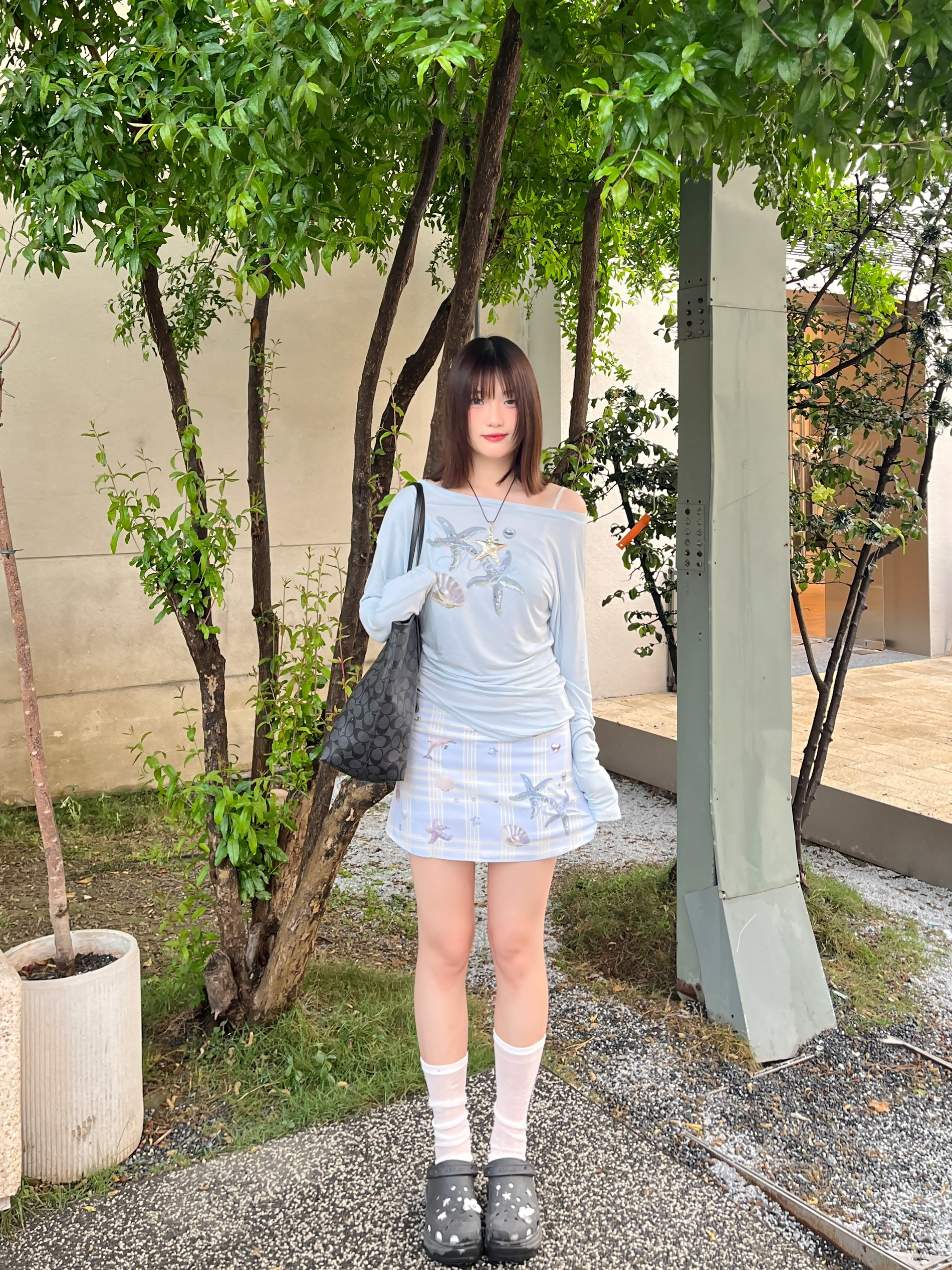 这一身太适合去海边or海岛玩啦~ 很有夏天的感觉,搭上洞洞鞋可以直接玩水了💦