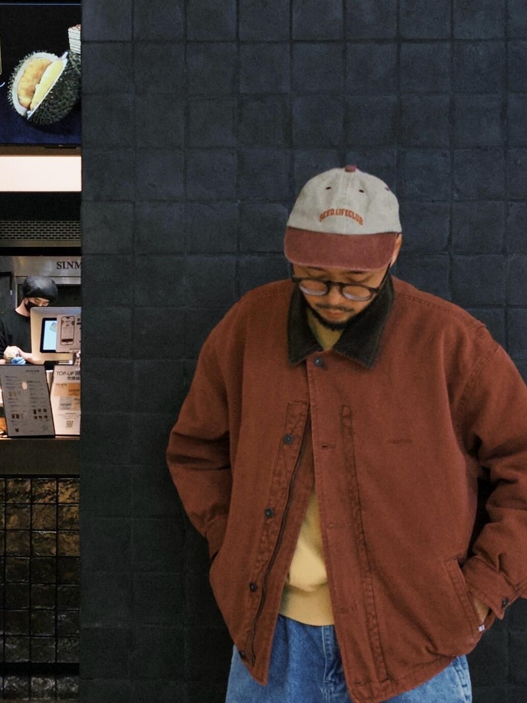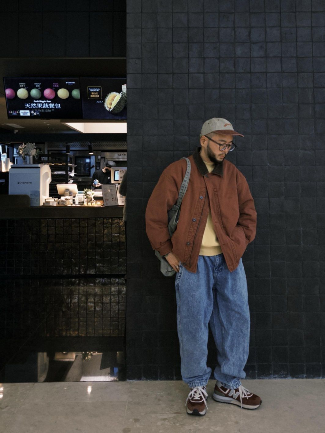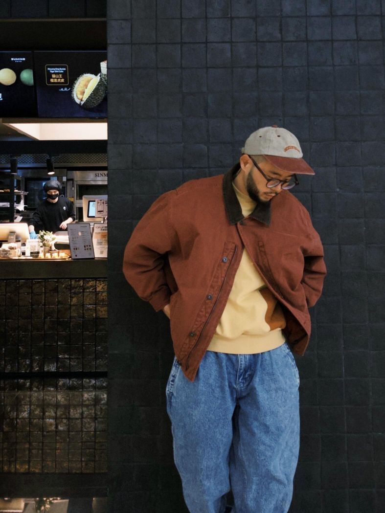 小个子男生穿搭优势就是可以穿女装,复古水洗低饱和玫红女士棉服夹克搭配水洗雪花牛仔,满满80S复古味儿,不知道这算不算巴恩风