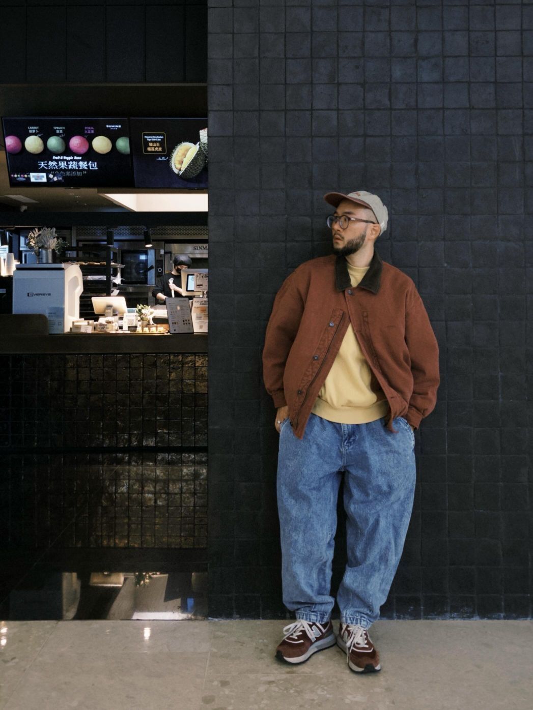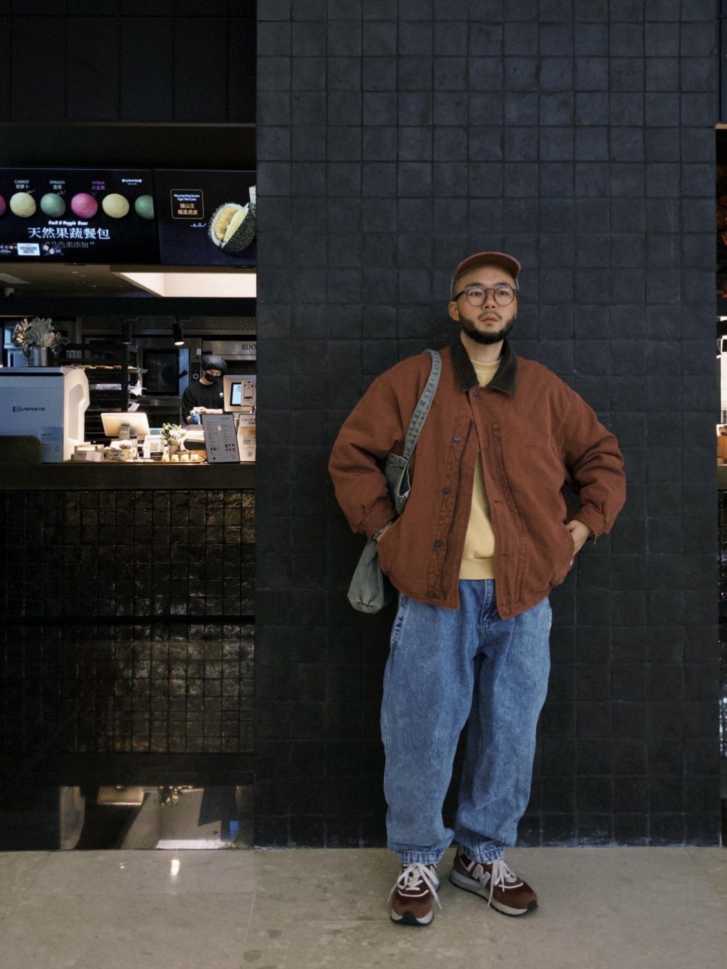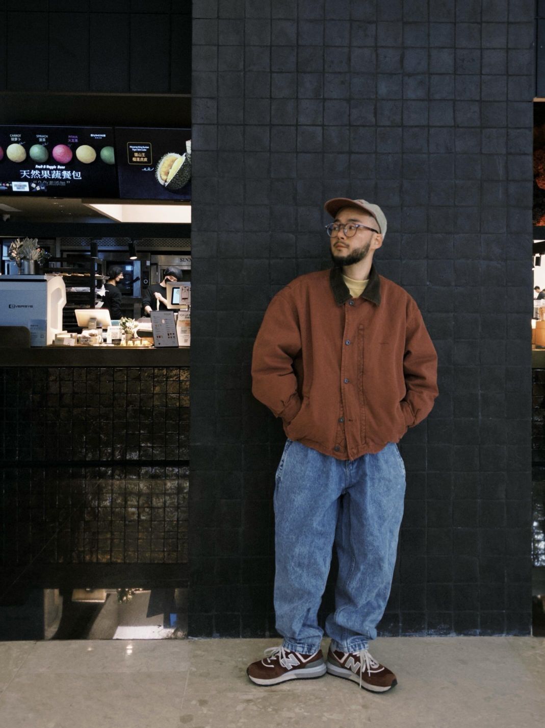 小个子男生穿搭优势就是可以穿女装,复古水洗低饱和玫红女士棉服夹克搭配水洗雪花牛仔,满满80S复古味儿,不知道这算不算巴恩风