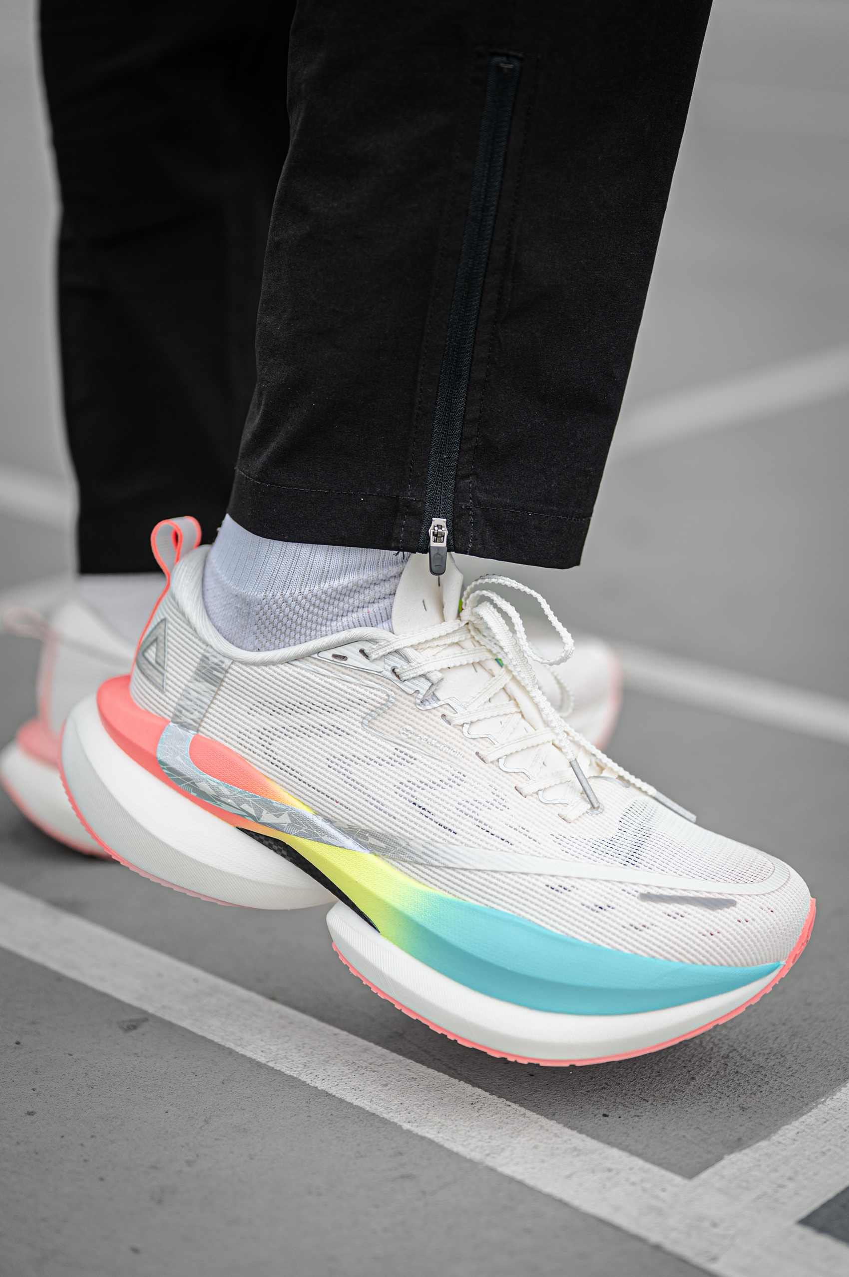 之前也穿着过匹克二次呼吸了,最近更新迭代的匹克二次呼吸PRO版本颜值更好看了,在性能上也优化了一些。 中底类似彩虹色的色调结合白色的鞋面,看着颜值不错,纱罗鞋面轻薄透气,加宽楦型更适合宽脚人群穿着。 更加弹的态极科技穿起来很舒服,北斗勺助推的80D碳板,结合黄金力学曲线,分趾结构的设计,达到流畅速率,跑步更稳定。保证了强度下限。 对于千米体测,日常慢跑锻炼,长跑竞训这双鞋都可以很好满足到。