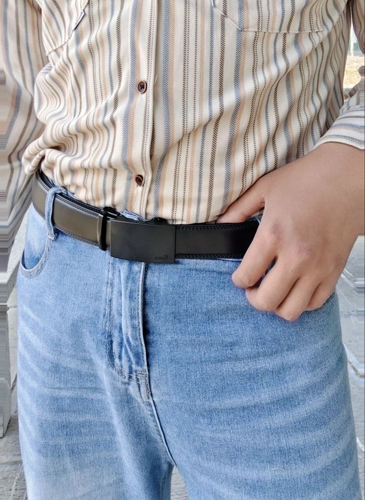 💕最近上班一直戴着这个皮带,觉得还挺好 的,上身感觉很舒服! ✔️它是那种磨砂的质感,上面有一个logo,还挺高级的,触摸的时候也不会留指纹。是哑光扣头,一拉一扣特别方便,上厕所也方便! ✔️它的材质还不错,是黑色牛皮的,戴起来很柔软舒适,而且也耐磨耐造! ✔️整体来说还是挺好穿戴的,今天搭配衬衫&牛仔裤,还挺帅气的,最近出行都爱戴它!✌