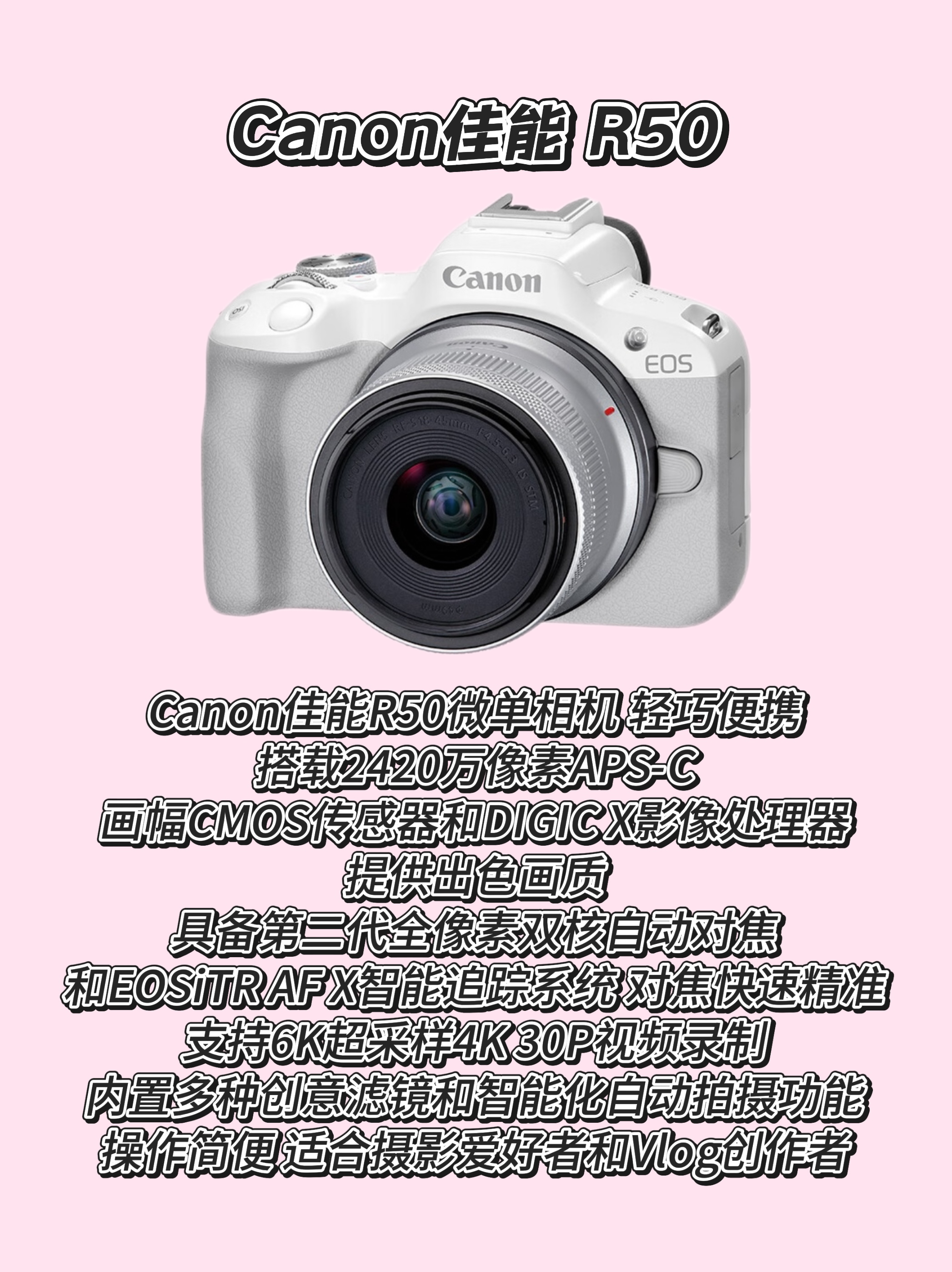 作为一名摄影爱好者,我必须说佳能真的yyds!😍 微单党看这里 R50轻巧到可以塞进包包👛,拍摄模式让小白也能出大片!R100更是APS-C画幅中的战斗机🚀,辅助功能超贴心~ 单反控必入 2000D便携又高清📡,4000D配18-55镜头简直是入门神器🎁!还有大名鼎鼎的"小痰盂"50mm f/1.8,虚化效果绝绝子🌸! 很爱的R50+小痰盂的组合🌟,拍人像自带柔焦滤镜,朋友圈点赞收割机👍!