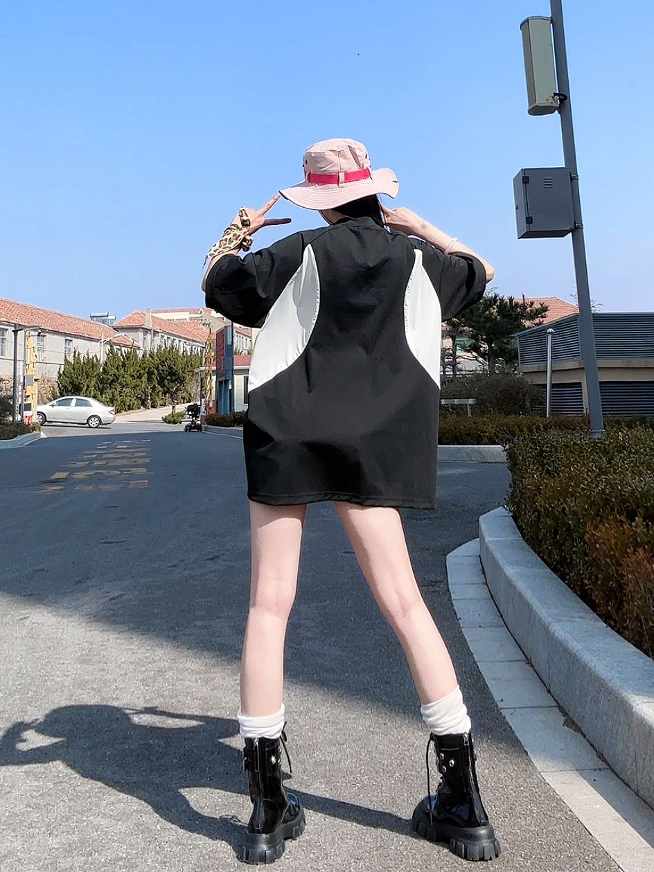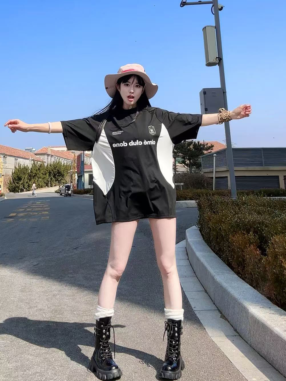 🧥: FDR 📏:M码 真的太喜欢这件衣服啦 📦开箱印象: 衣服剪裁超级精致, 黑白撞色经典又吸睛 同样的撞色字母印花俏皮又活泼 🧍♀️上身感受: 穿上透气不沉闷~ 版型宽松不挑身材! 大面积纯色显得整个人利落干净✌️