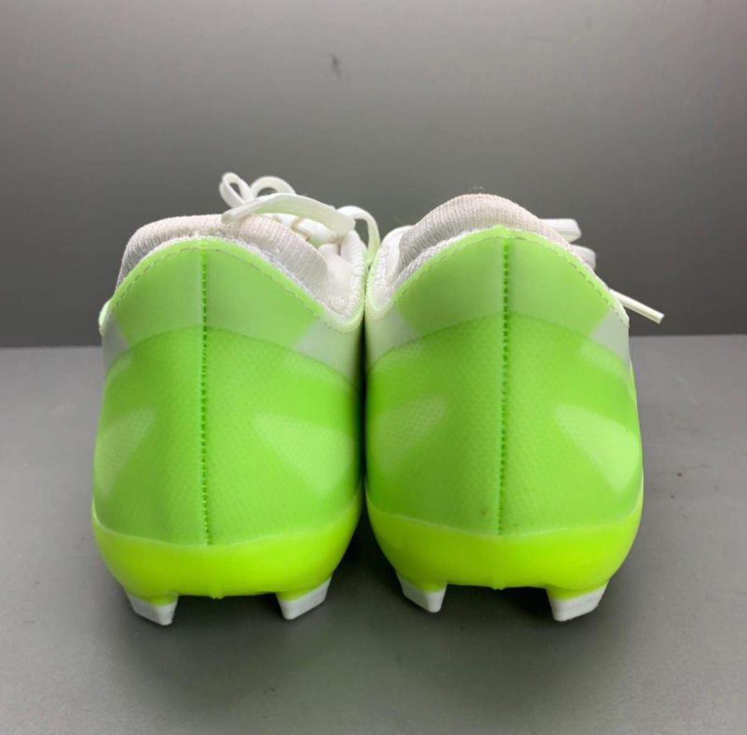 外观设计 这款足球鞋以亮眼绿色为主色调,搭配流畅线条勾勒出极具动感的轮廓。PU革材质鞋面质感高级,品牌标识醒目,整体造型兼具时尚与运动气息,男女穿着都能成为球场焦点。 穿着体验 采用AG专业大底,抓地力强劲,在多种场地都能保持稳定。PU革鞋面贴合脚部,透气性佳,鞋仓空间合理,长时间奔跑也不易磨脚,为球员带来舒适又专业的实战体验 。
