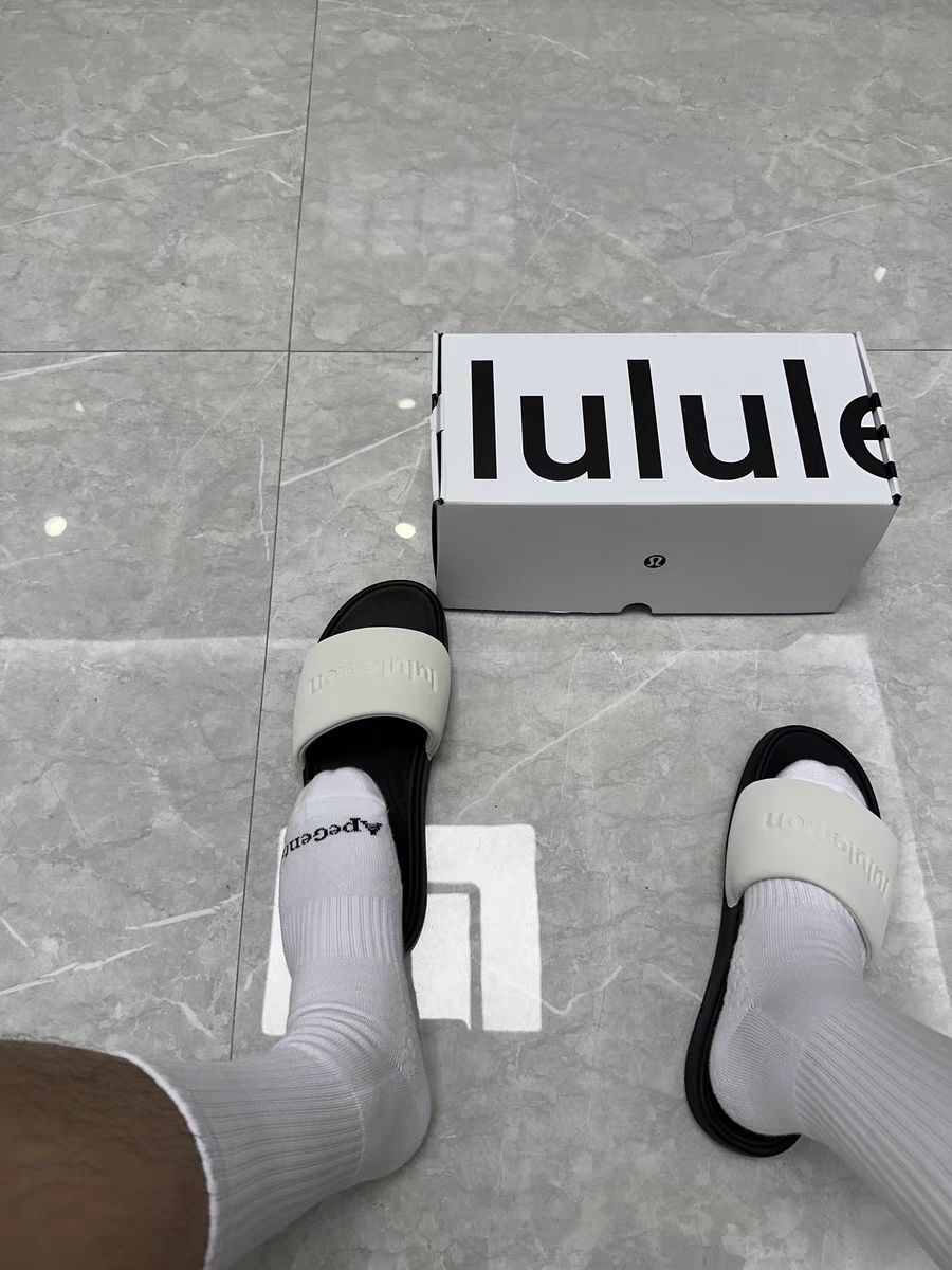 Lululemon的拖鞋,真的完全是看到外型就下單了,沒想到實際上拿到試穿後,也非常舒適,尤其是白色覆蓋的舒適度極佳,也非常排汗,值得推薦夏日穿搭必备,配个袜子就出门。很舒服的踩感,软硬适中,支撑也不错,穿两三天就会根据你自己的踩地作力点来形成你独有的轻微凹陷。
