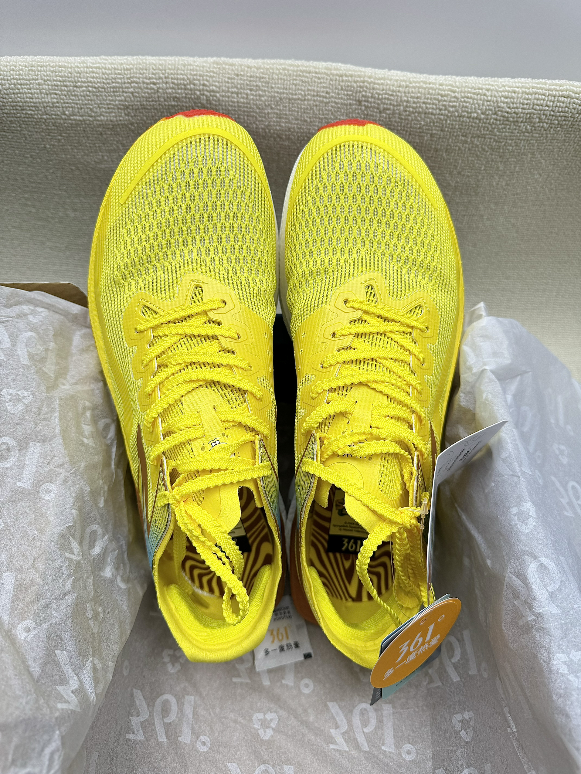 本篇笔记关联了361度 飞燃3.0 跑鞋 全掌碳板软弹透包裹性马拉松竞速运动减震体测田径训练防滑短跑轻便长跑比赛抗冲击 海绵宝宝/黄色等商品,为用户提供真实的使用体验和购买参考。