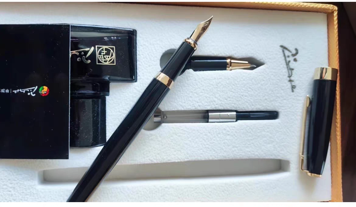钢笔与墨水瓶采用黑色与金色的经典搭配,设计优雅高贵,透露出不凡的品味,非常适合在正式场合使用,彰显个人气质。 套装中不仅包含钢笔,还配备了墨水瓶、笔尖和笔帽,功能多样,可以满足不同的书写需求,为书写爱好者提供了更多选择。 从包装到设计,都透露出这款钢笔可能来自一个知名品牌,品质有保障,书写性能稳定,值得信赖。 这款钢笔套装精美的外观和卓越的书写体验,使其成为送给朋友、家人或同事的绝佳礼物,特别是对...