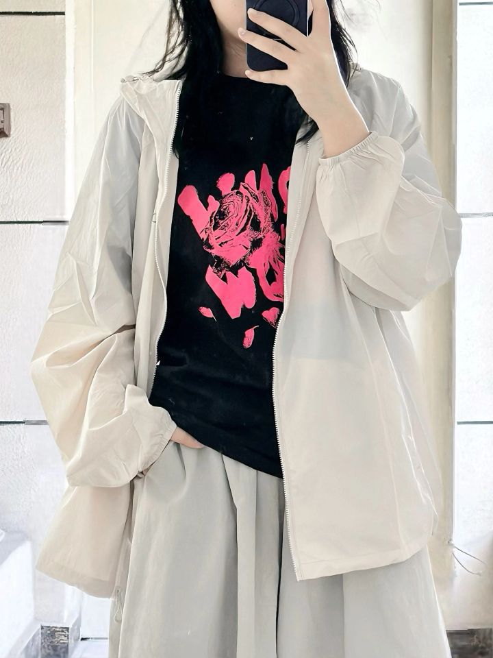 和TA一起防晒的夏天这件防晒衣也太好穿了 凉感面料上身瞬间降温 UPF400+防晒还透气 夏天穿完全不闷汗 宽松版型遮肉显瘦 当防晒还是外套都很错 是最近搭配率敲高的单品了