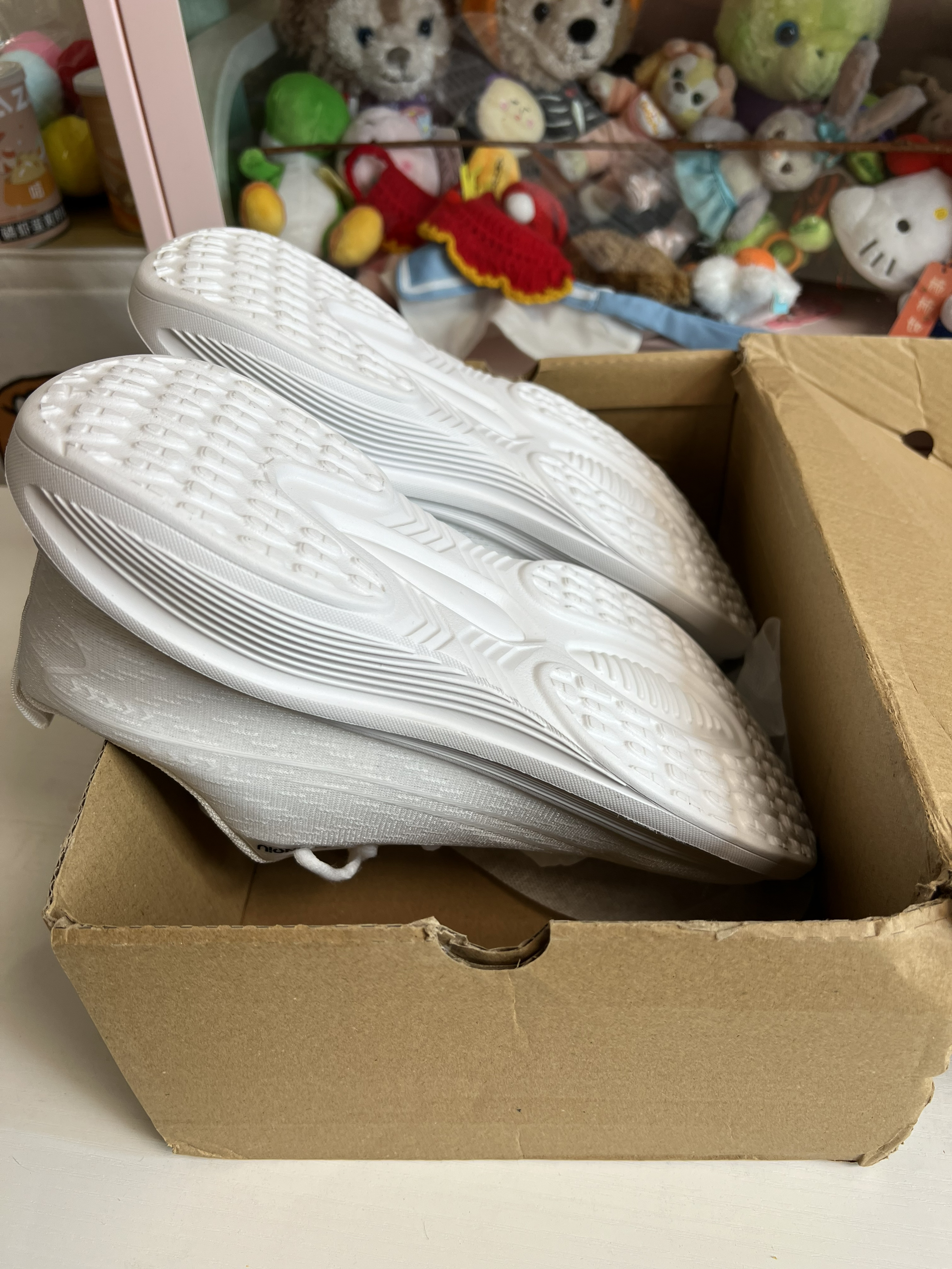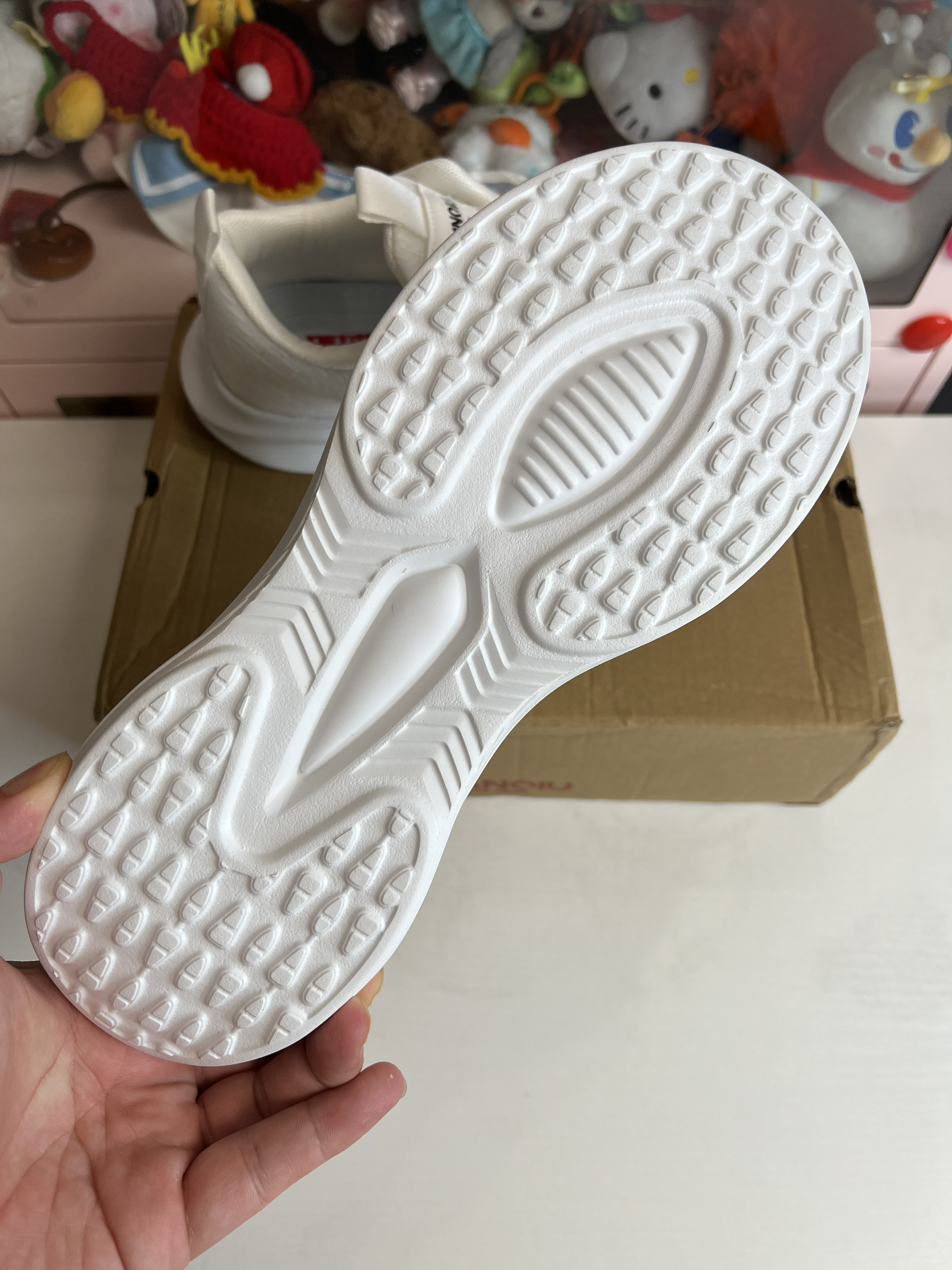 鞋子采用双层网纱拼接工艺 轻薄透气 拿在手上也是非常的轻 上脚轻盈舒适 后跟处也做了厚实的填充 完全不用担心磨脚 包裹性也不错 纯白的配色非常清爽很适合春夏的季节 校园感十足 只在鞋带孔处做了简单的品牌logo非常简约 不会觉得突兀 中底全掌发泡材质 脚感软弹 鞋底纹路也是防滑耐磨 无论你是跑步或者逛街都能轻松胜任 长时间走路也不会觉得累脚 作为一双纯白色跑鞋 百搭属于也是非常的高 搭配运动风休...