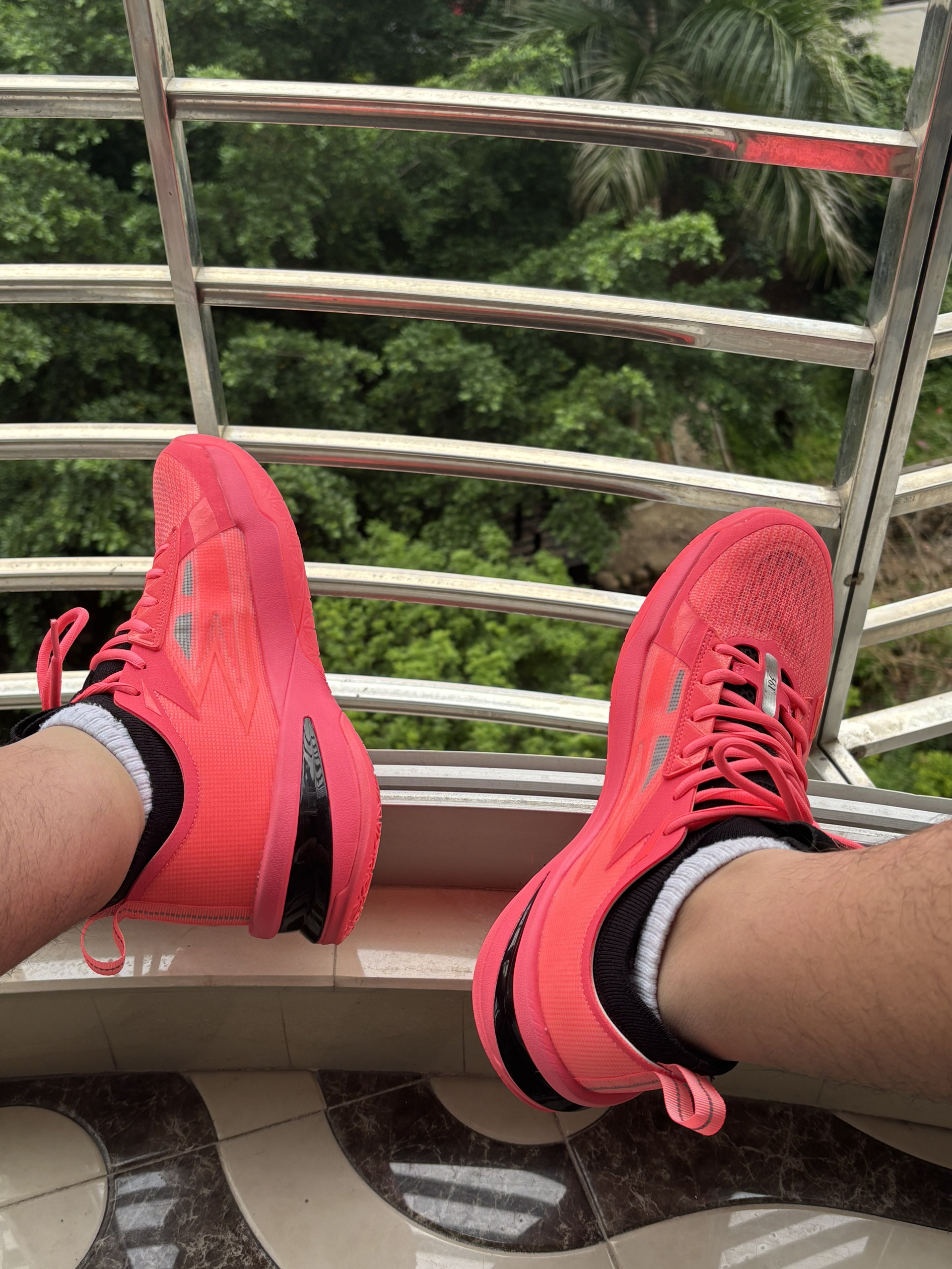 最近换了新鞋,和大家分享一下感受 先说鞋面,绞综编织材质透气贴脚,不磨脚踝。上周连打两场三小时球赛,脚没闷汗,强度够,急停、侧滑时鞋面不褶皱卡脚。 中底ENRG - X +科技厉害。上脚支撑感足,跑动回弹明显。我70kg打后卫,突破启动反馈跟脚,前掌14mm厚贴地感强,变相能精准感知地面。搭配CQT鞋垫,打完球膝盖不酸胀。