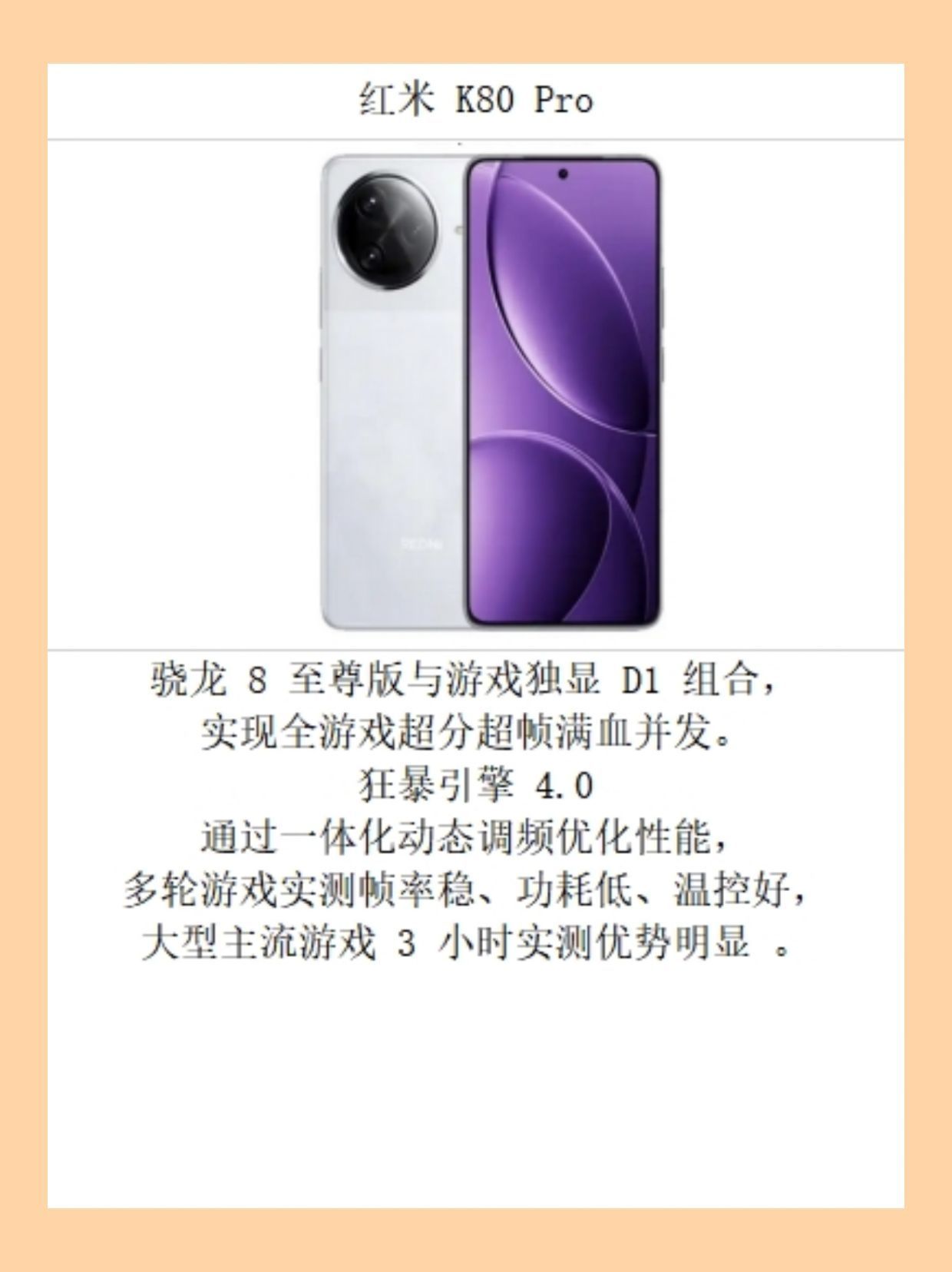 本篇笔记关联了iQOO 13 5G 手机 自研电竞芯片 长续航 全网通 快充 2K Q10珠峰屏 无限稳帧 全场景疾速引擎 传奇版、【魔方AI调度】nubia/努比亚 红魔 10 Pro 5G智能手机 骁龙至尊版 真全面屏 悟空屏 锋透明银翼 液态金属 6500mAh牛魔王电池 屏下摄像 ETT 隧道技术 魔方AI电源管理 移动平台 加量不加厚 白昼武士、Redmi/红米 K80 Pro 5G 手机 全焦段影像 新国屏 国家补贴 拍照 防水 闪充 2K直屏 6000mAh电池 120W+50W 快充组合 超声波指纹 50MP长焦 雪岩白等商品,为用户提供真实的使用体验和购买参考。