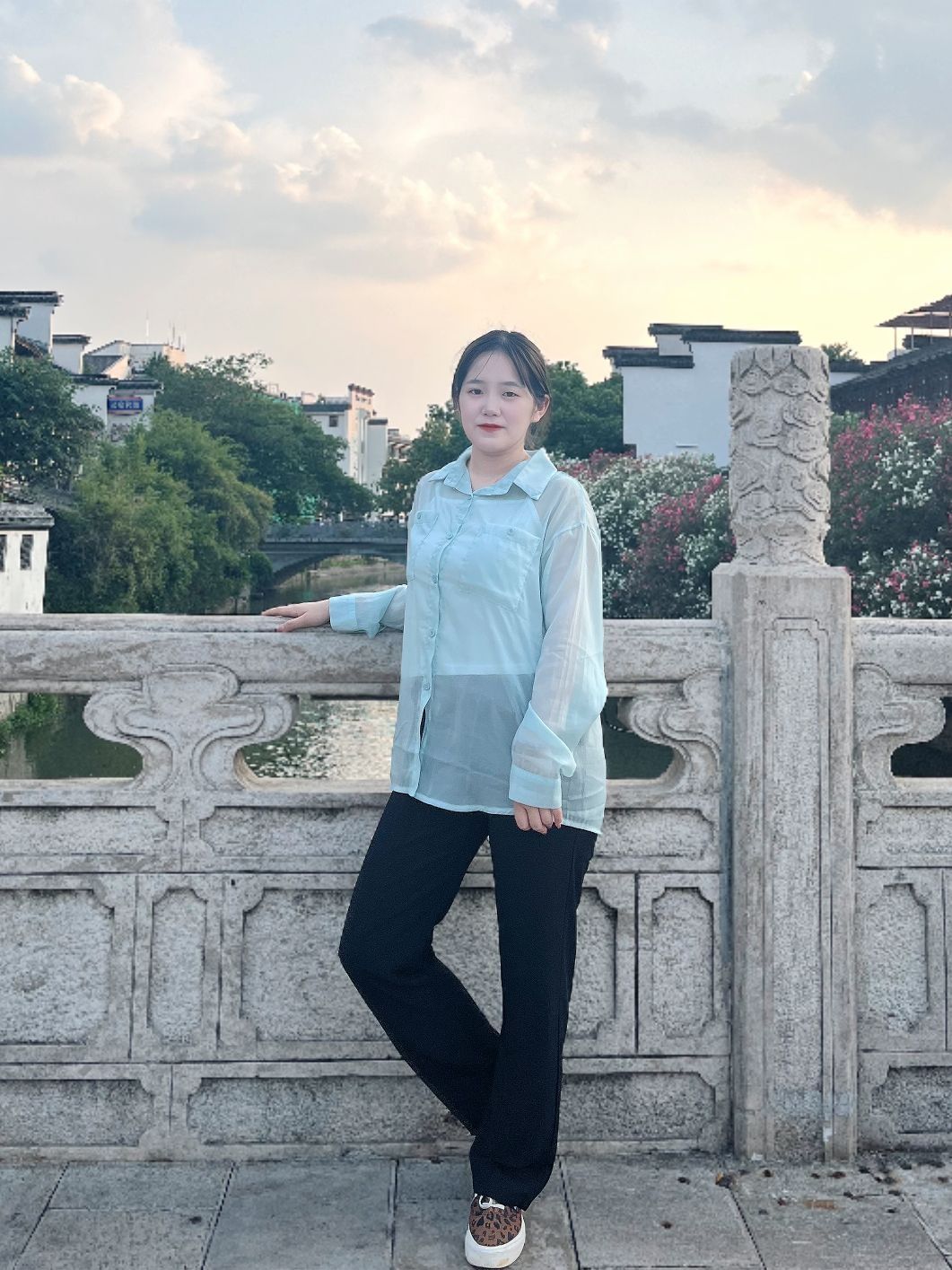 最近超爱这套组合 绿色长袖防晒衬衫+黑色休闲裤+豹纹板鞋 衬衫是冰丝面料,夏天穿完全不闷,防晒还透气; 黑色裤子是万能百搭款,显瘦又耐脏; 豹纹鞋给整体增添一点小个性,不会太夸张。 这么穿去逛街、遛狗都特别舒服,完全不用担心晒黑 推荐给想要实用又不想太路人的姐妹~
