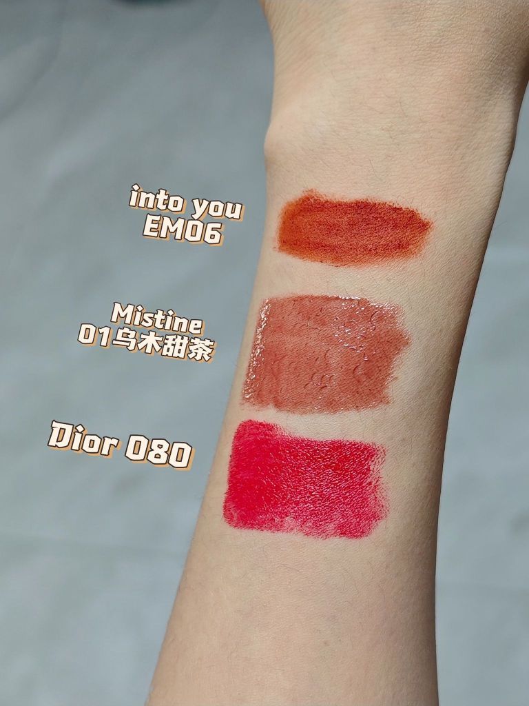 这期是三支口红测评图文 分别是intoyou mistine Dior三款热门色号 into you这支是烂番茄色 很显肤白显气色! mistine这支妆效很好 是镜面水光感 显得唇部很滋润! Dior 080这支口红也是偏橘红色 涂上后是大女主即视感!