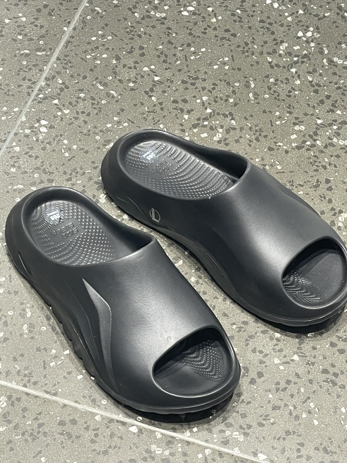 这双李宁拖鞋设计也太帅了 纯黑色没有多余的设计,就是很百搭简约,夏天下楼遛弯散步,穿上就能走,不用费心搭配!