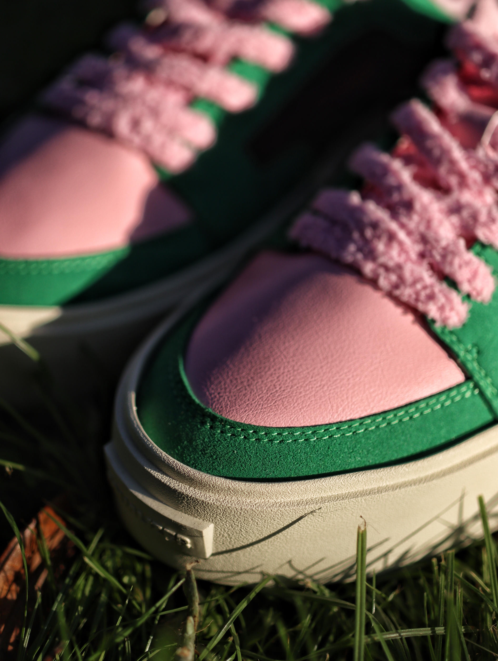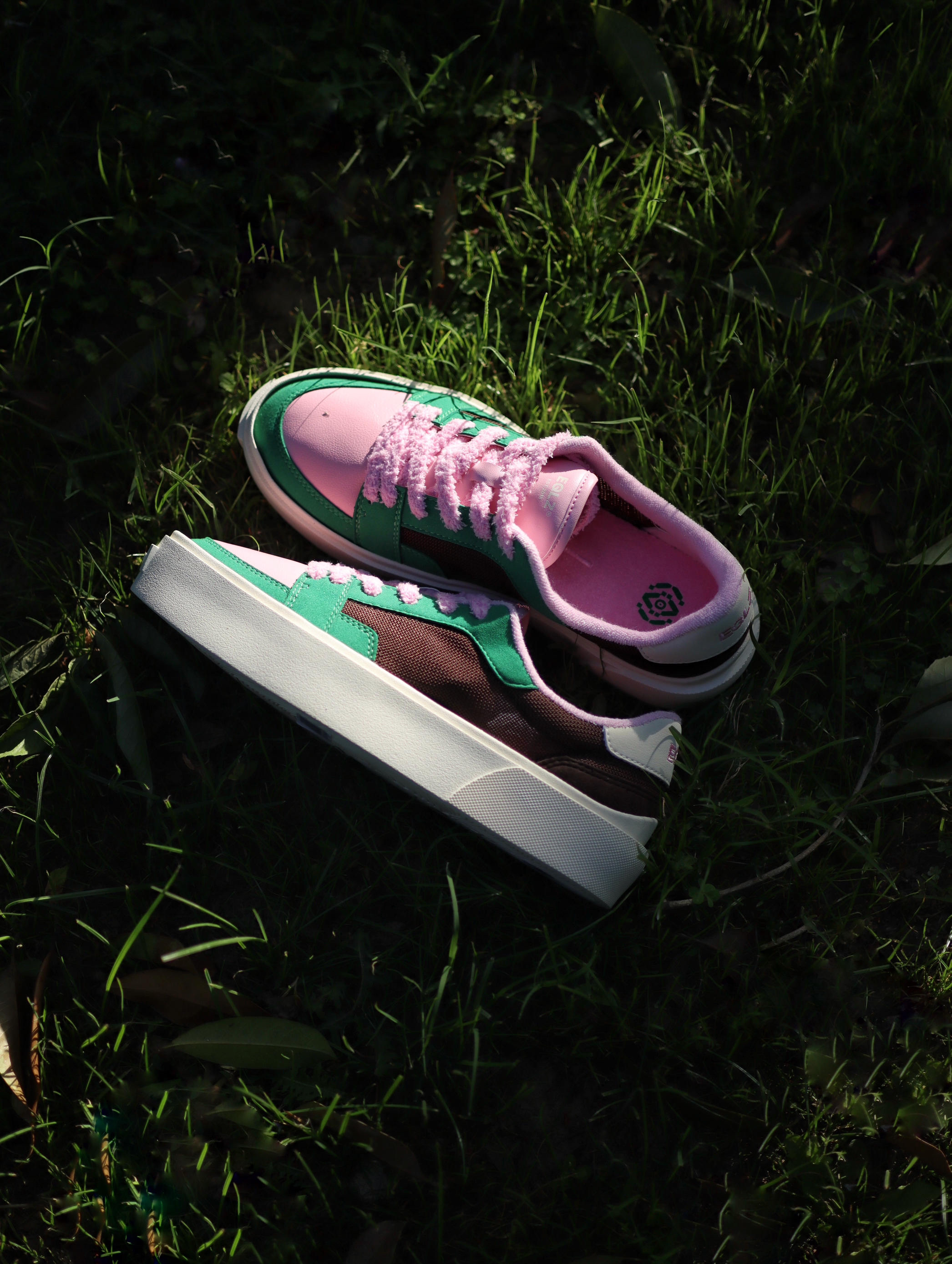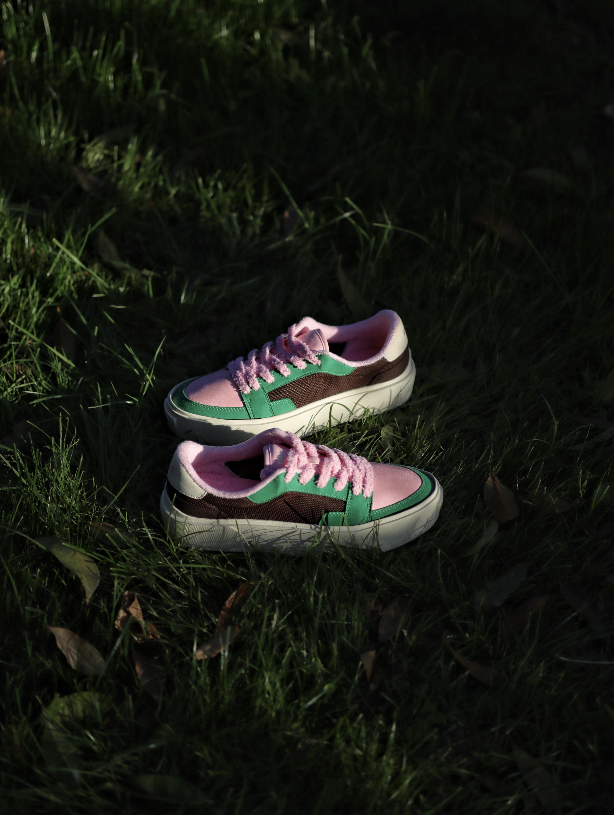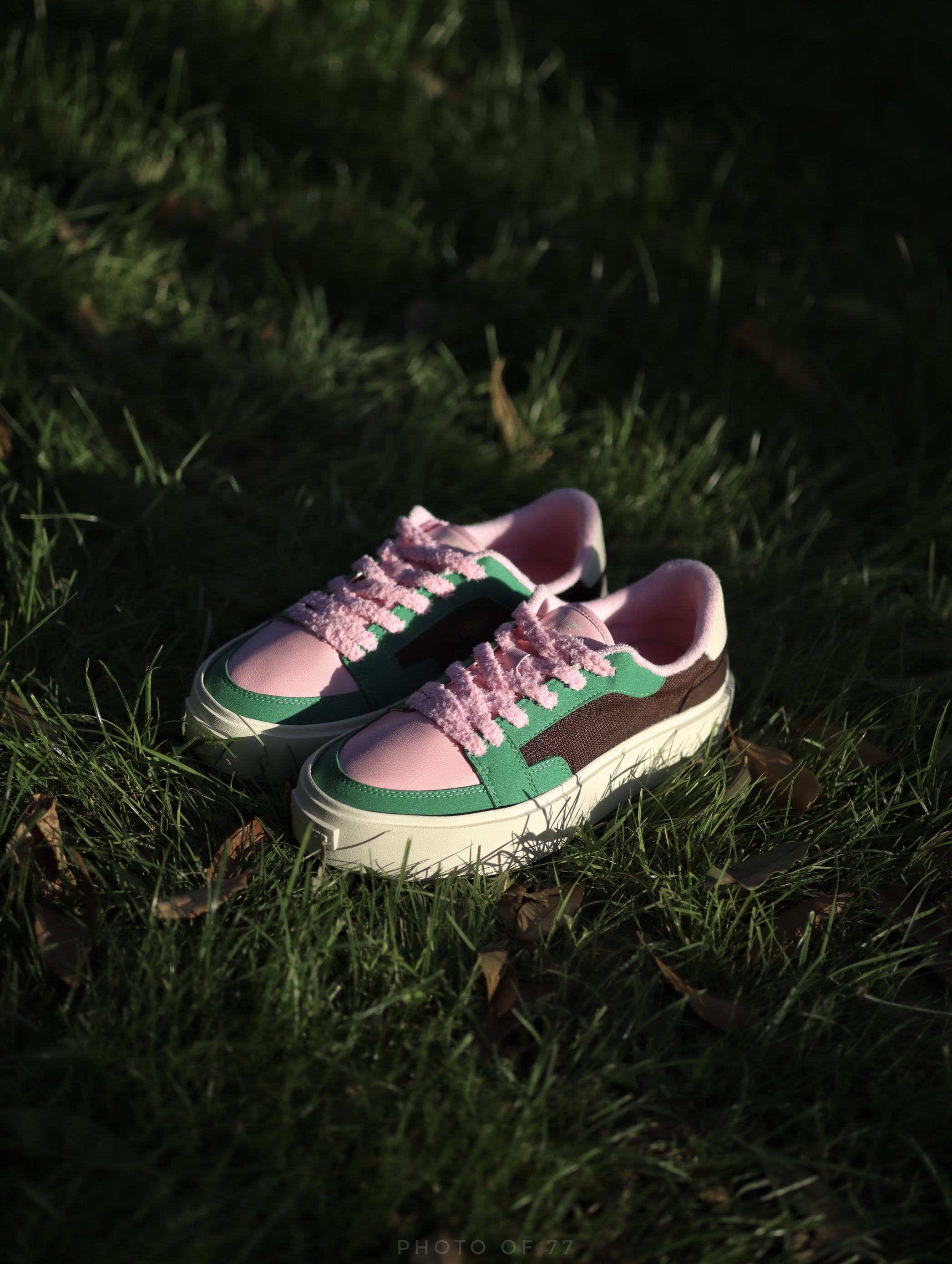 以前夏天我都是以黑白灰板鞋居多 这次夏天想试不一样的感觉 绿棕的配色搭配上粉色的鞋带 还蛮好看的 侧边棕色是网布材质 夏天穿透气性还不错 如果夏天穿腻了黑白灰配色的板鞋 我觉得这双绿棕粉配色不妨试试✌️