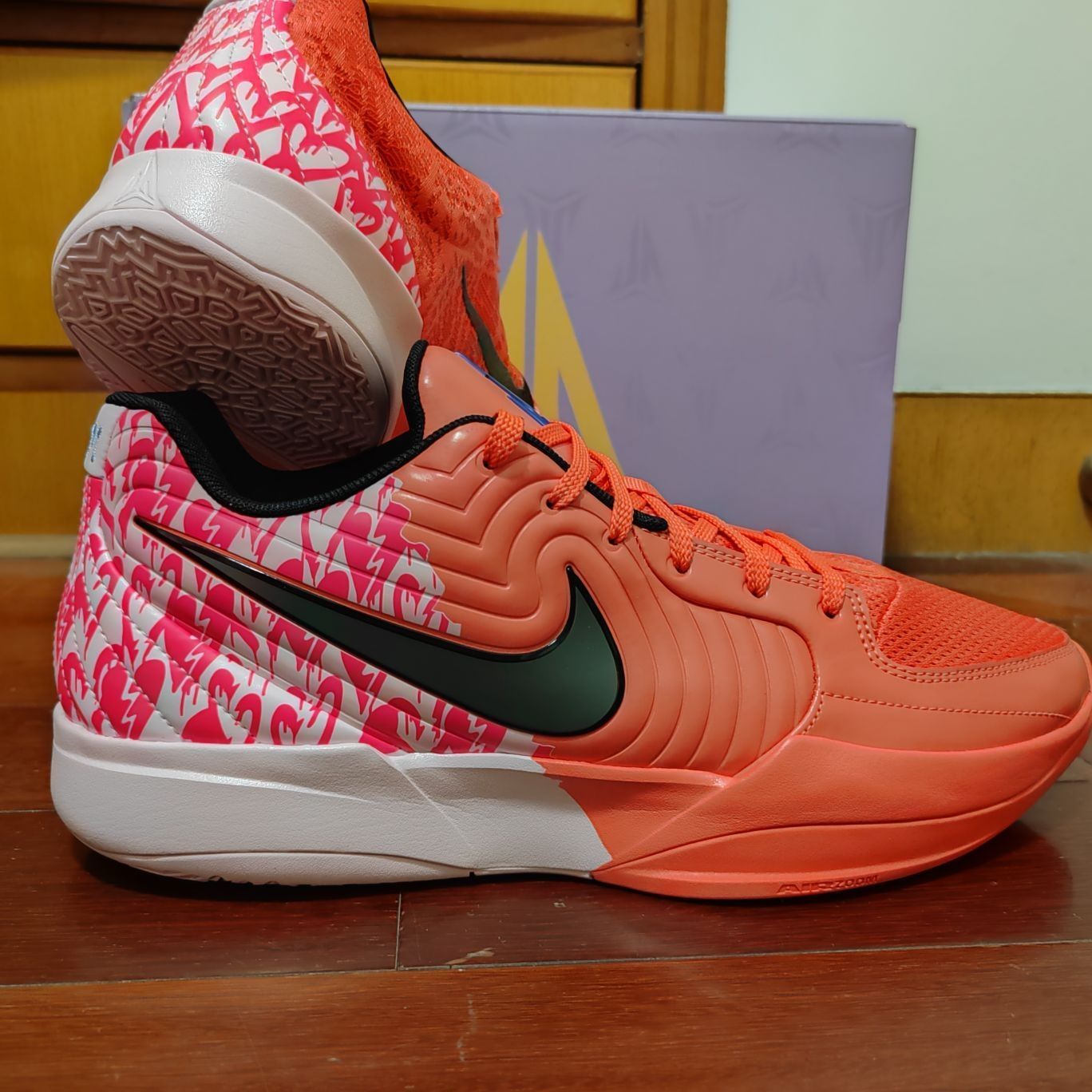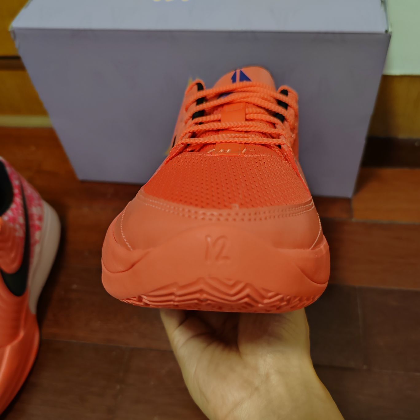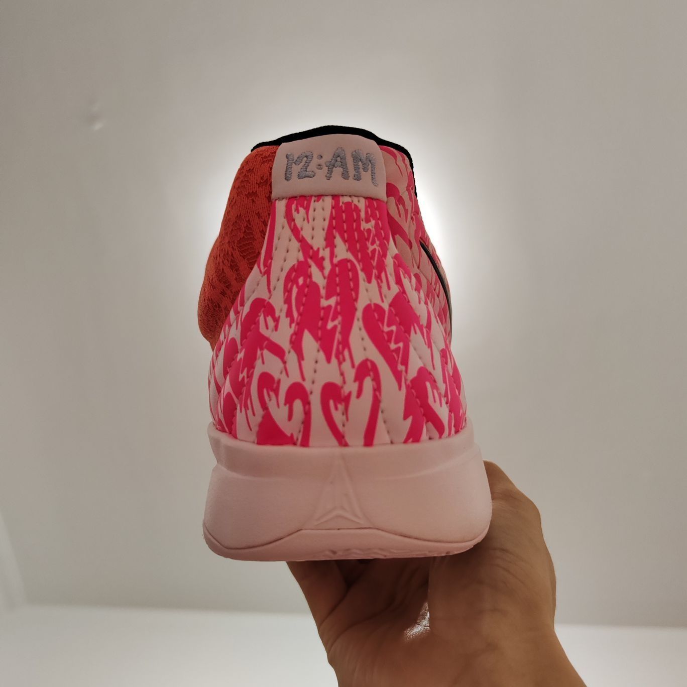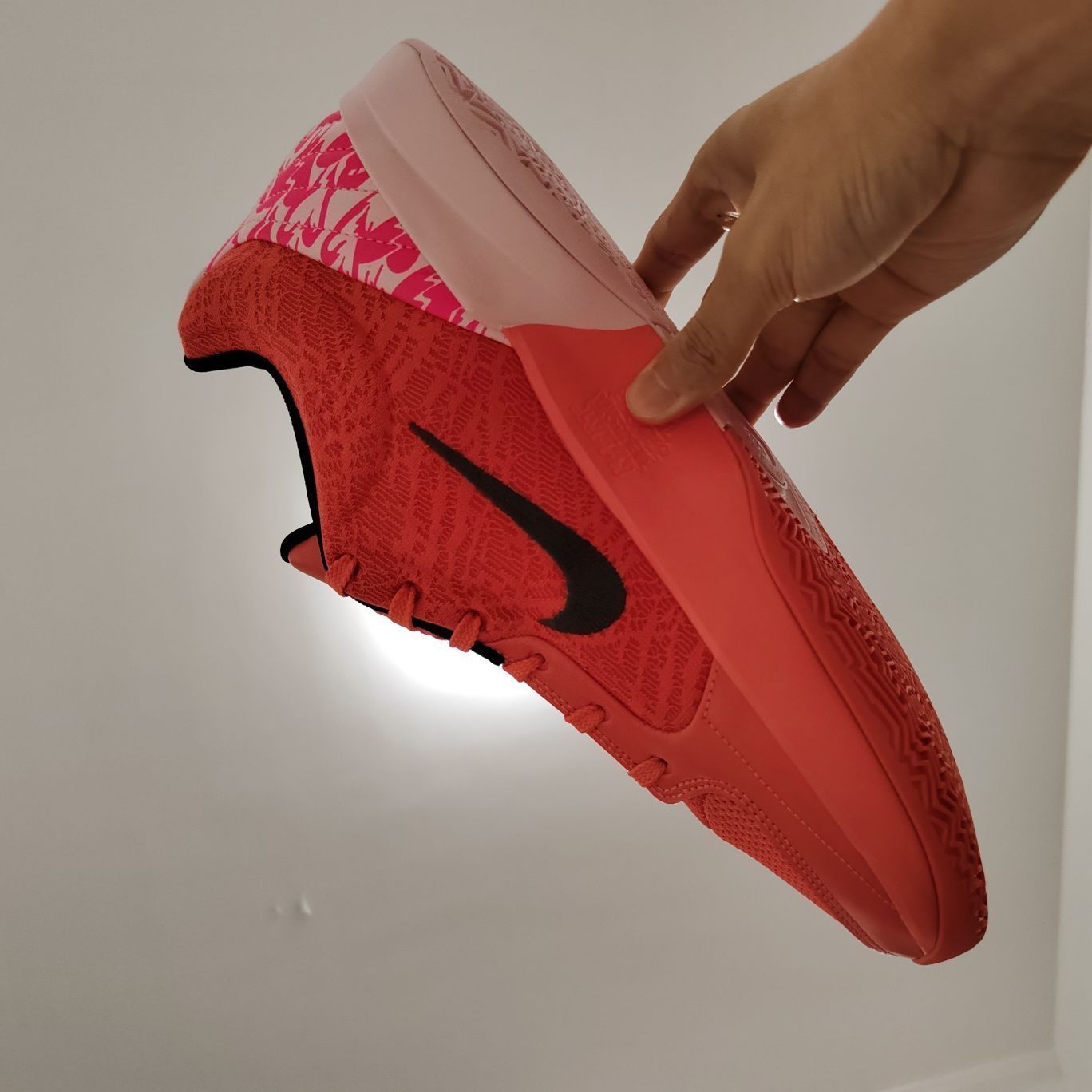 打篮球当然选粉色的,这双莫兰特情人节配色真的无敌。球鞋的鞋楦偏瘦,适合瘦脚型球员,宽脚型球员建议选择大半码! 重量轻,42.5码重量在340g左右,属于超级轻质球鞋; 包裹性强,透气性好,适合夏天穿着; 外底xdr耐磨橡胶,适合各种场地; 前掌加厚zoom气垫加cushlon2.0泡棉,提供良好的缓震。 真的一双属于后卫的好鞋。