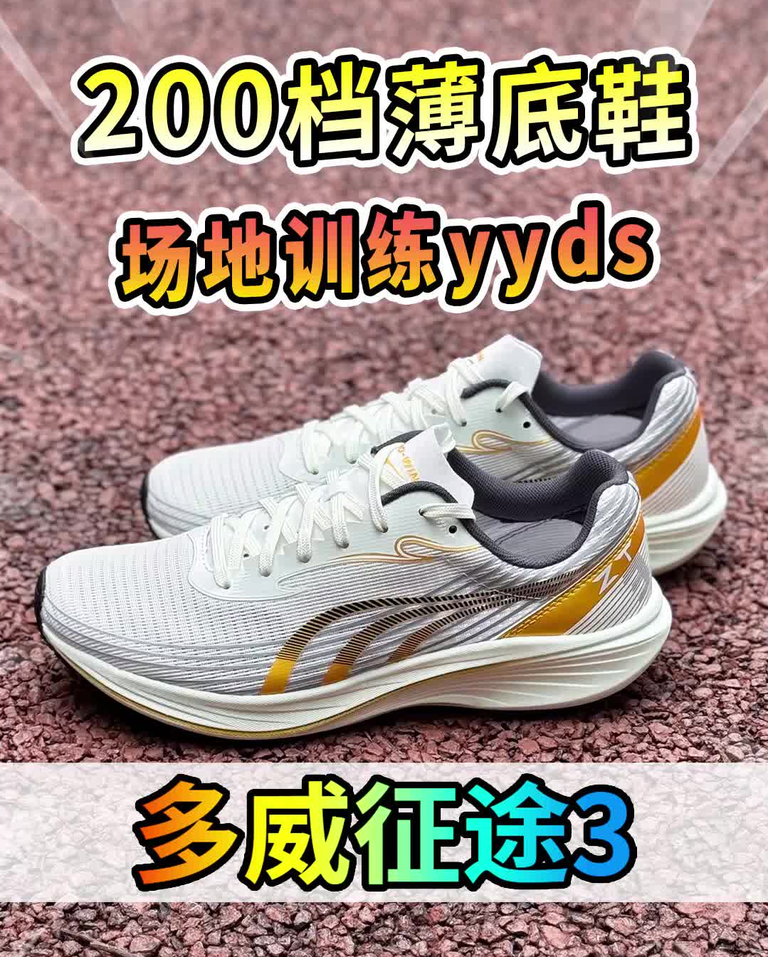 只需要3开就能满足体考体测或者日常通勤以及锻炼需求! 今天分享一双特步两千公里3代,金榜题名配色,白色的鞋身,鎏金点缀,鞋垫上暗藏了好运Buff,这个设计有点意思! 了解更多脚感细节,请看视频吧……