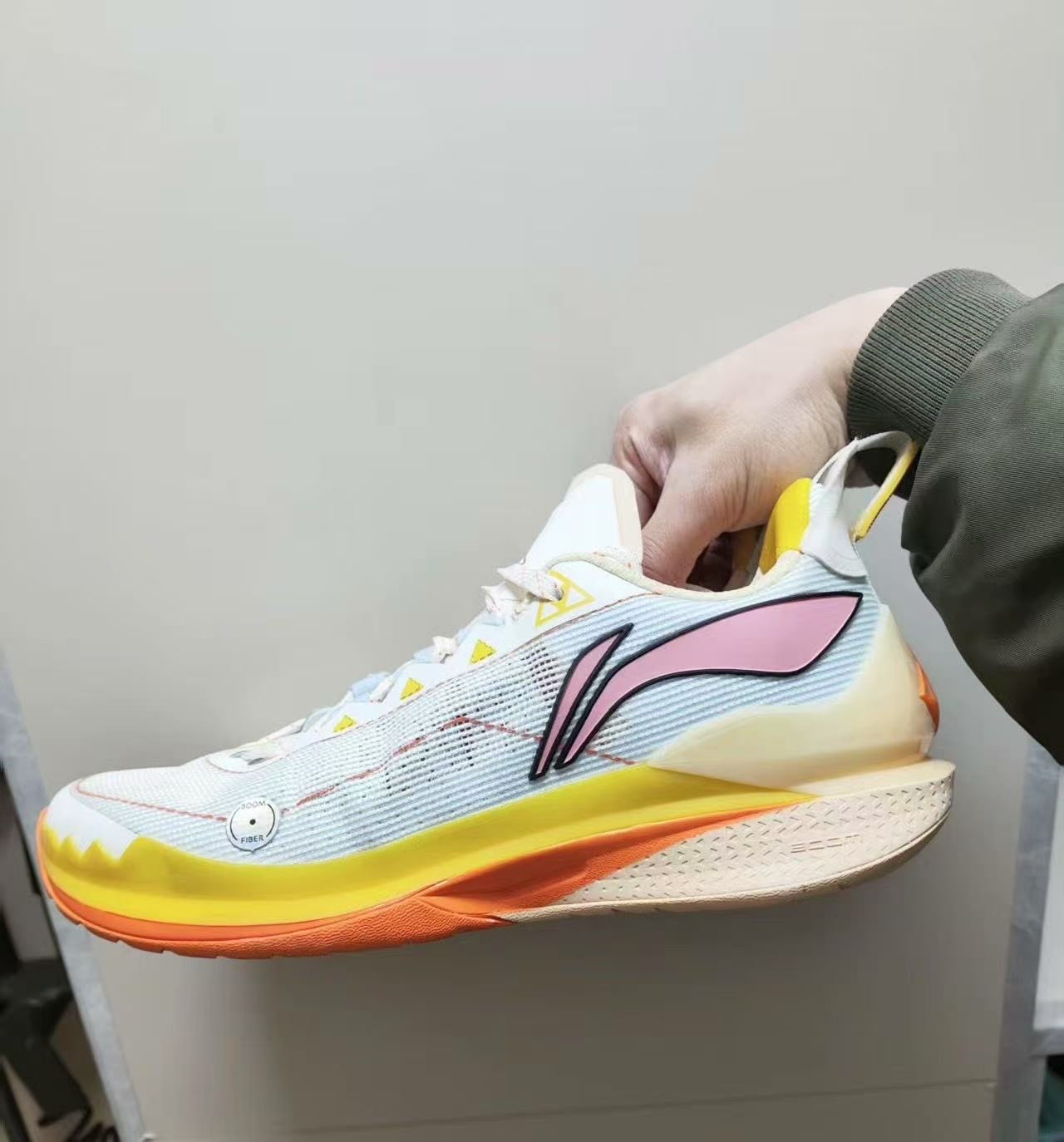 实战中起跳落地,能明显感觉到鞋底出色的缓震反馈。落地瞬间,冲击力被有效吸收,膝盖没有那种生硬的震感,打久了也不累,保护效果杠杠的。 白橙配色超吸睛✨ 织物材质透气又耐磨,低帮设计轻便灵活,穿着舒适度拉满~无论是日常运动还是球场激战,它都能轻松应对🏀