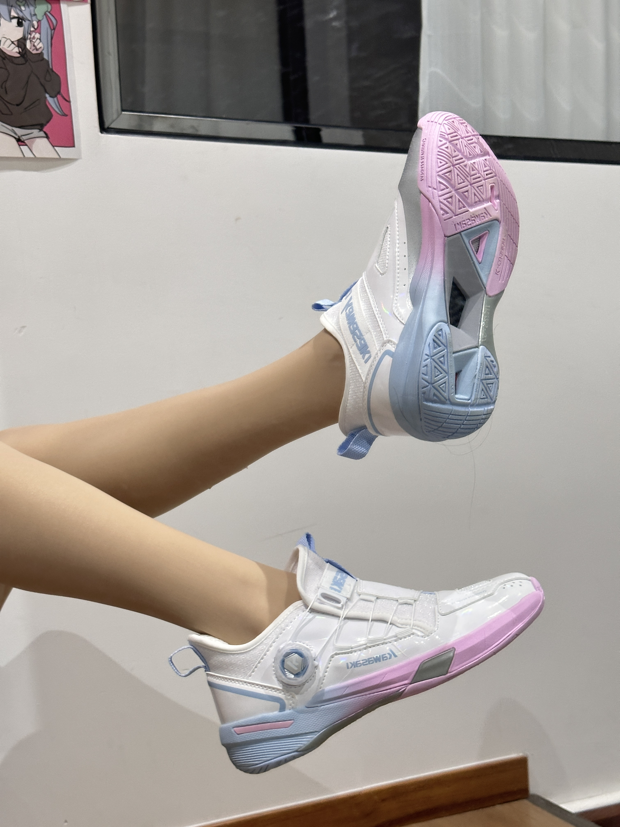 入手的第一双球鞋 !真的好爱… 一开始被少女心的配色给吸引了 没想到还挺好穿的 脚感舒适 不会闷脚 鞋带还是旋钮设计 懒人真的爱了 穿这么好看的鞋子打球🏸️ 感觉都可以多杀几个球了
