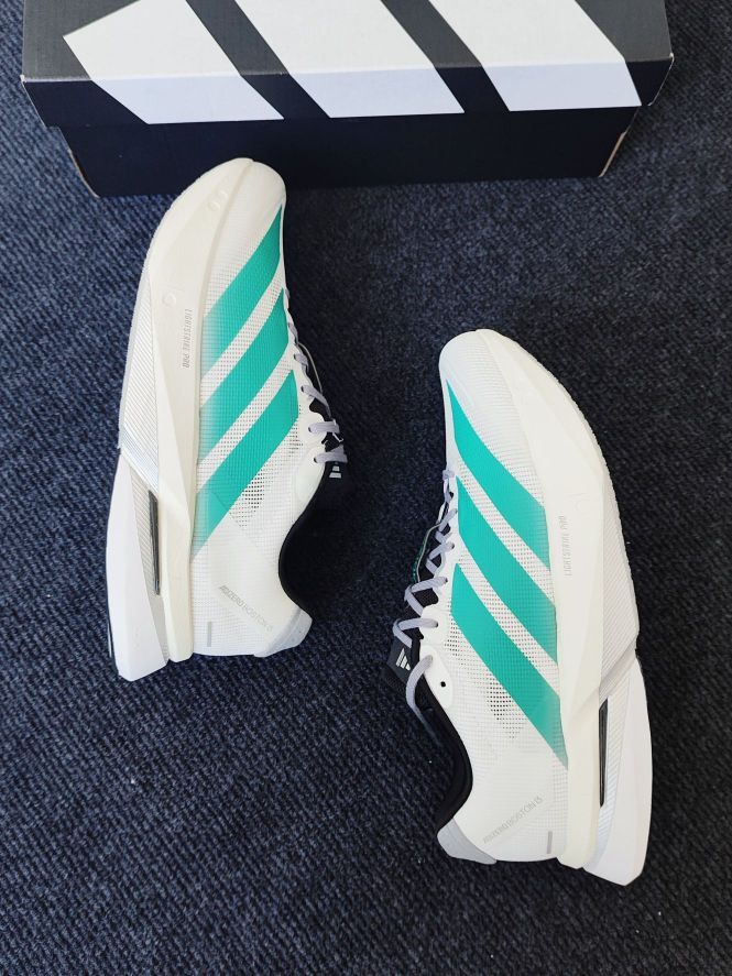 这双鞋的颜值是我的心头好,清新的配色搭配经典三条纹,简约又个性,无论是运动穿搭还是日常出街,都很合适。 鞋面采用了透气网布材质,跑步时很透气,双脚始终保持清爽,没有那种闷热捂汗的感觉。中底的Lightstrike Pro科技简直绝了,软弹程度超乎想象,跑起来特别省力。 不过要说缺点还是有的,鞋底的耐磨性,我穿了一段时间,进行了几次长跑后,发现鞋底已经有了一些磨损痕迹,这对于追求跑鞋耐用性的跑者...