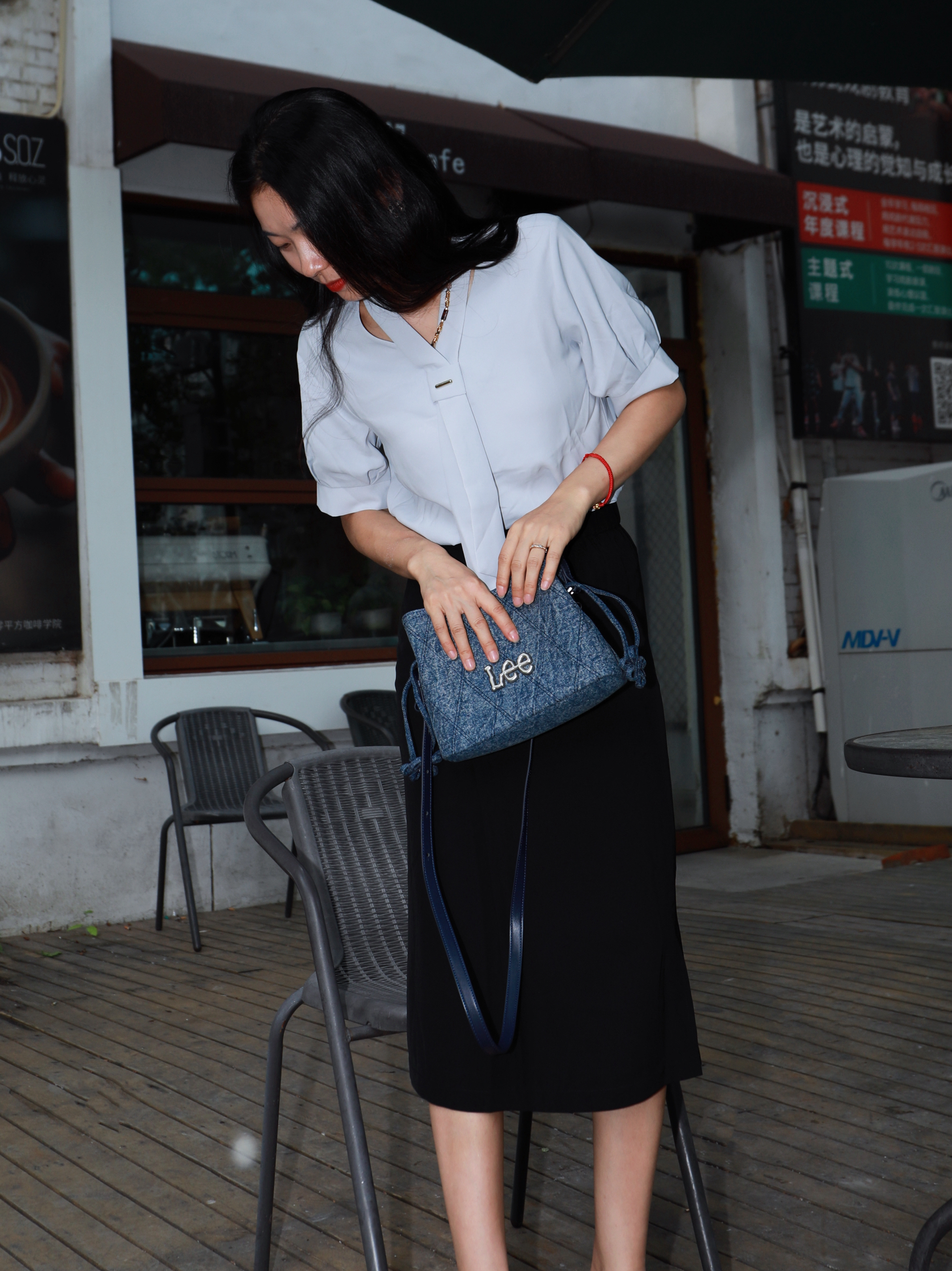 cleangirl的去班味穿 关键词在于松弛舒适简单但时髦干练C 我的穿搭要点就是,上班穿搭需正式 但是单品一定要时尚 中和一下沉闷的班味儿 给自己营造一个尽量轻松的工作氛围 今天这款Lee的包,新中式元素颜值好好看~ 搭配今天这套还真是不一样呢 总体来说它挺适合通勤逛街~ 能装材质软软哒 今日分享完毕~byebye