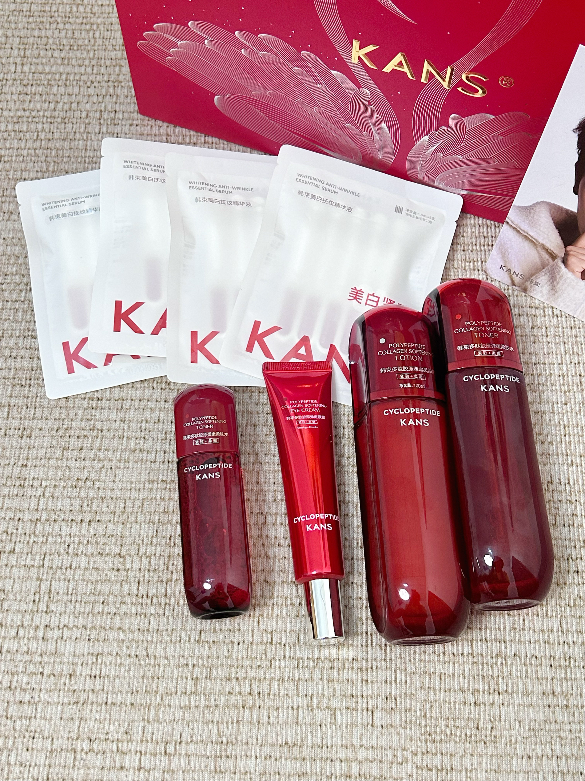 本篇笔记关联了Kans/韩束 红蛮腰多肽胶原弹嫩护肤套装【水+乳+面霜+精华+洁面】抗老抗氧糖焕亮肌肤紧致淡纹 水100ml+乳100ml+面霜50g+精华30ml+红洁面100g等商品,为用户提供真实的使用体验和购买参考。