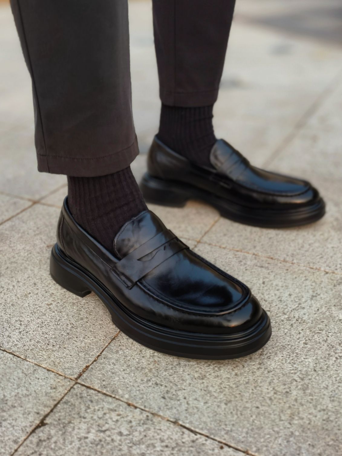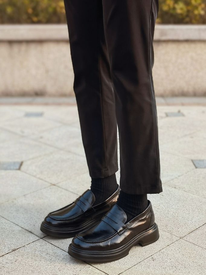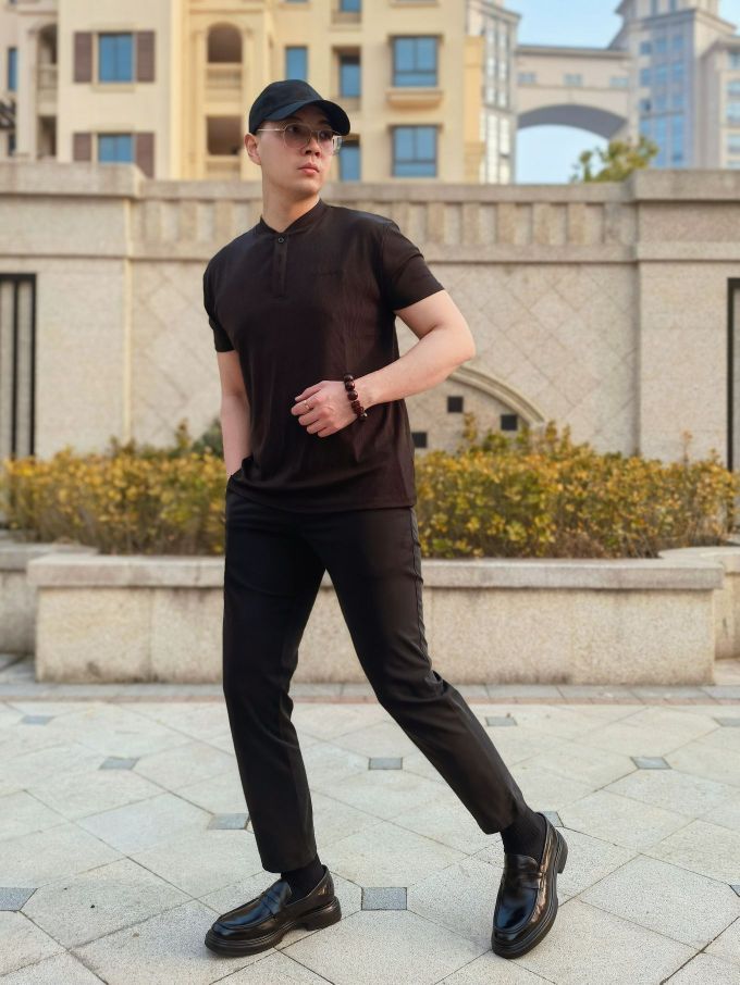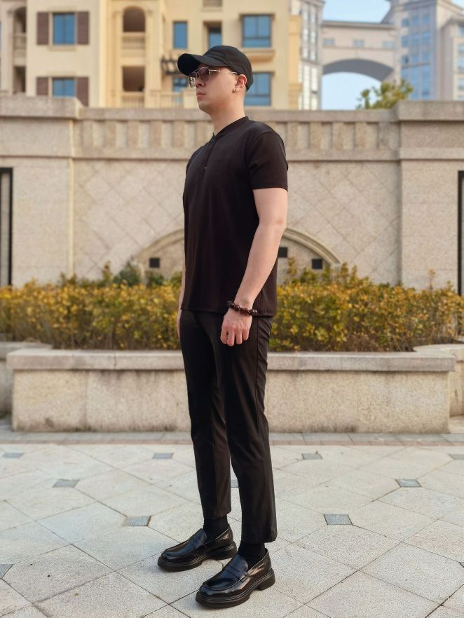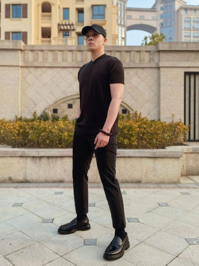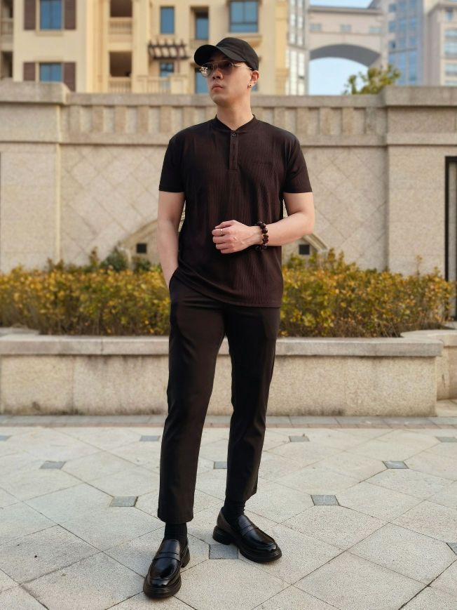 hello 大家好,这里是撒旦锅锅 💗179cm/80kg 🌞今日穿搭为通勤休闲风格 搭配类型:短袖+西裤+乐福鞋 今天上身搭配一件黑色亨利领休闲短袖,下身搭配黑色九分休闲西裤,最后搭配一双黑色乐福休闲鞋,牛皮革材质搭配聚氨酯鞋底,上脚舒服轻便,一脚蹬方式还非常好穿,整体穿搭通勤休闲风氛围感十足,真心推荐✔️