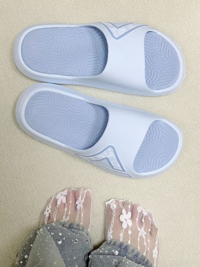 谁懂!这双拖鞋上脚超显白🥰 而且防滑性非常好下雨天也可以穿! 蓝天十白云的配色形容不出来的美 上脚也很舒适Q弹Q弹的🐮 不仅居家可以穿出门也可以滴✅ 码数方面可以拍大一码的 👀