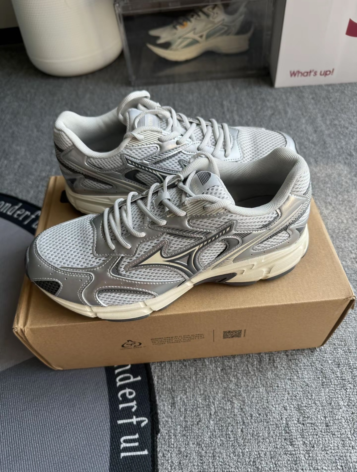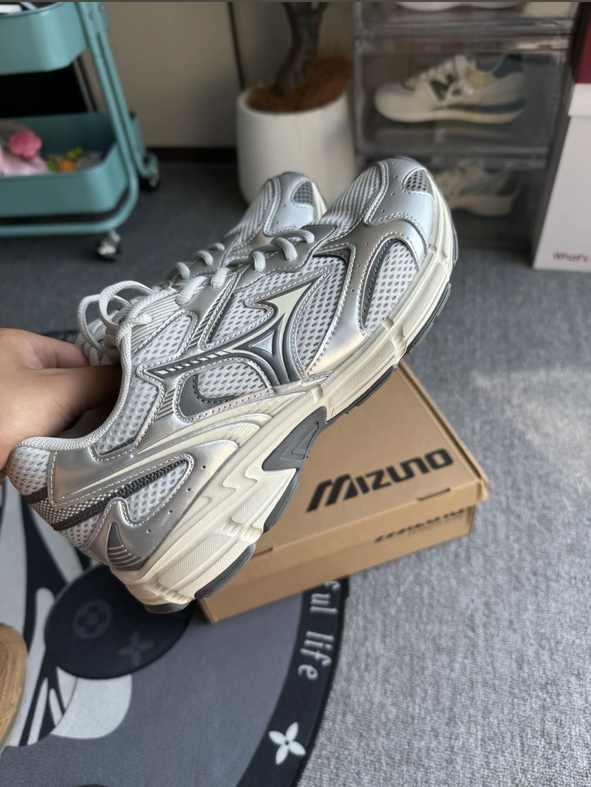 📸美津浓新鞋来袭!颜值爆表~ 😍姐妹们,我最近入手了一双美津浓的银色运动鞋,简直太好看了!✨ 👟这双鞋的设计超级独特,银色的鞋面在灯光下闪闪发光,仿佛每一脚都能踏出星光✨。鞋面上的网眼设计不仅透气,还增添了几分时尚感😎。鞋底厚实,走起路来软软的,就像踩在云朵上一样舒适~ 💖最让我喜欢的是它的细节处理,鞋带上的小标志和鞋侧的流线型设计,每一个细节都透露着精致与用心❤️。 🛍️搭配方面,无论是...