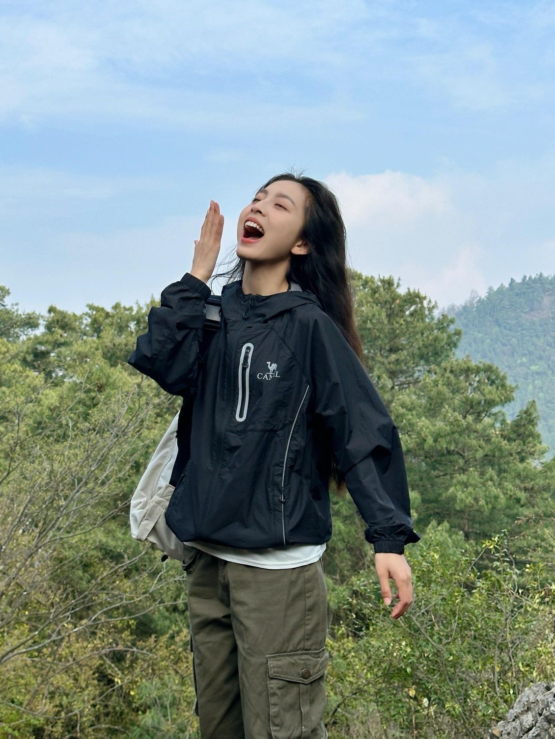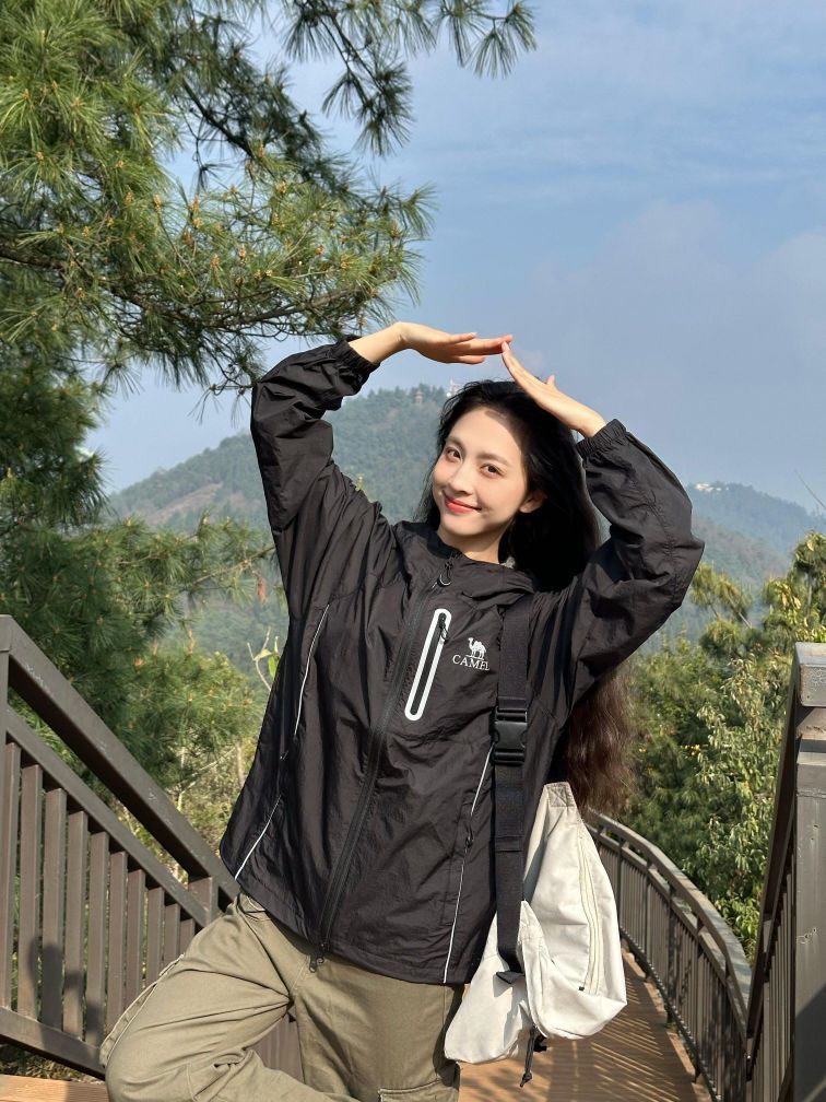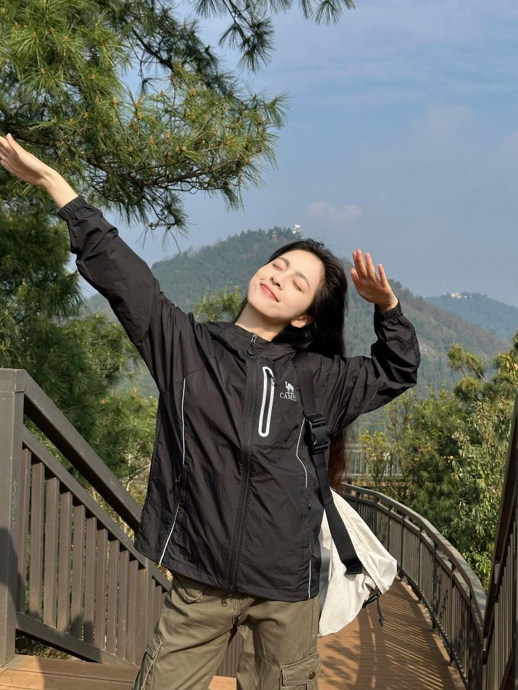 ⛰️上班不如上山|爬山就这么拍📷黑色太酷了吧!拍照好出片~ 拍照手千万不要停下来!动态照片随手就来! 去山里大口吸氧也要记得防晒哦! 休闲又很酷的户外防晒衣~真的很喜欢!
