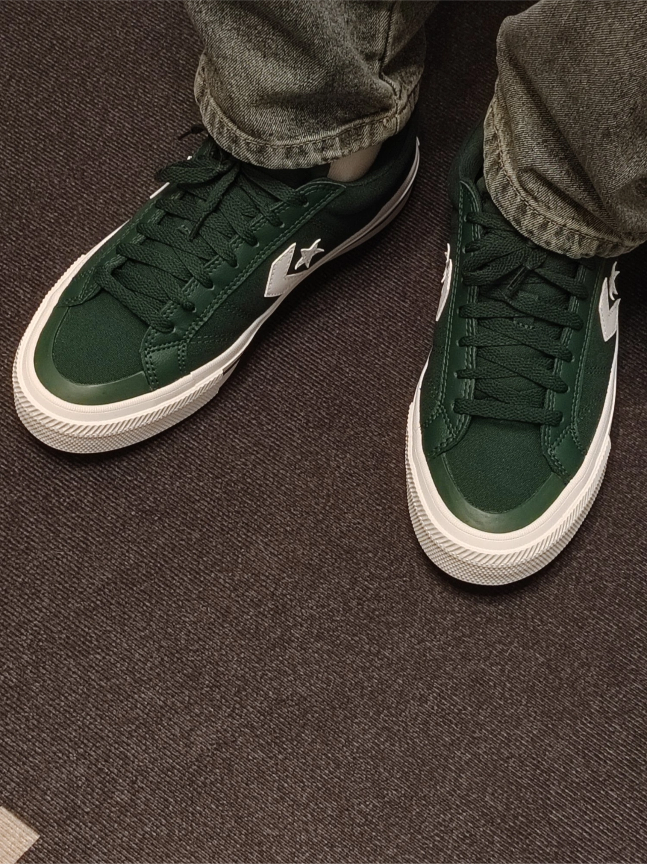 真是绿色出行了… 这鞋对简直是宽脚掌宝子的首选, 鞋面柔软,不会勒脚 鞋底比较松软,没有传统帆布的硬底。 鞋子让人有觉得比较大尺寸,其实鞋码很正。 唯独鞋带比较短,搭配一双白色鞋带也比较好看。 搭配牛仔裤和卫裤比较合适,有少年感… #匡威休闲百搭 #经典百搭匡威 #2025年最期待的鞋款 #今日份匡威女孩绿色 #匡威经典复古的设计