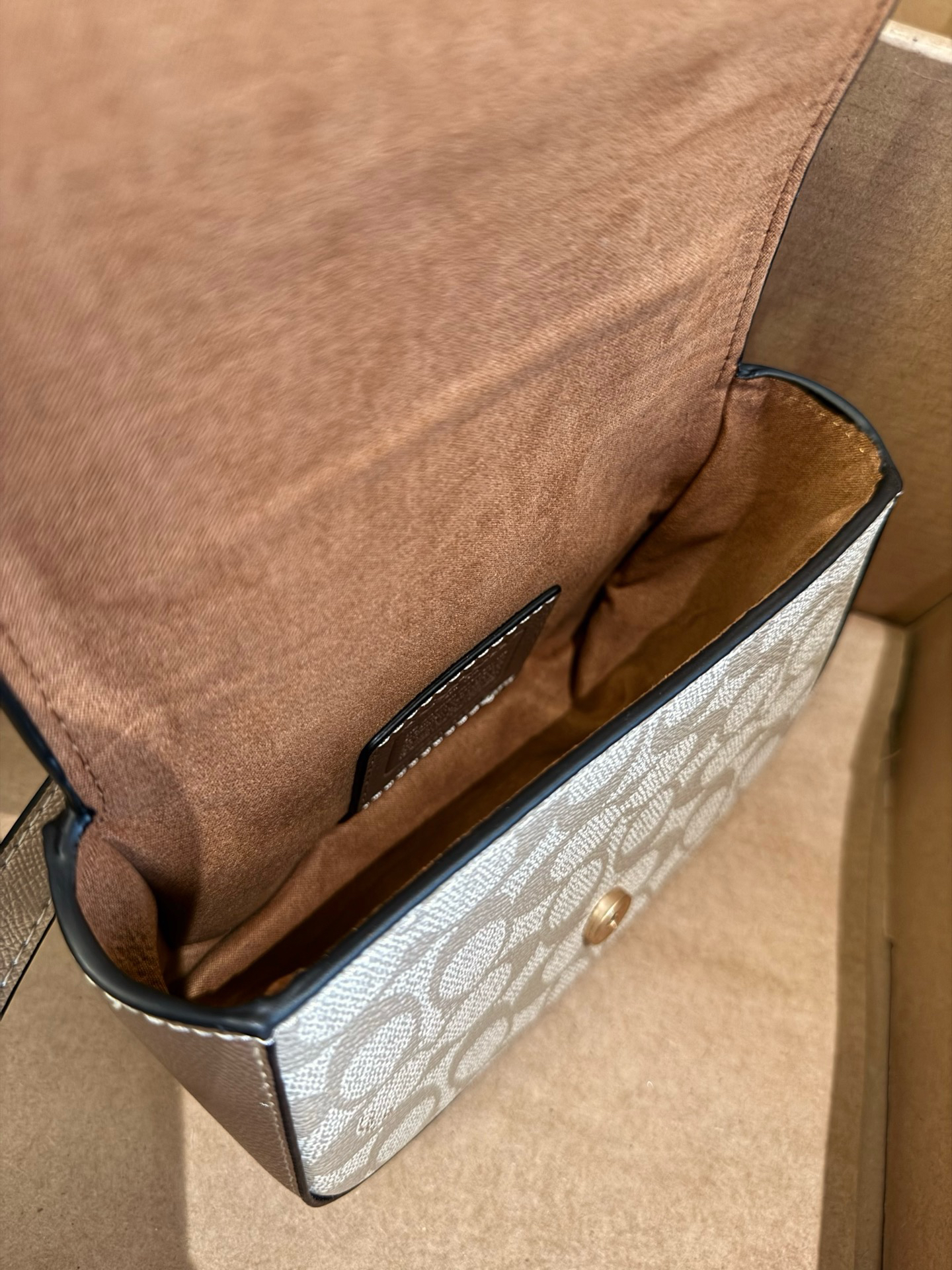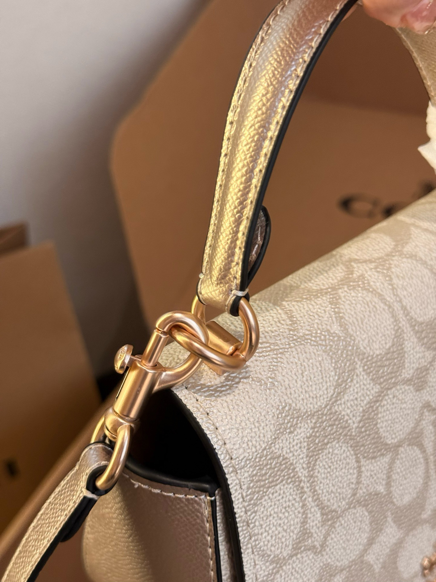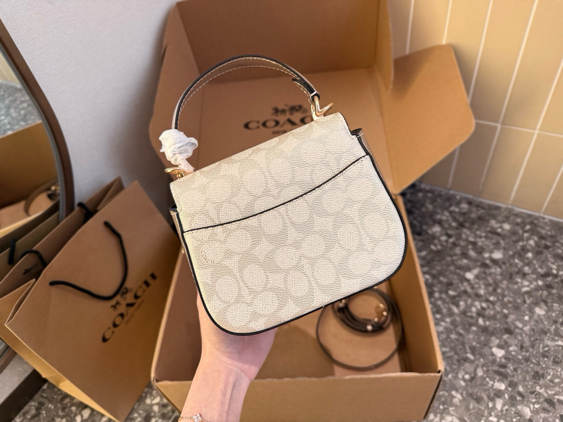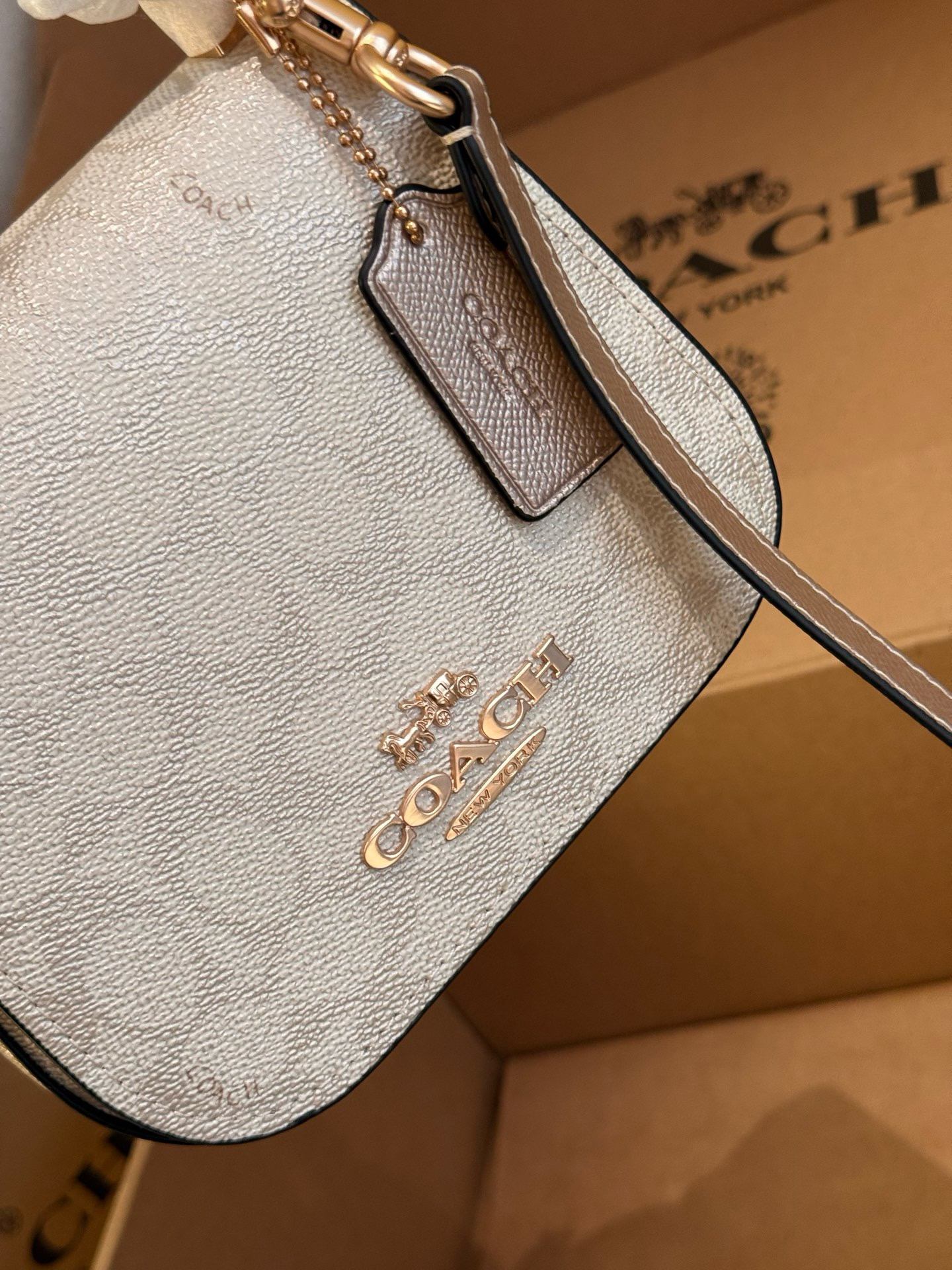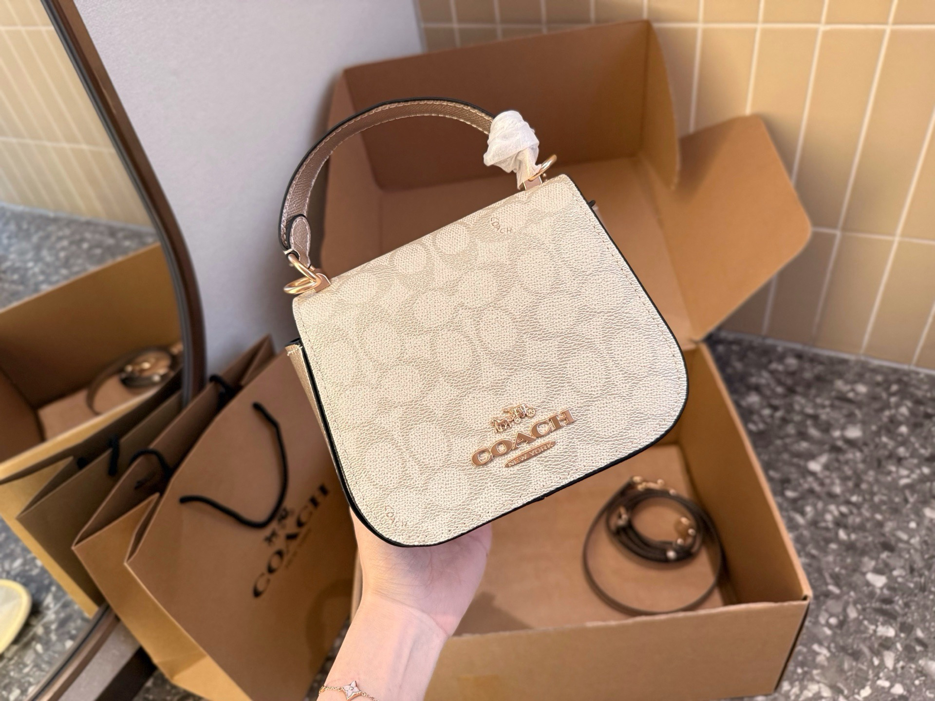 本篇笔记关联了Coach Raisa 18 小号 金属徽标按扣开合涂层帆布单肩手提包斜挎包 香槟色等商品,为用户提供真实的使用体验和购买参考。