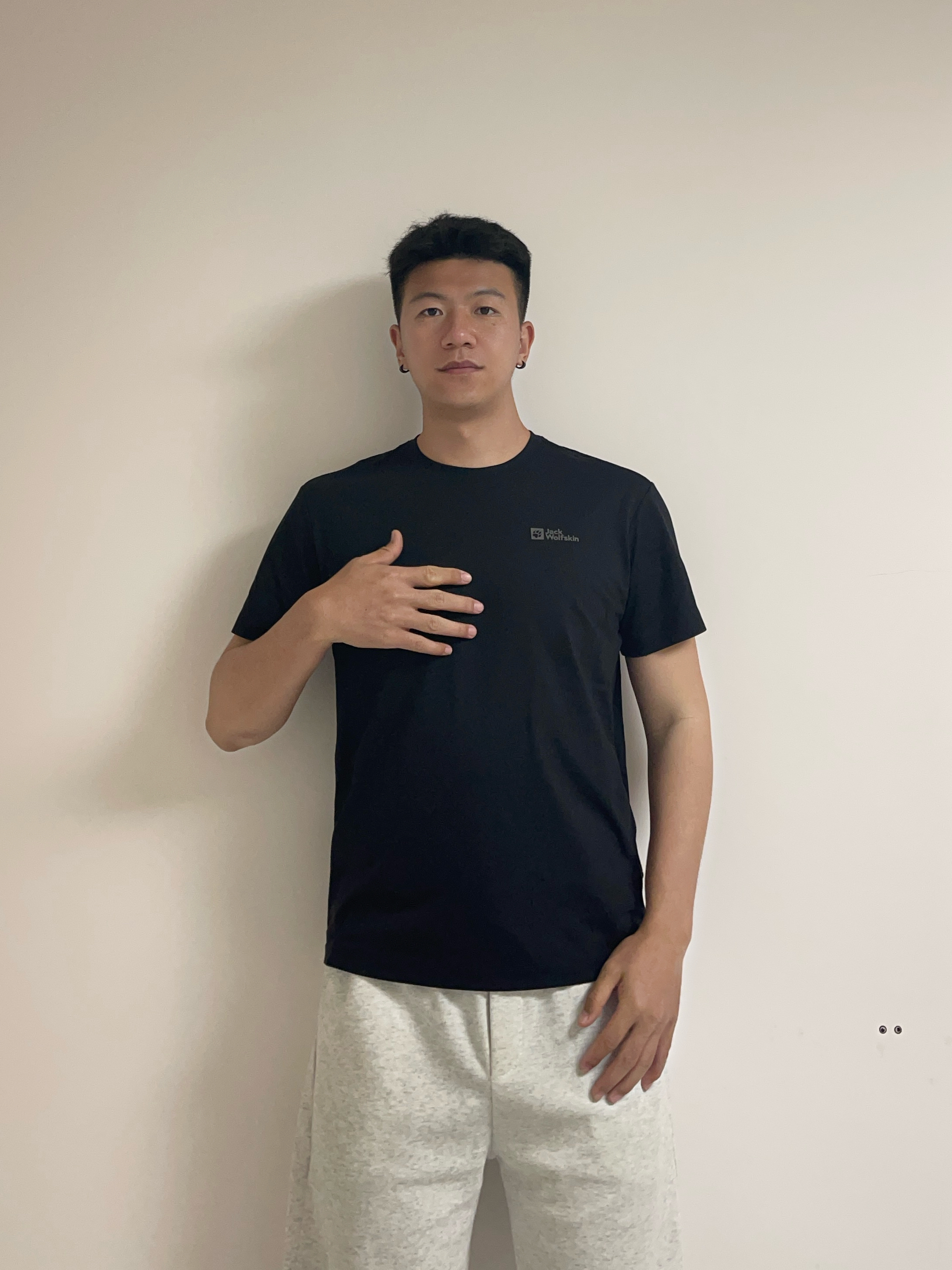 —— 🔥核心单品:狼爪纯色短袖 吸湿速干面料➕立体剪裁 通勤暴汗不贴肉💦 春捂季叠穿单穿都无压力 —— ▫️白花灰长裤|廓形藏肉 —— 穿搭公式: 基础黑T+低饱和裤装=不费脑高级感✅ 春夏衣橱锁住这件👌 👦🏻:188 | 85 👕:XXL