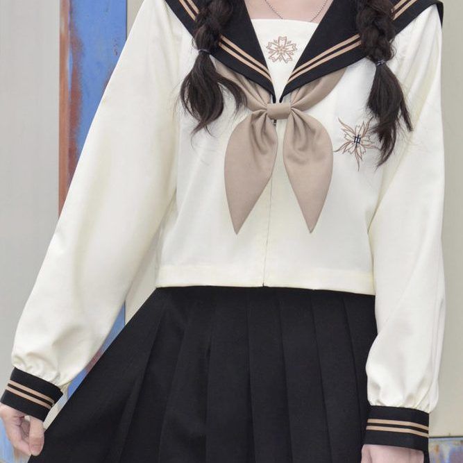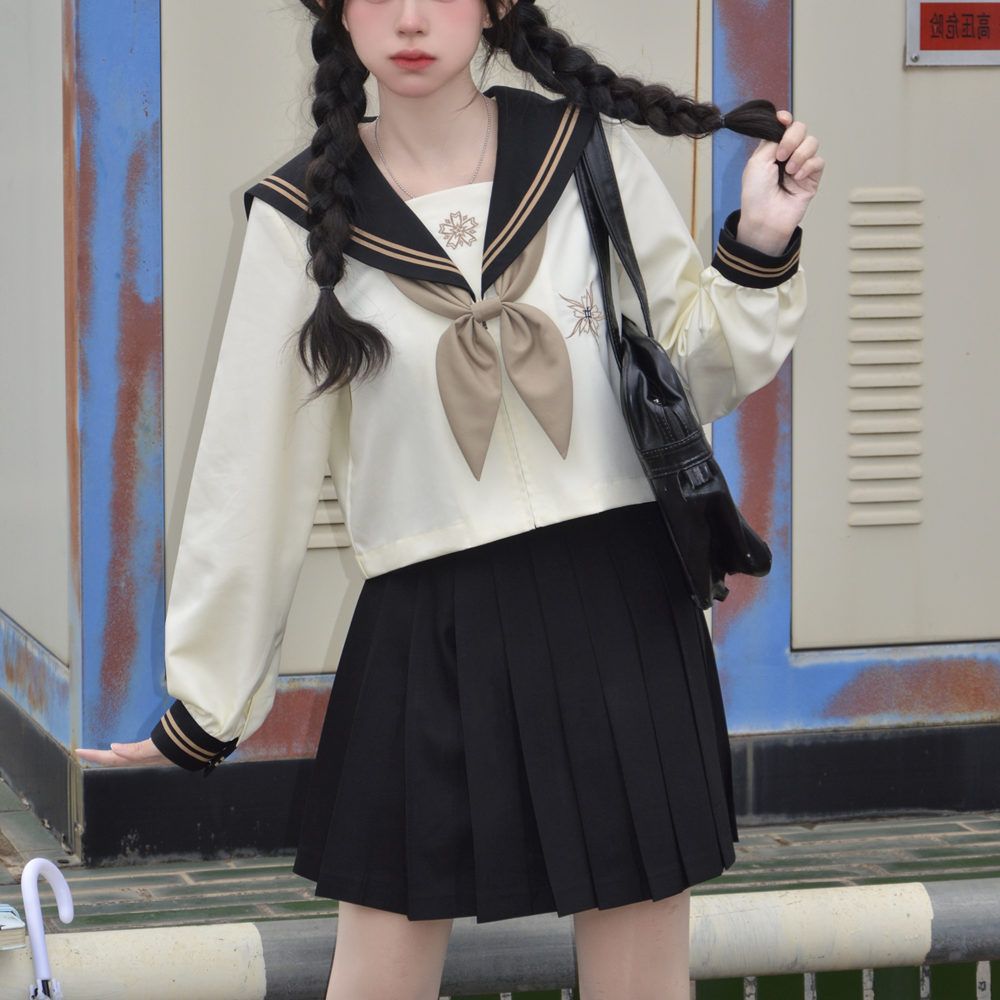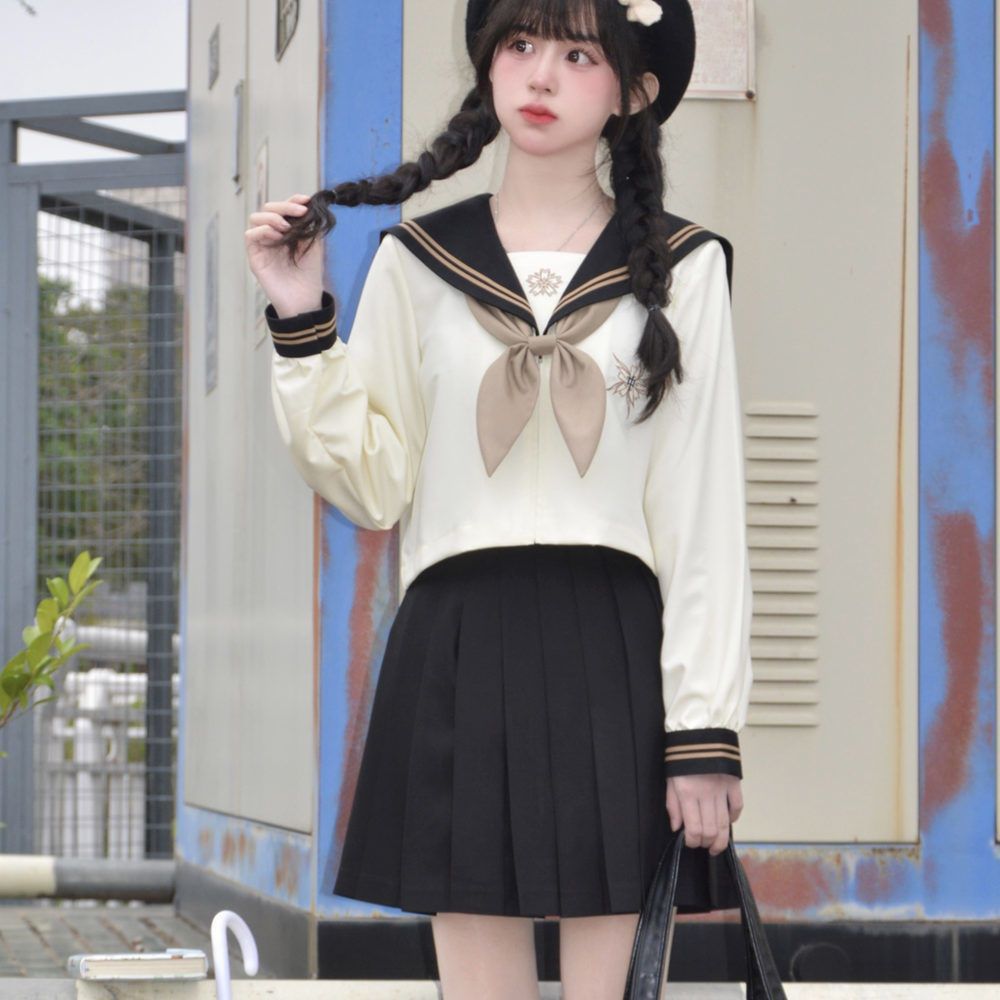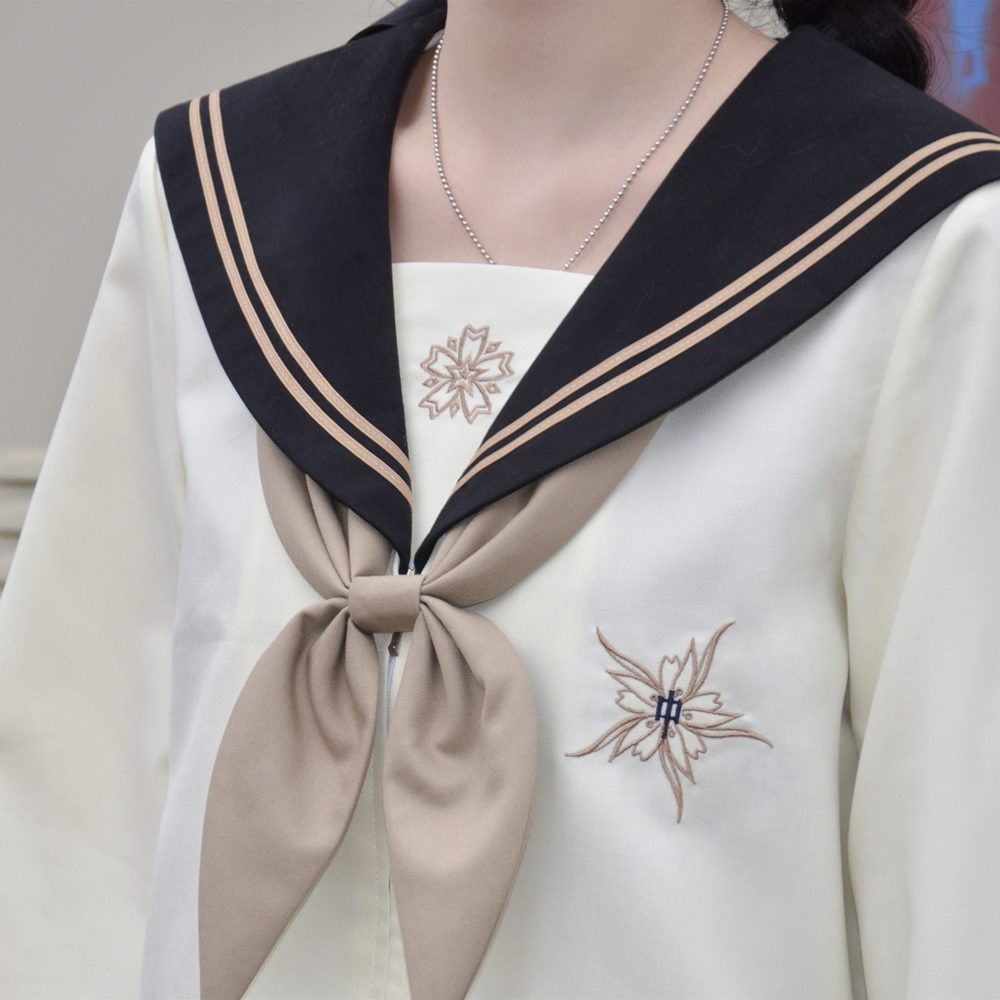 【禾樱原创刺绣水手服】把京都的樱吹雪穿在身上!正统校供感+重工刺绣,这个夏秋要做漫画里走出来的元气少女! 「禾樱」系列采用【关西襟版型】,领型精准契合黄金分割比例,比普通水手服更显脖颈修长。前胸「浮世绘风樱花刺绣」耗时8小时精工打造,花瓣层次立体如浮雕,水洗10次依然鲜活如初! 🌿【面料黑科技】 ▫️上衣:65%聚酯纤维+35%粘胶混纺TR面料,比纯棉透气2倍,腋下立体剪裁+透气孔设计,3...