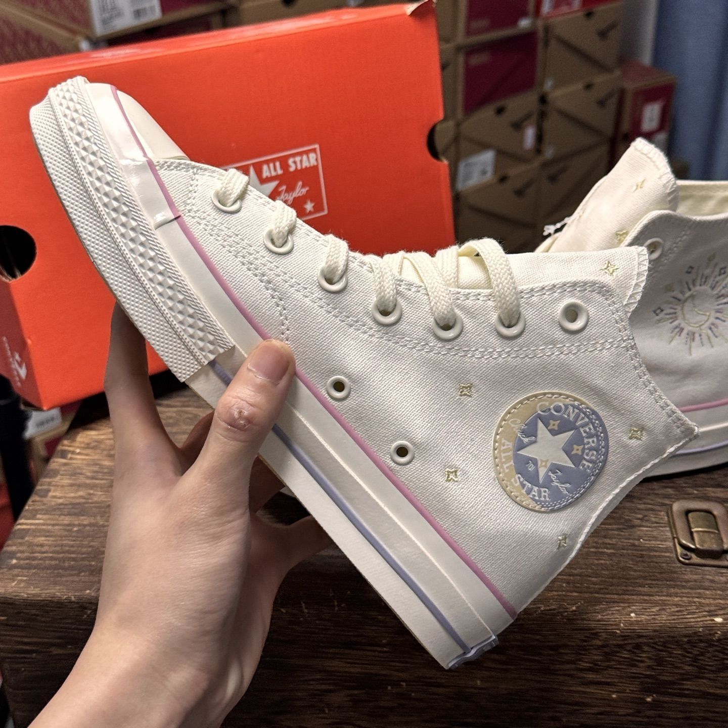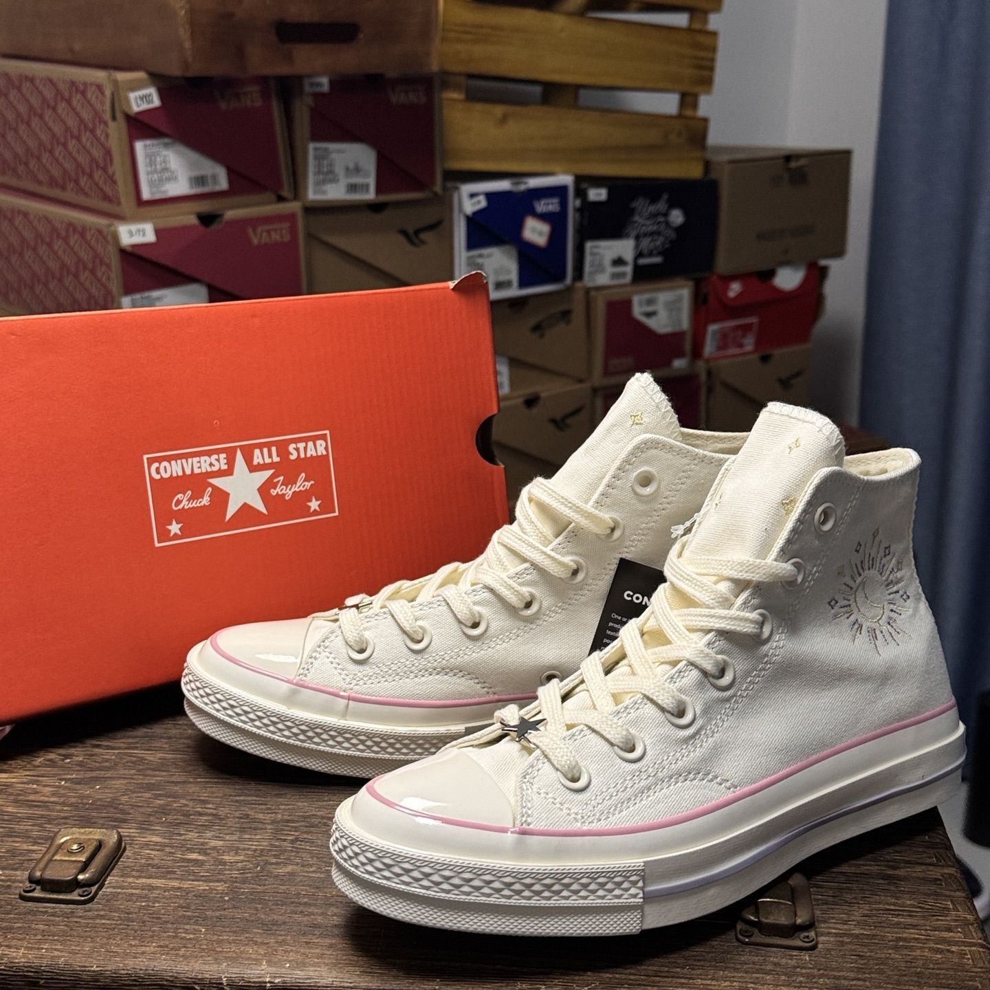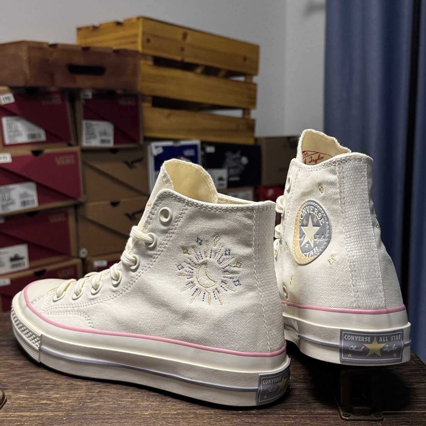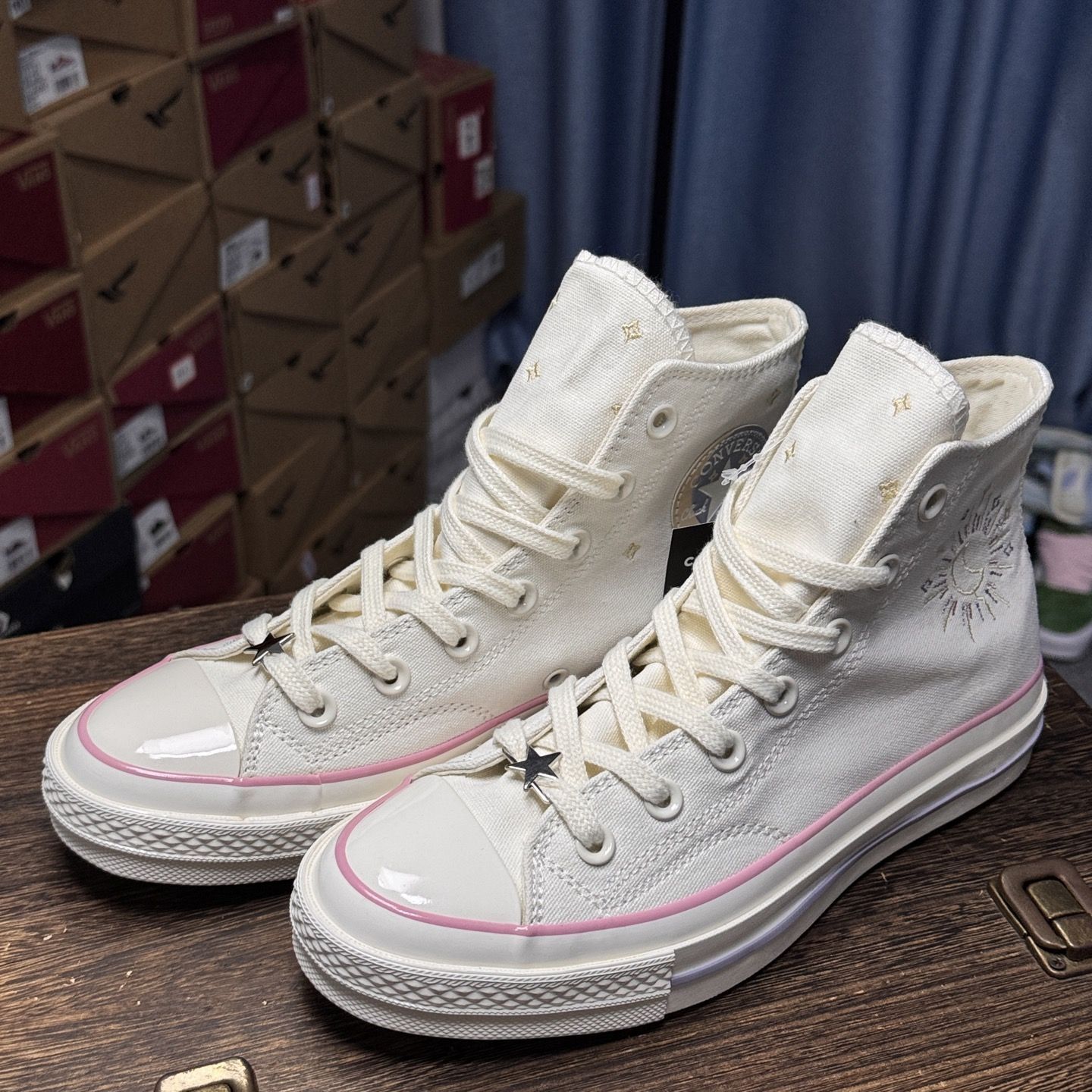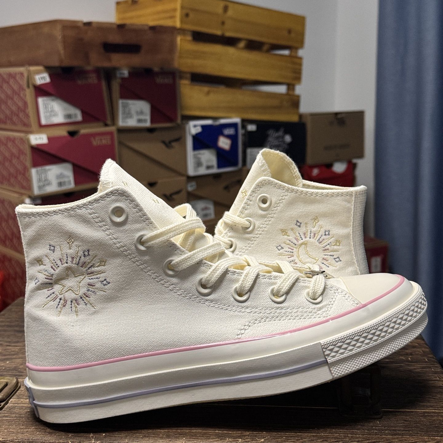 Converse Chuck Taylor 70S SEASONAL 日月星辰🌛 星星⭐和月亮🌙在脚上奏响不同的乐章🤗真的很喜欢这种童话感的设计!!!一整个就是被治愈住了😭感觉小时候一定更喜欢这双鞋!粉白色真的蛮搭春天的哦