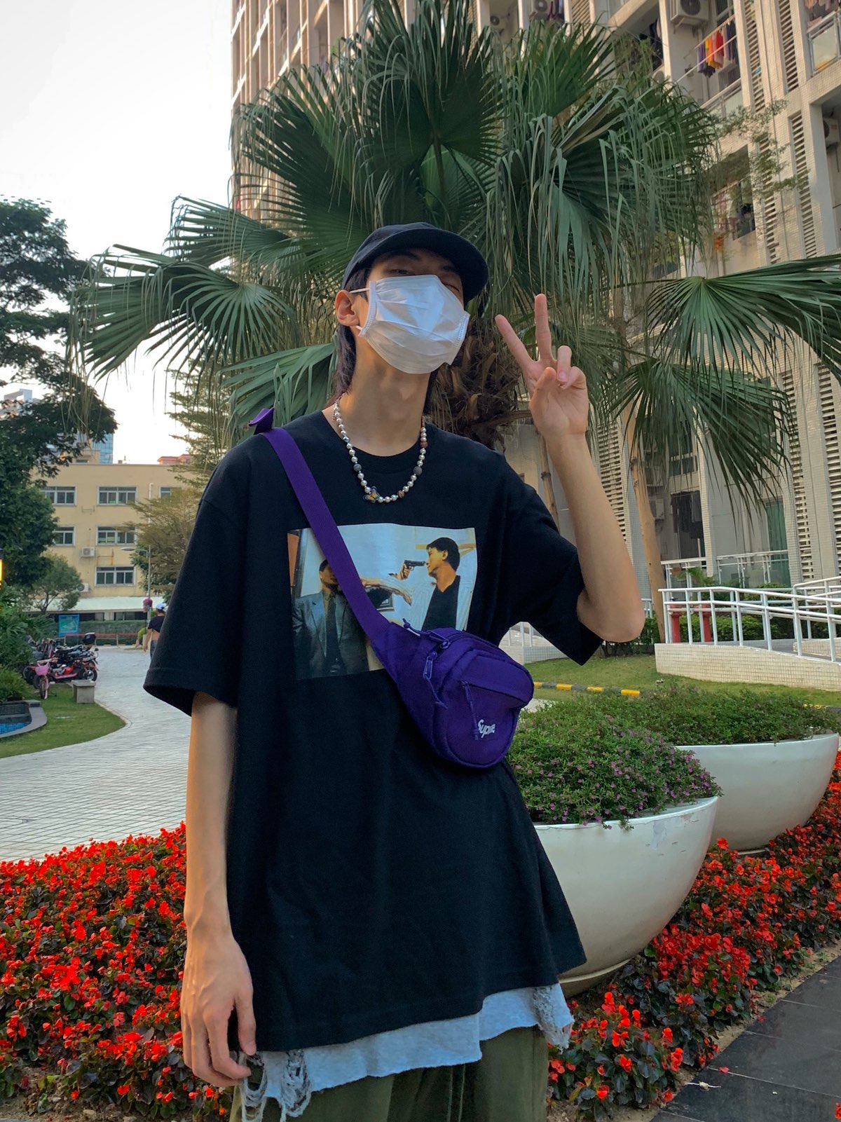 春季穿搭指南!! 广州的天气穿短袖刚刚好!在楼下拍照的时候还意外遇到一只肥猫!(大概就是吸猫体制) 正好最近在看港片,把喋血双雄又重新看了一遍!发哥简直太帅!!! dunk梅子和背的Sup包也完美呼应!哈哈哈哈自己还diy了一个大眼仔!!有没有一点小小可爱! 外套:7shift T恤及背包:Supreme 裤子:Daredreamin小笼包 @PoizonBoy